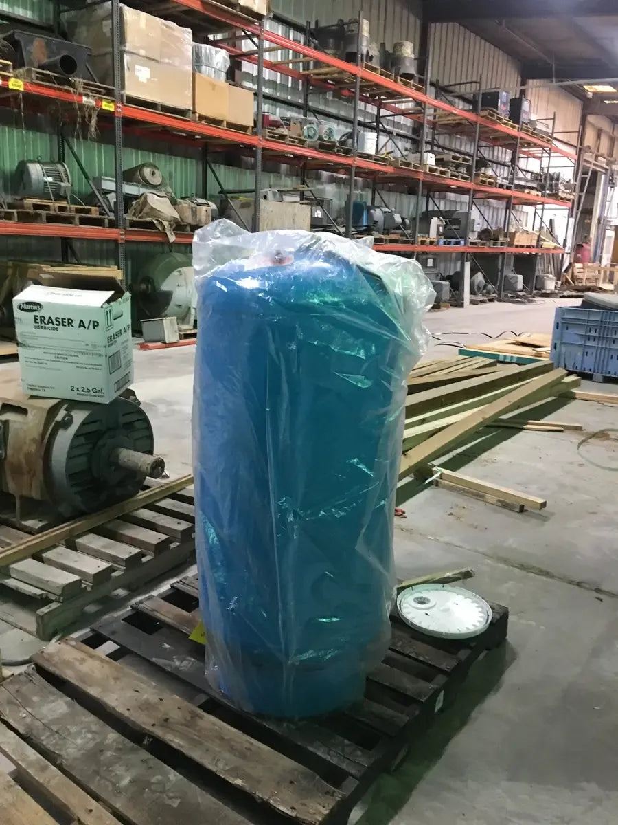 Número de modelo: 3GVT9 (235 litros), Número de serie: 3GVT902358, Volumen total del tanque: 62 galones, Máx. Presión de trabajo/prueba: 125 PSI, Precarga del tanque de fábrica: 38 PSI, Fecha de fabricación: 25/05/17, Nuevos tanques de compresor de aire vertical todavía en la caja OEM.