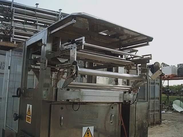 1998 Hayssen Sandiacre Single Tube Intermittent Motion Bag Filler and Sealer. Bagger Model: TG400LX. Originally used as part of a frozen biscuit-in-a bag line, this machine offers adjustable capacity settings and is capable of filling 40, 18 and 12 count bags at the respective rates of 30, 40 and 45 bags per minute. Machine features simple and fast bag size changeover with one-piece forming sets. Infeed height: 6 ft. 10 in. Exit height: 3 ft. 5 in. Overall dimensions: 7 ft. 8 in. L x 6 ft. W x 7 ft. 2 in. H.(ACN1250).