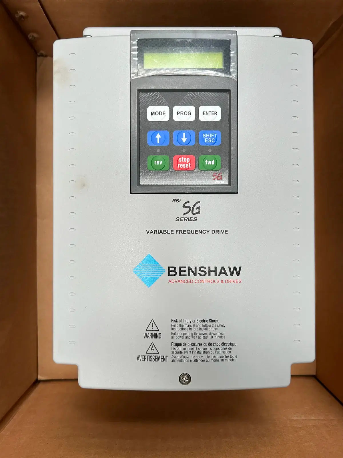 Unused Benshaw Variable Frequency Drive. Model: RSi-015-SG-4B. Serial No: 5509B15014D. Input - Standard Duty: 15 Hp, Amps: 25, Volts: 440-480, 3 Phase, 50/60 Hz. Output(Continuous) - Standard Duty - Hp:15, Amps: 24.