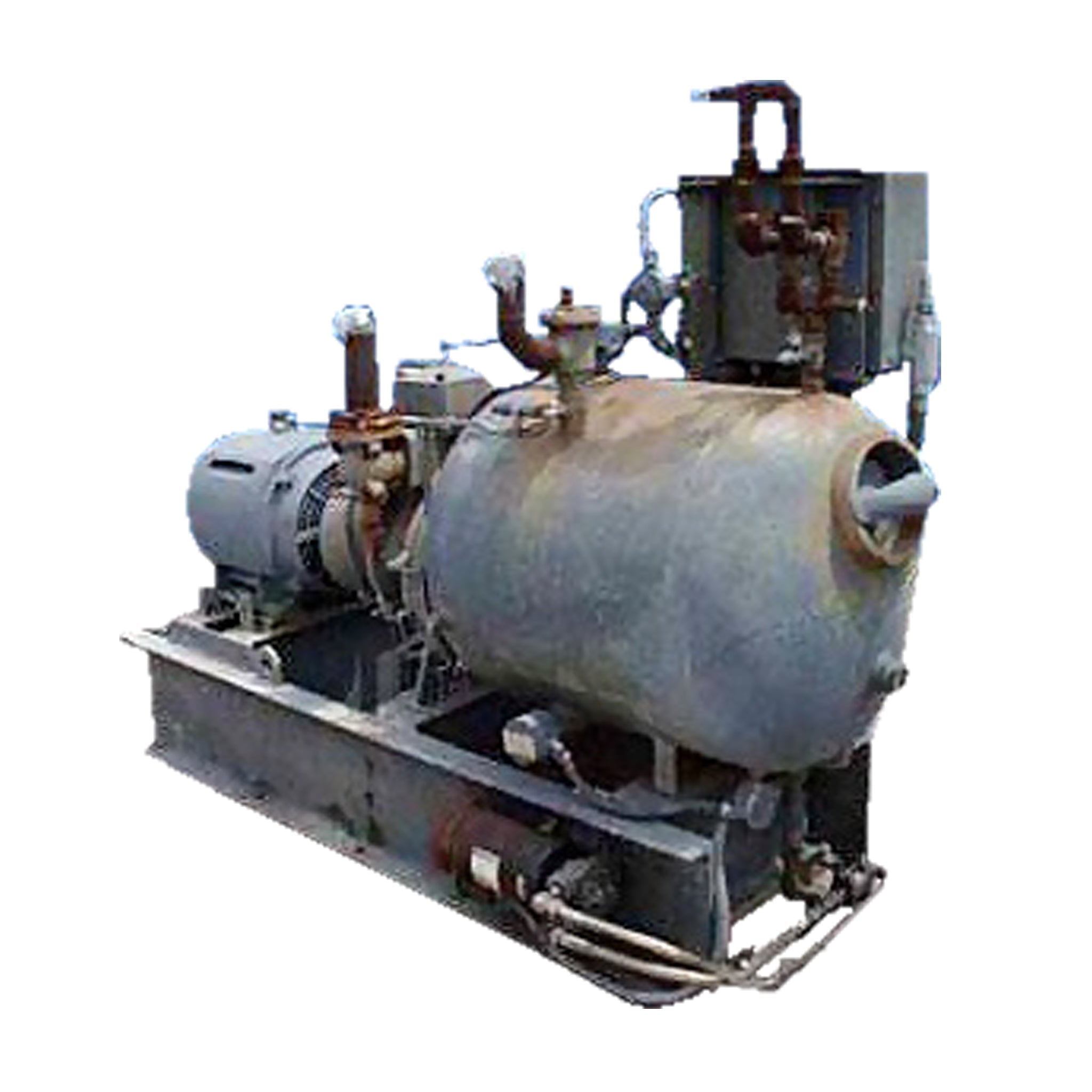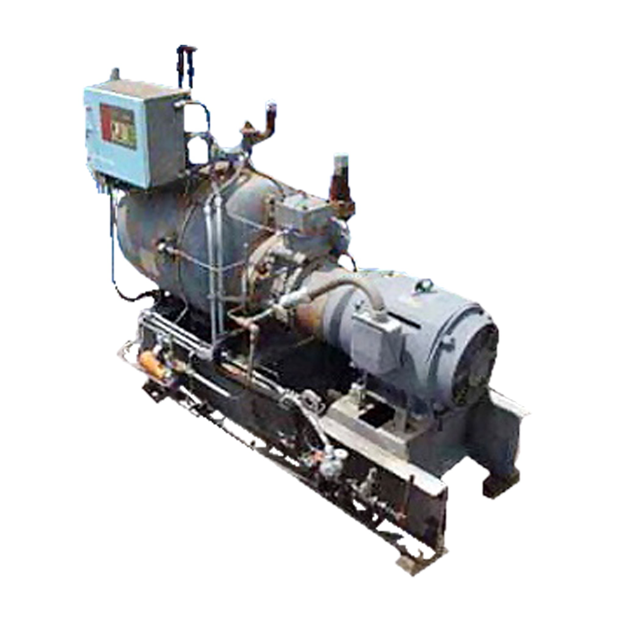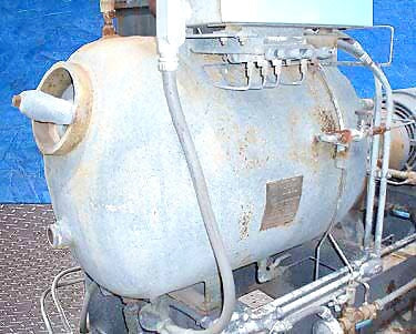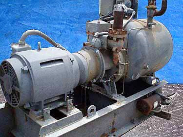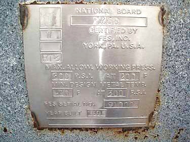 1991 FES Kobe Screw Compressor Package. Model 64. Compressor has the following markings on it: 890620 ; RS12SGB ; H1253373. Capacity at +20 °F is approximate 74 tons or at -20 °F suction about 33 tons capacity. Ram Industries Motor, 100 hp, 3532 rpm, 230/460 V, 230/115 amps, 60 Hz, 3 phase. Tuthill Rotary Pump, Model: 1311007103. Franklin Electric Motor, 1-1/2 hp, 208/230 V, 4.0/2.0 FLA, 4.5/2.25 SFA, 60/50 Hz, 3 phase. FES Micro Master Control Panel, power supply: 120 V, 15 FLA, 60 Hz, single phase. Pressure vessel: Nat'l Bd: 5268. MAWP: 300 psi. @ 200 °F. MDMT: -20 °F @ 300 psi. Inlets: (1) 3 in. dia. refrigerant suction port. Outlets: (1) 1/2 in. dia port, (1) 1 in. dia. port, (1) 2 in. dia. refrigerant discharge port. Overall dimensions: 8 ft. L X 3 ft. 6 in. W X 5 ft. 9 in. H. Compressor run time: 33755 hrs.(H4)(ACN300).