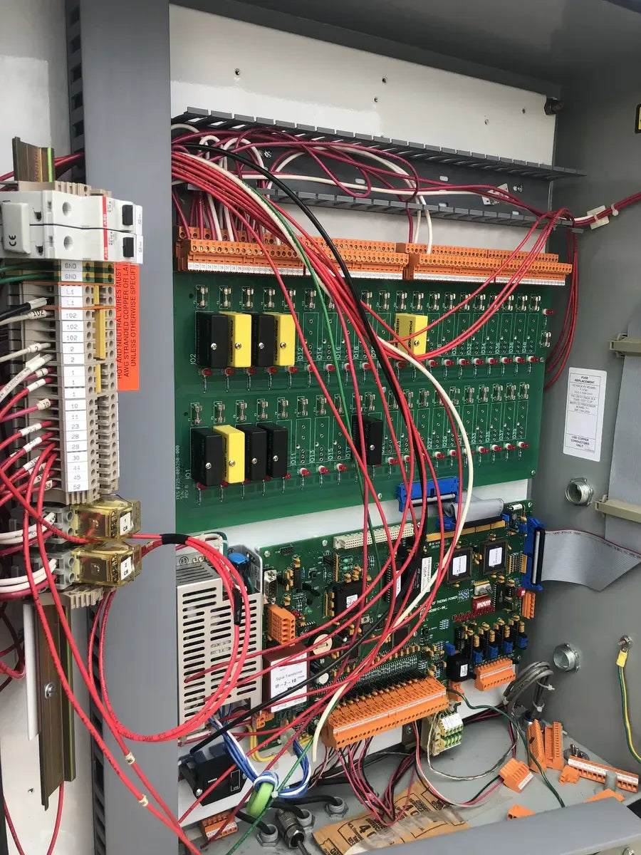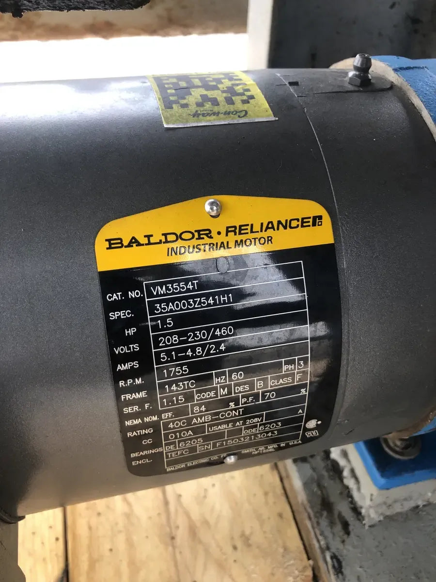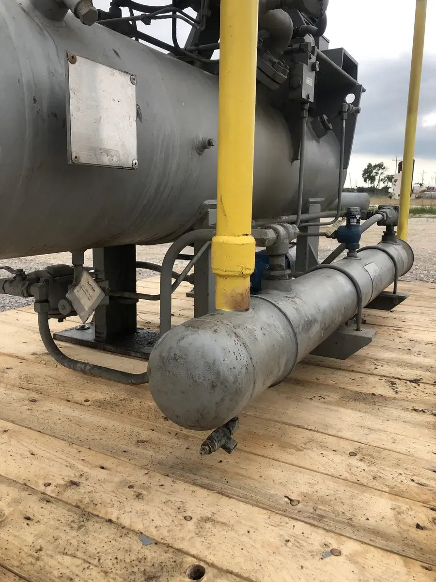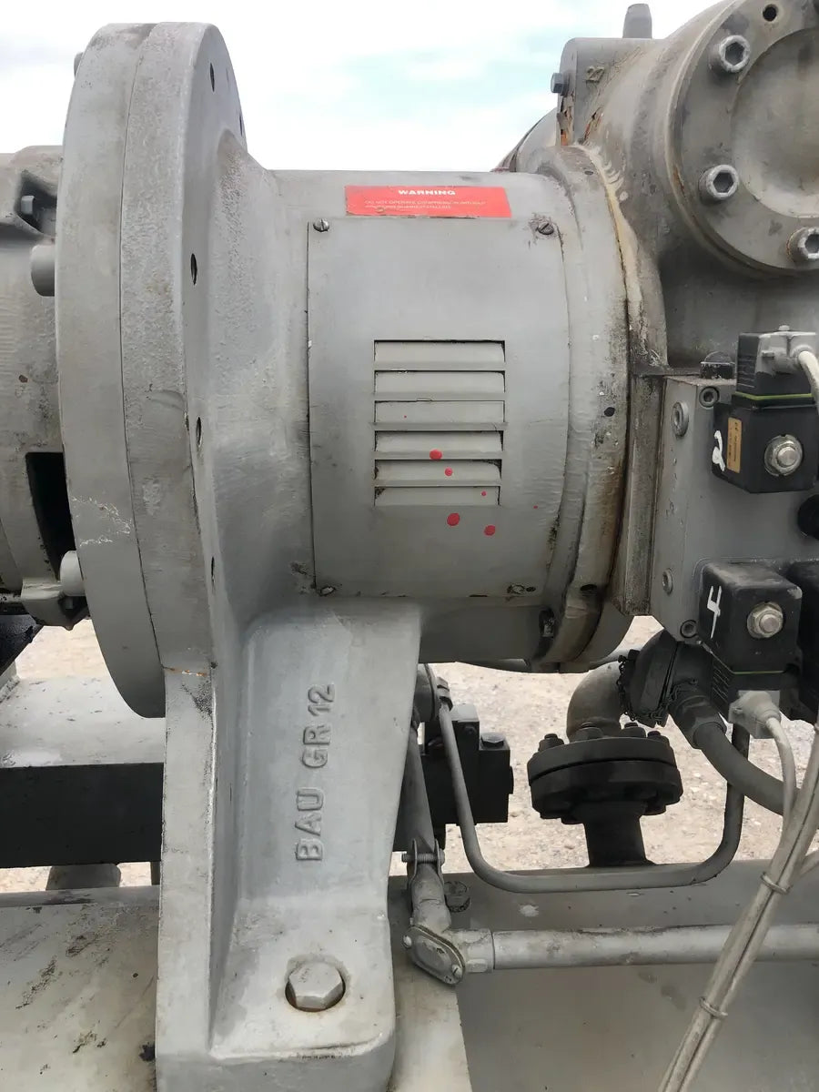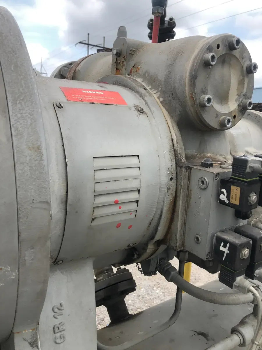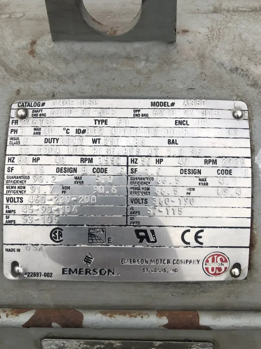 GEA (FES) Screw Compressor Package. Model: G-62, Serial No: G0437, Hydraulic Test Pressure:620 PSIG, Max Design Working Pressure: 406 PSIG, Geometric Swept Volume @ 3550 RPM @ 264 CFM.Weight Empty: 787 lb. Rotation C.W, Max Input Speed 6000 RPM, Refrigerant R-717, P&I DiagRam Industries: SM11.Year Of Mfg: 2004 Emerson Motor - Catalog No: D40E1DSC, Model No: AS50, Shaft End Brg: 6310 2Z JC3, Opp End Brg: 6210 2Z JC3, Fr: 286TSC, Type: FD, Encl: DP, Ph: 3, Max Amb: 40, ID: H0241077102-001R, Insul Class: F, Duty: Cont: WT: 250 Lbs, Hz: 60, HP: 40, RPM: 3550, Volts: 460-230-208. GEA (FES) Control Panel - FES Contract No: 04333011, Model No: 85GSB, Serial No: 04333011, Control Panel FLA 25-120V-1PH- 60Hz.