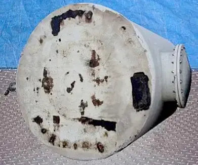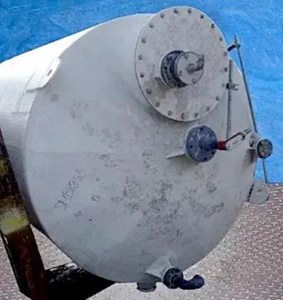 Fiberglass Tank-1900 Gallon. Last used for silicone. Inlets: 2-1/4 in. inlet. Outlets: 25 in. dia. port, 1-1/2 in. port, 1 in. port. Overall dimensions: 107 in. dia x 128 in. L.(H22).
