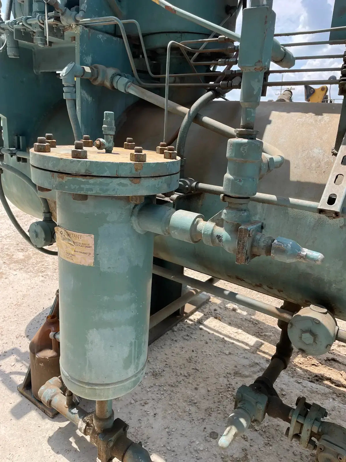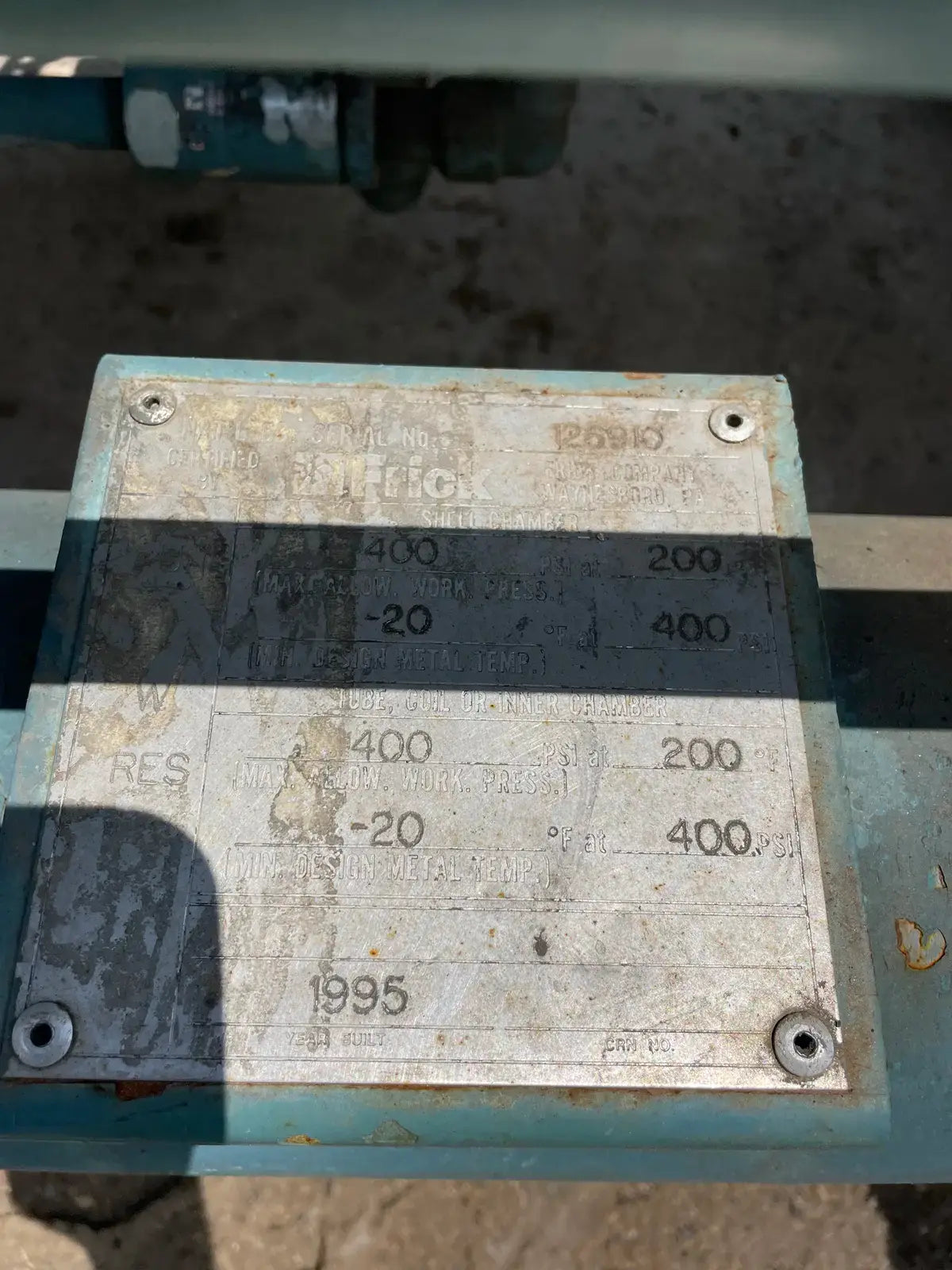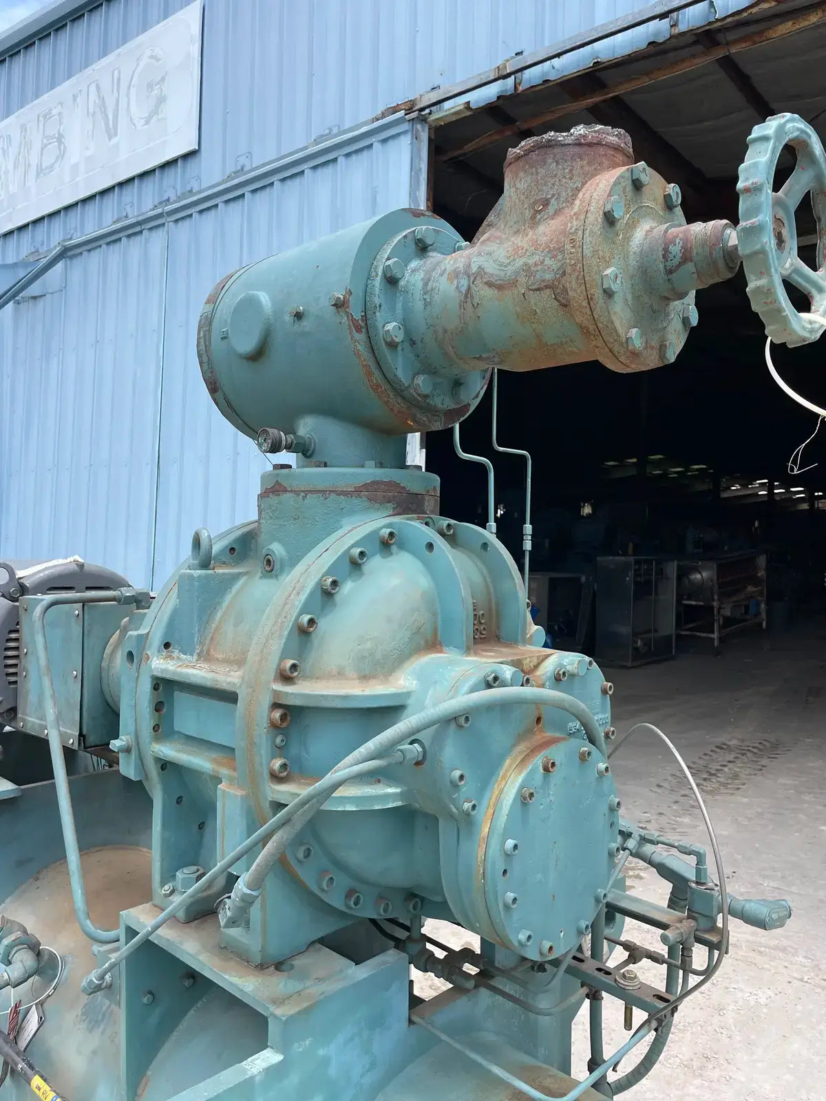 Used Frick RDB-177B Rotary Screw Compressor Package. Model: RDB-177B, Serial No: S0085PFMFTHAA03, Frick Sales Order: 26576502000, Refrigerant: R-717, Max Design Pressure: 250 PSIG. Frick Bare Screw Compressor: Model: TDSL233S. Serial No: 0119EE. Refrigerant: R-717/R22. Volume Ratio: 2.8. Max Speed RPM: 4500. Design Pressure: 350 PSIG. Year Of Mfr: 1995. Certified by Frick Oil Separator: National Board: 127390. MAWP: 250 PSI @ 200 F. MDMT: -20 F @ 250 PSI.
