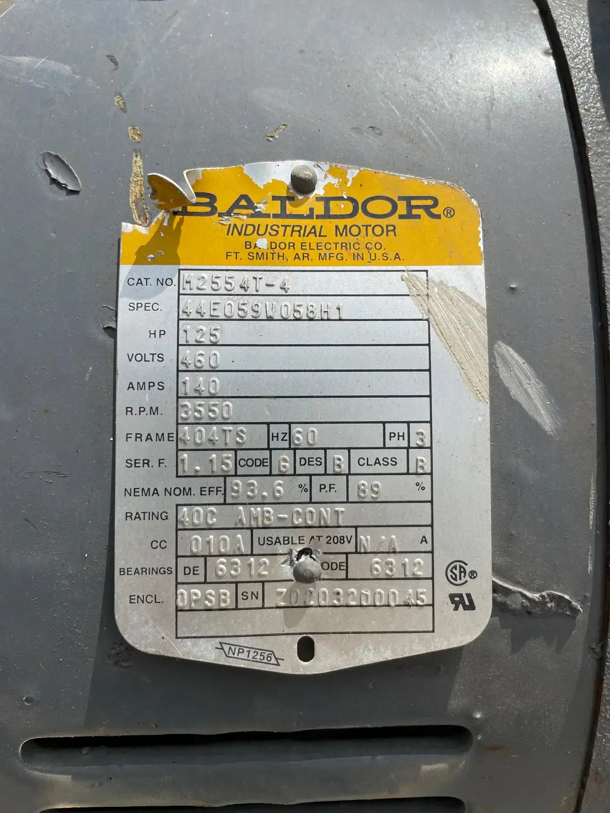 Frick RDB-177B Rotary Screw Compressor Package (Frick TDSL233S, 125 HP 460 V, Frick RDB Plus Control Panel)