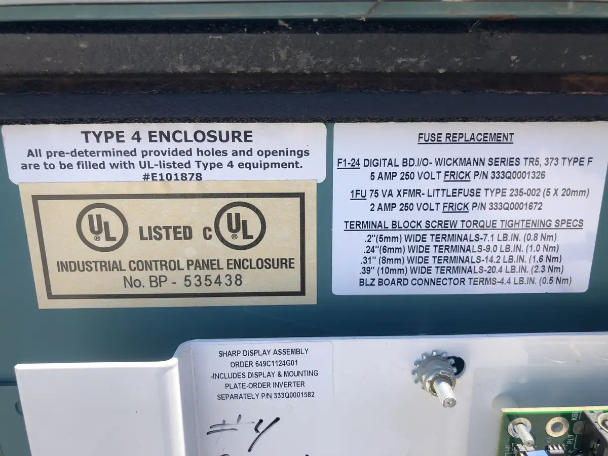 - Micro Control Panel Description: Frick Quantum Control Panel - Industrial Control Panel Enclosure No: 535438. Volts - Controls: 115AC. Amps - Control: 5, Phase: 1, Hertz:50/60. ID Code: Quantum.