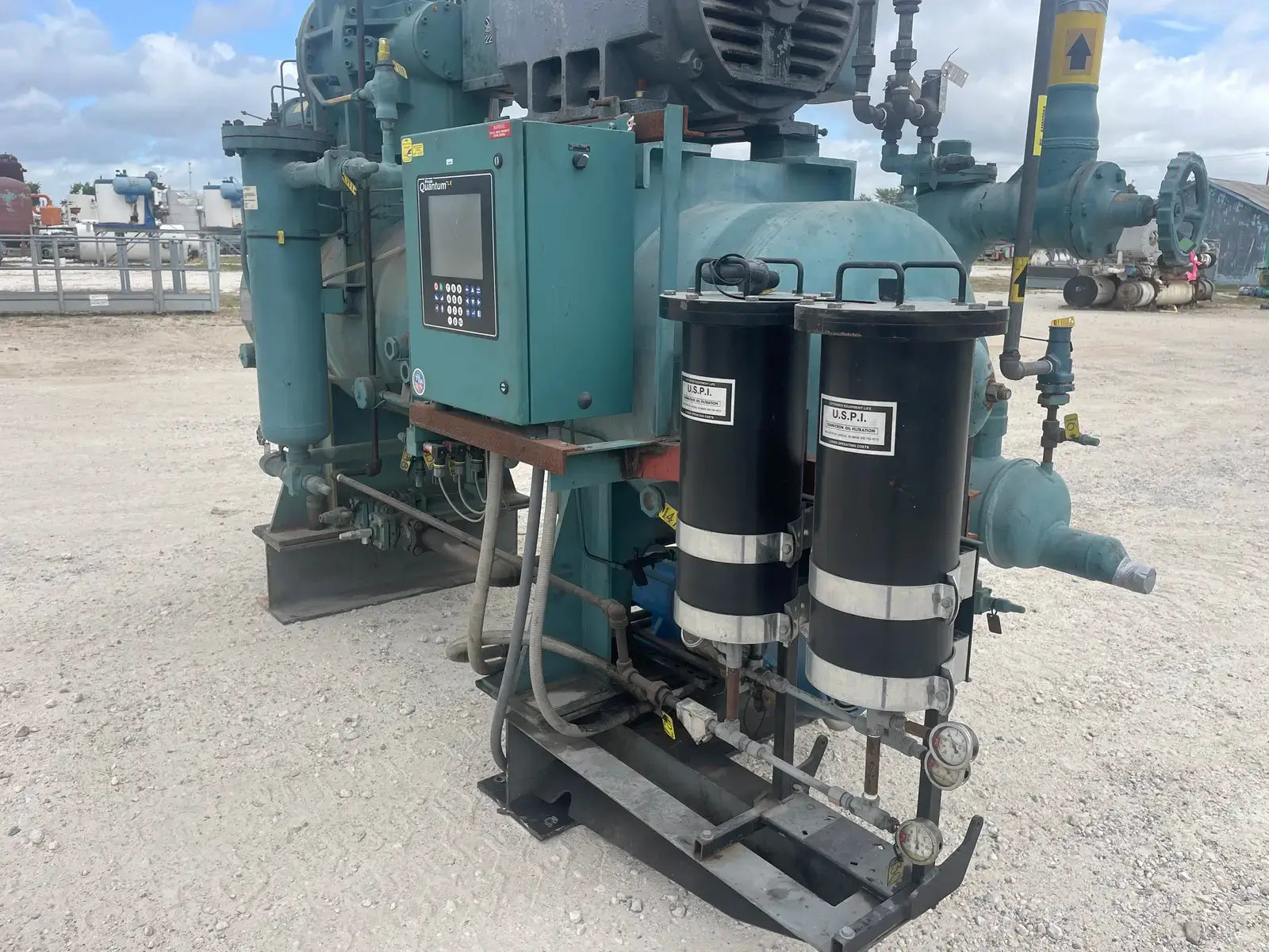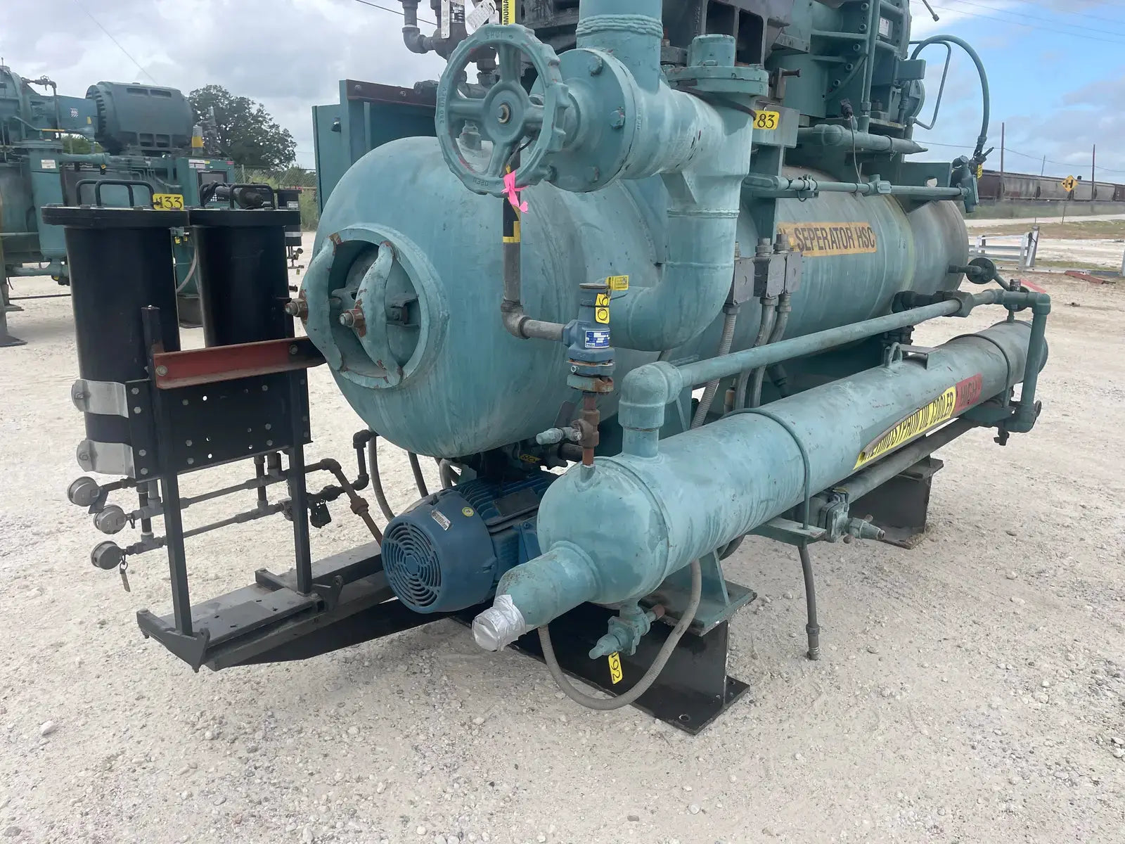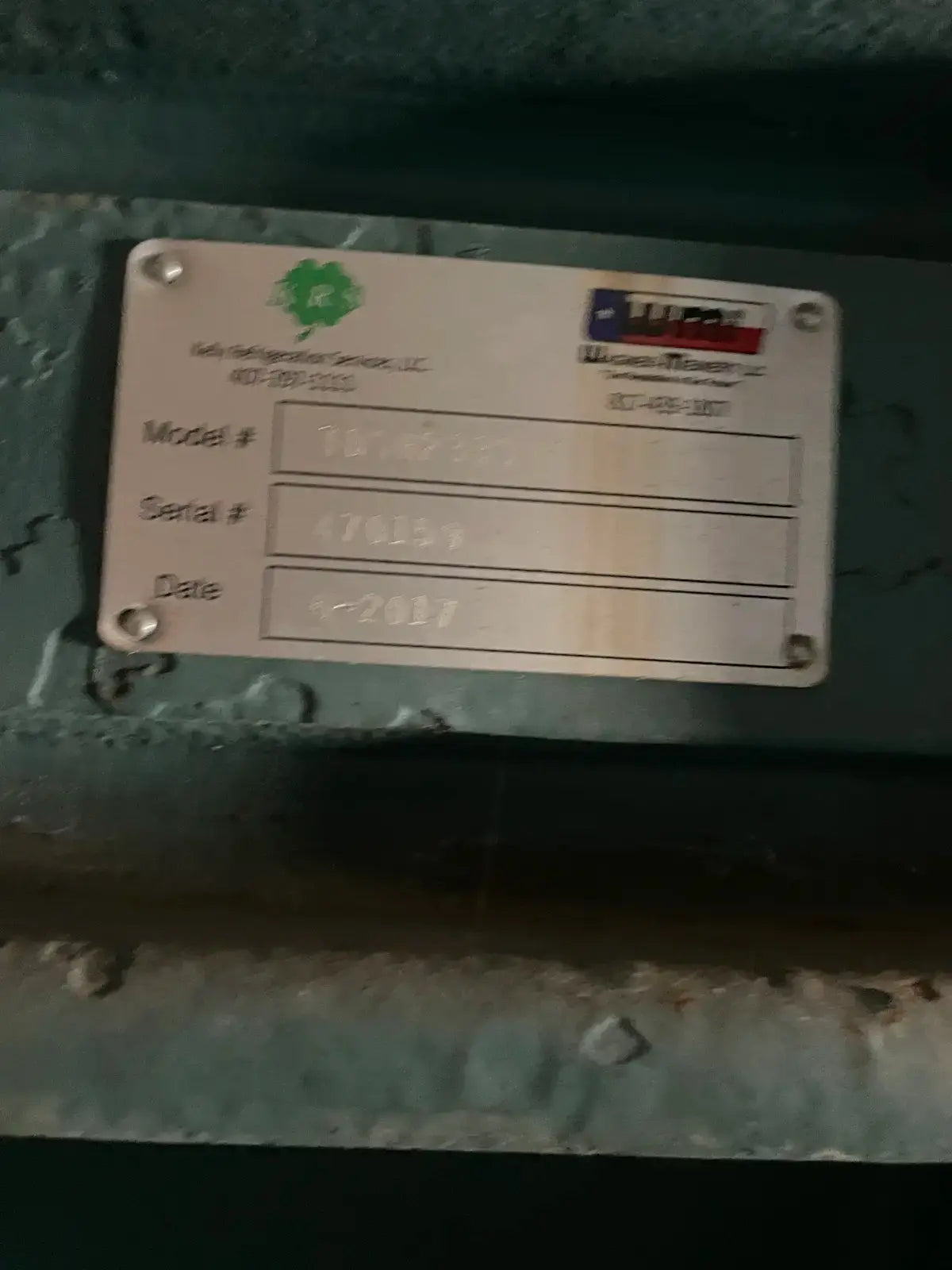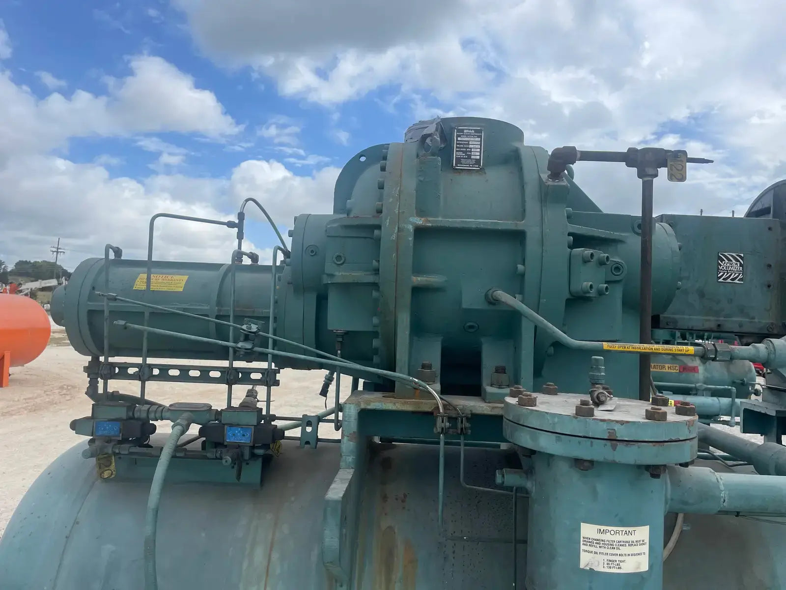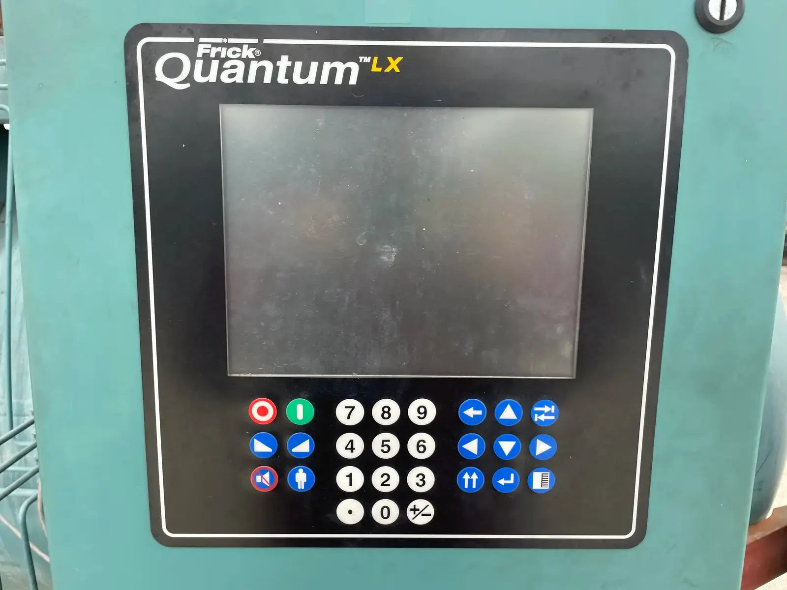 Frick Screw Compressor Package. Package - Model No: RWBII-177H. Serial No: S0697PFMFT0AA03. Refrigerant: R-717. Max Design Pressure: 300 PSIG. Frick Rotary Bare Screw Compressor - Model: TDSH233S. Serial No: 2058E. Refrigerant: R717/R22. Volume Ratio: 2 2-5 0. Max Speed: 4500 RPM. Design Pressure: 350 PSIG. Year of Mfr: 1995. Certified by Frick Oil Separator - National Board: 129149. MAWP: 300 PSI @ 200 F. MDMT: -20 F @ 300 PSI. Year Built: 1995. Frick Quantum LX Control Panel. Ram Industries Electric Motor - 450 HP. 3570 RPM. 460 Volts. 3 PH. 60 Hz.