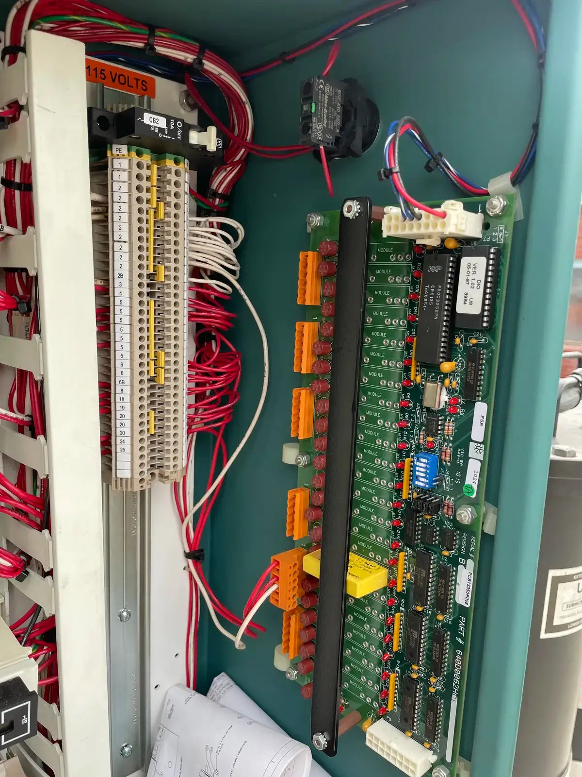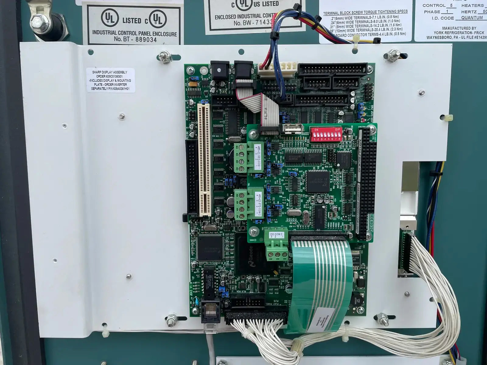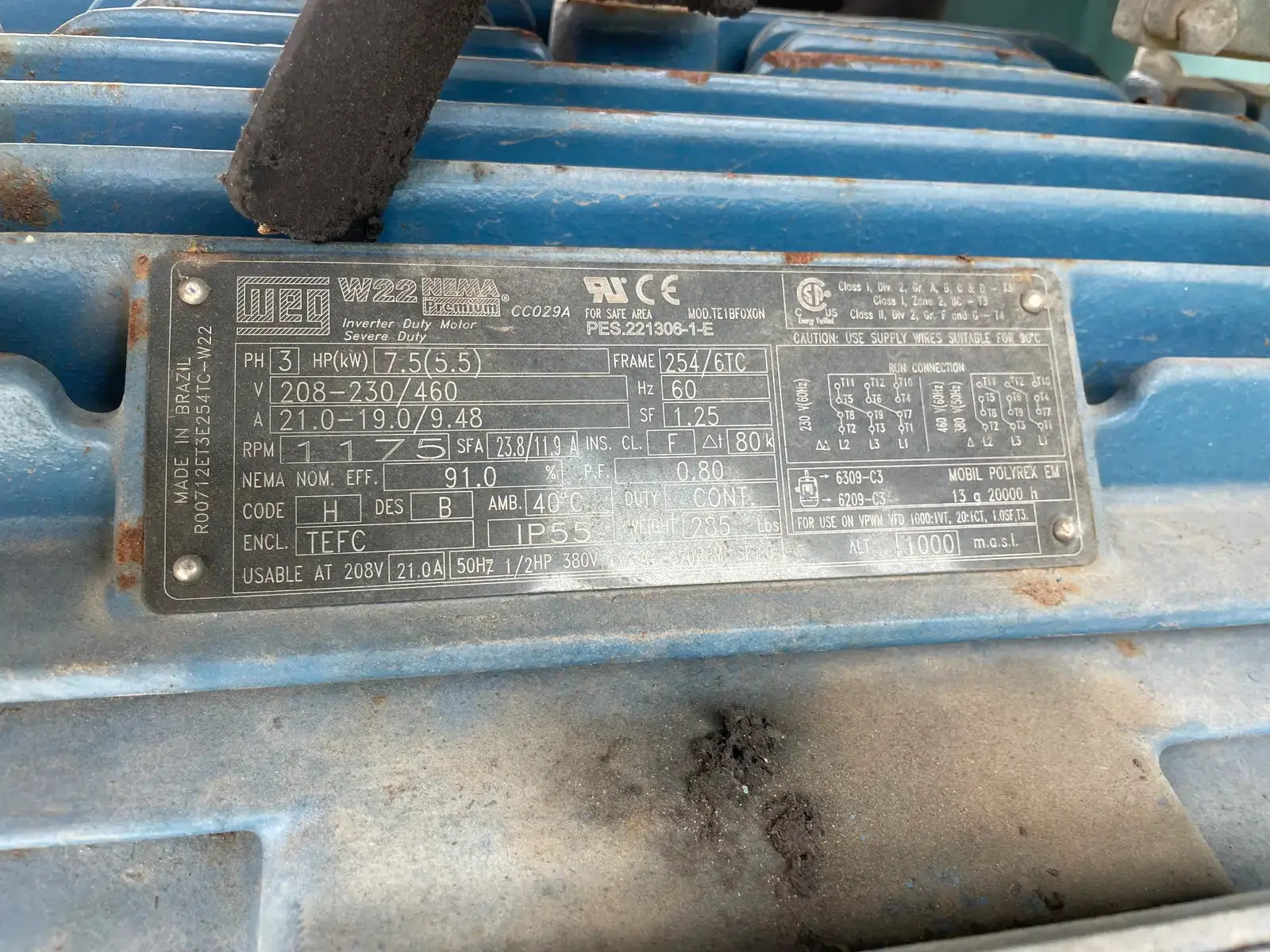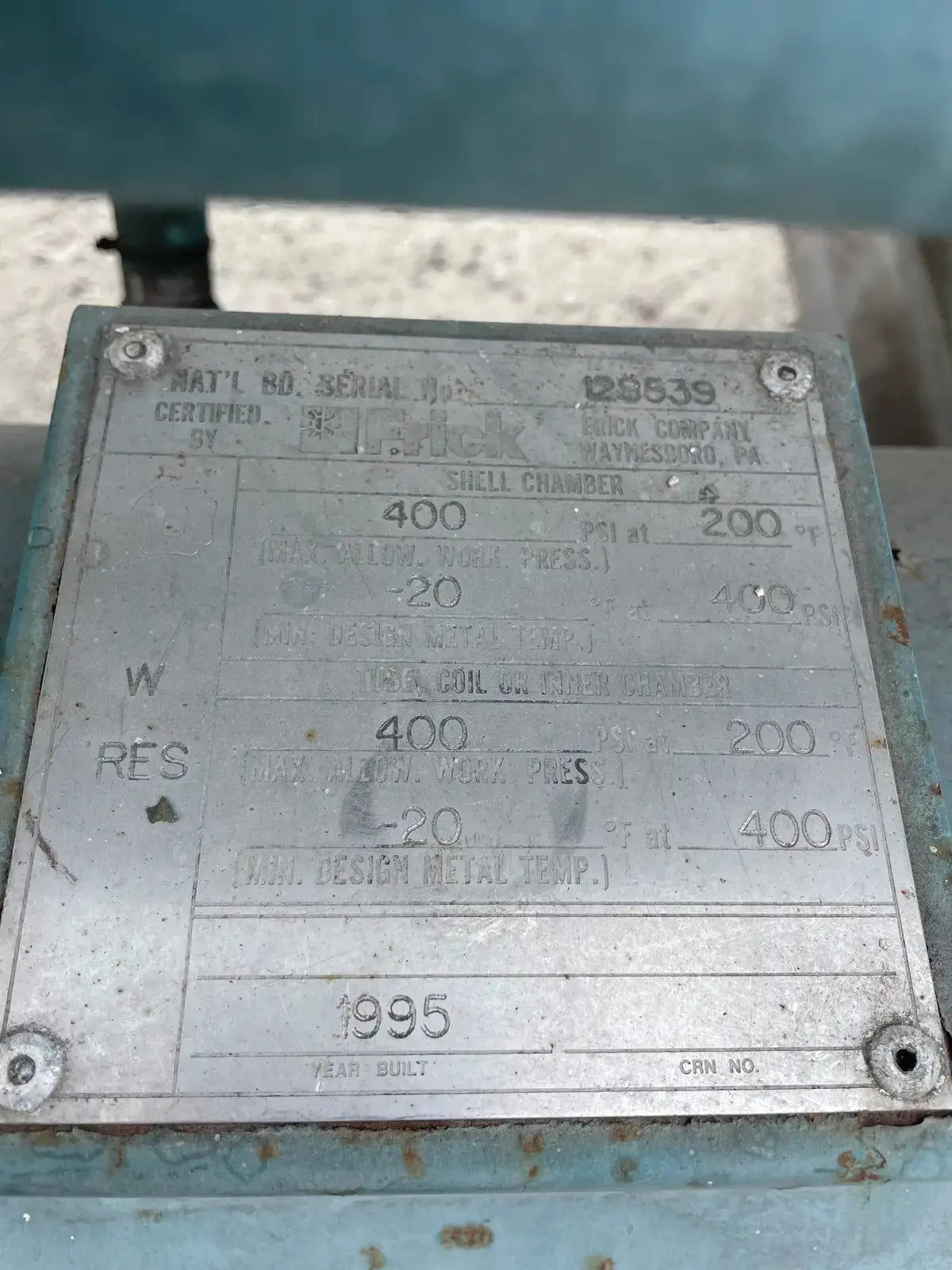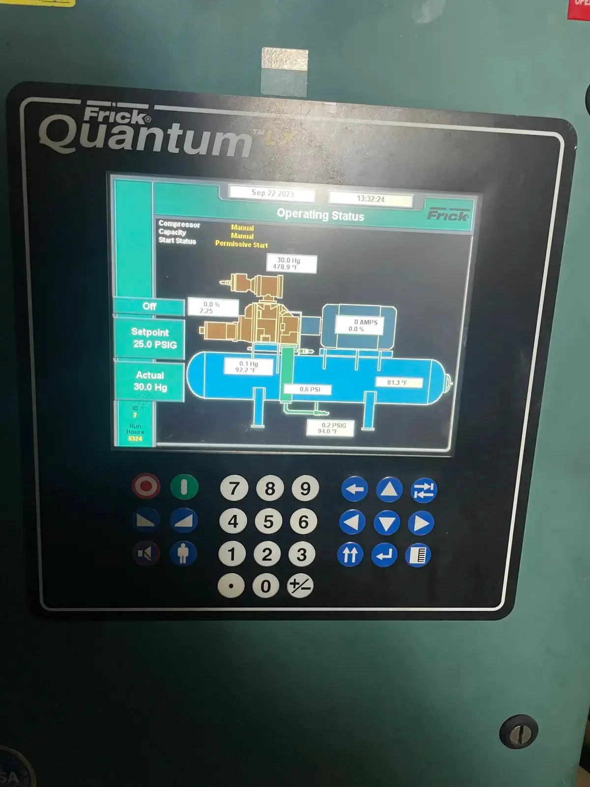 Frick Screw Compressor Package. Package - Model No: RWBII-177H. Serial No: S0697PFMFT0AA03. Refrigerant: R-717. Max Design Pressure: 300 PSIG. Frick Rotary Bare Screw Compressor - Model: TDSH233S. Serial No: 2058E. Refrigerant: R717/R22. Volume Ratio: 2 2-5 0. Max Speed: 4500 RPM. Design Pressure: 350 PSIG. Year of Mfr: 1995. Certified by Frick Oil Separator - National Board: 129149. MAWP: 300 PSI @ 200 F. MDMT: -20 F @ 300 PSI. Year Built: 1995. Frick Quantum LX Control Panel. Ram Industries Electric Motor - 450 HP. 3570 RPM. 460 Volts. 3 PH. 60 Hz.