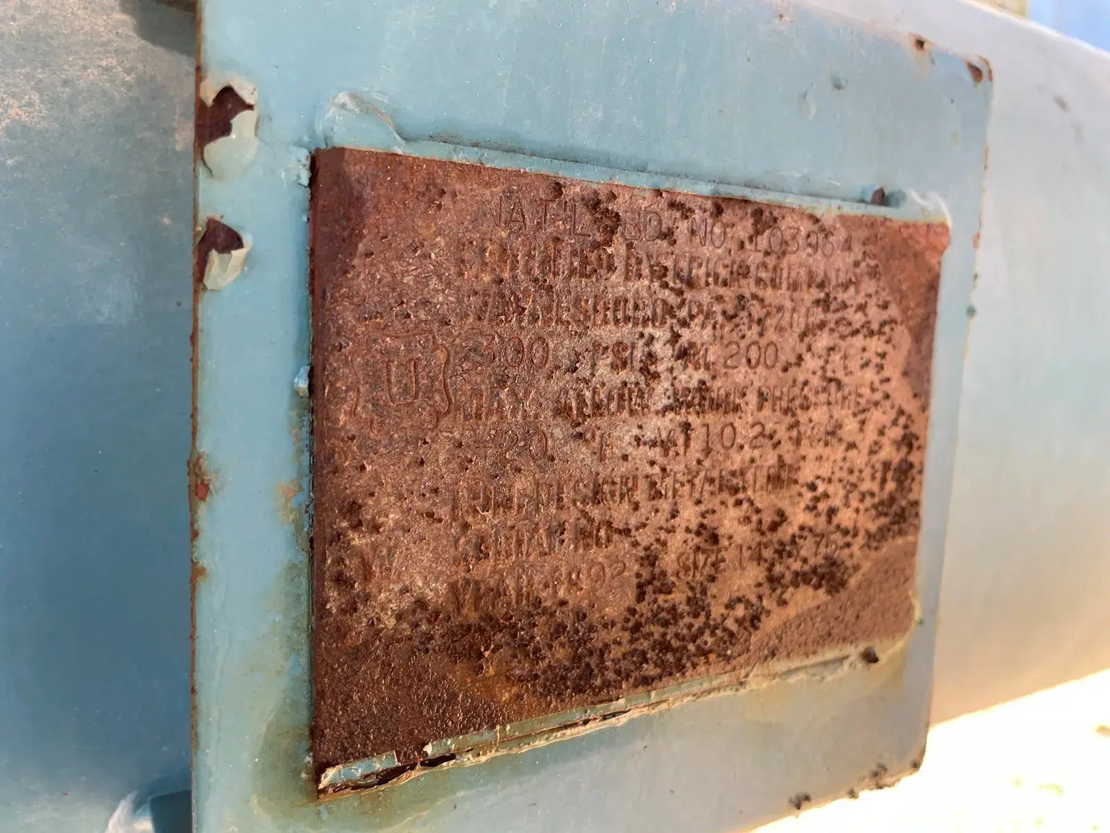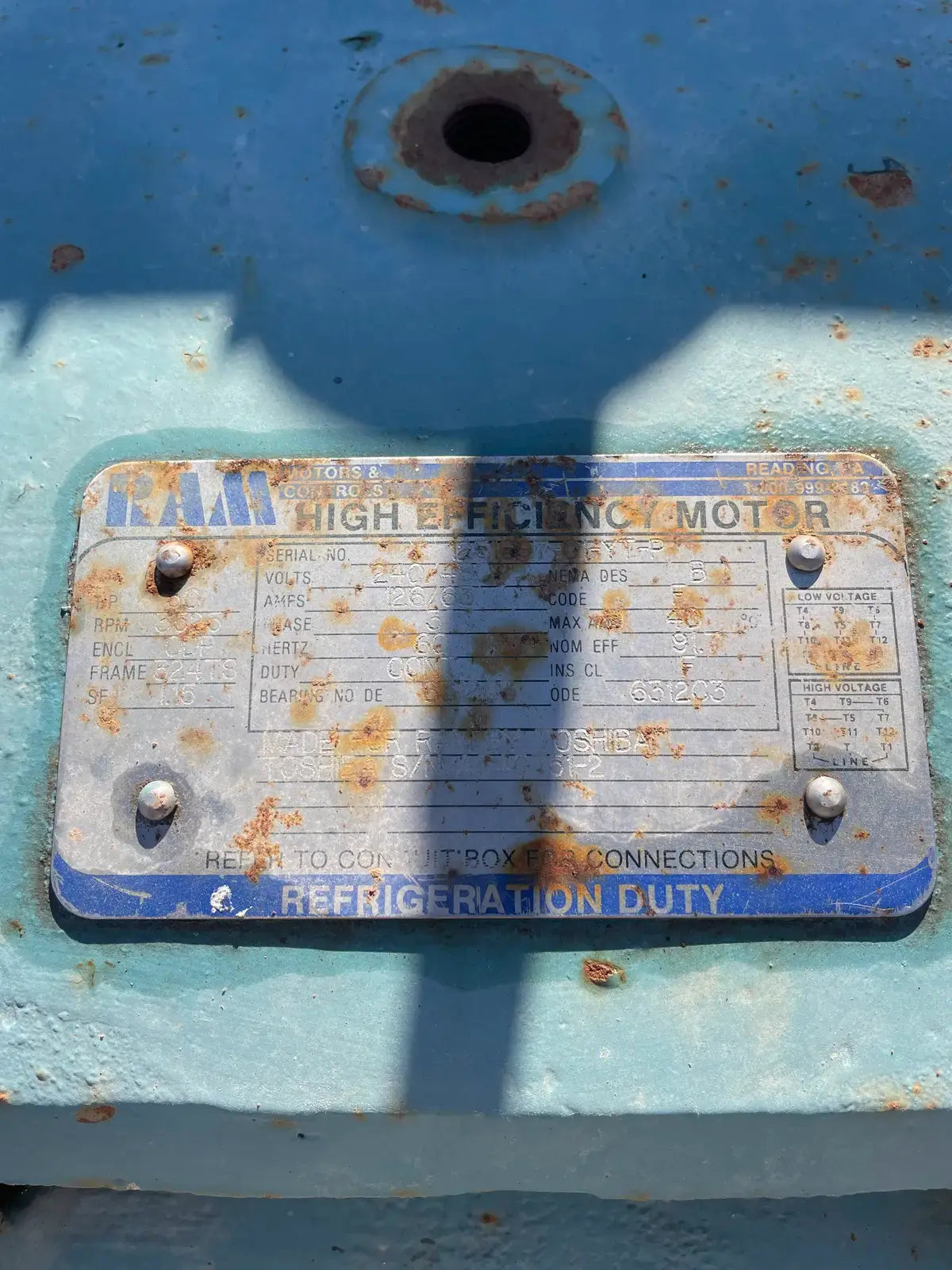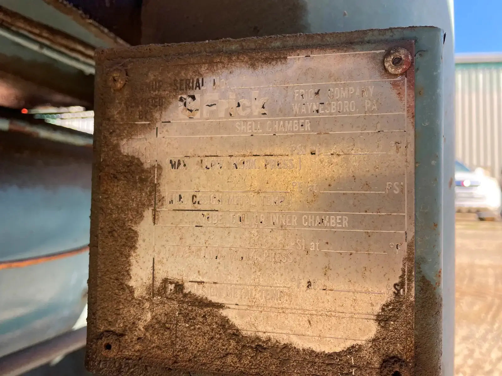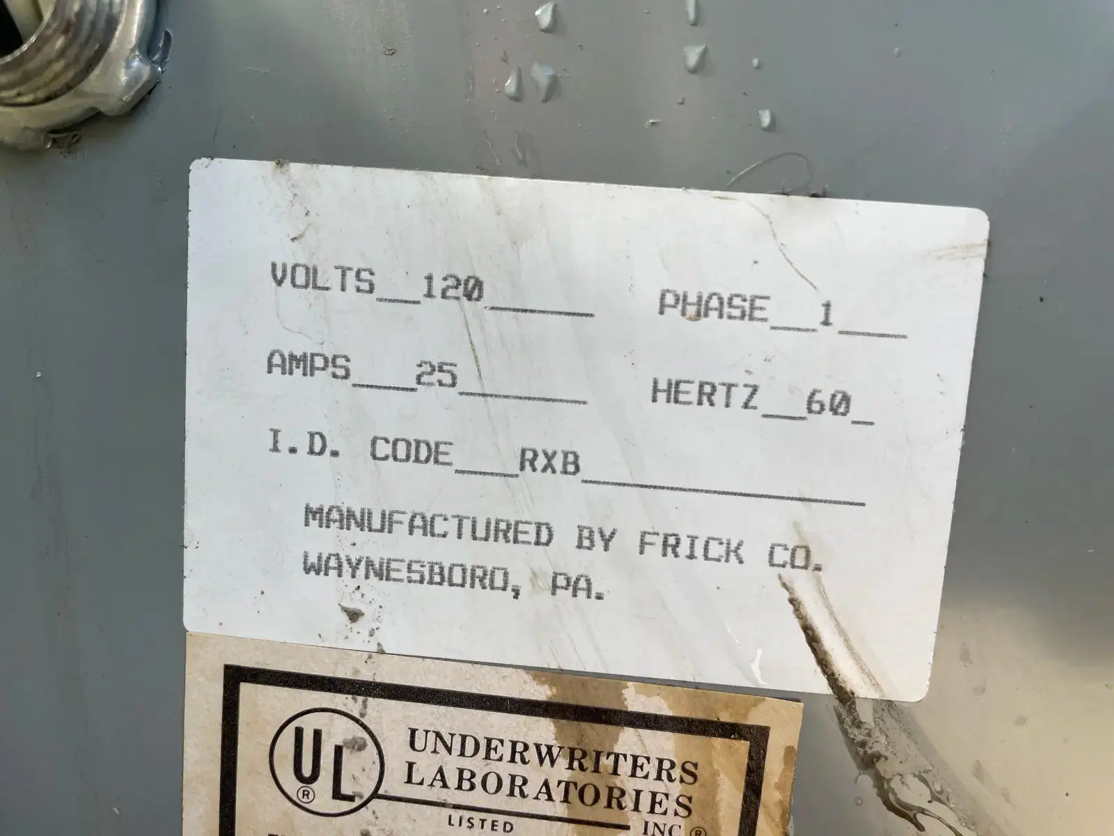 Frick RXB Rotary Screw Compressor Package. Package Model: RXB-19. Unit Serial No: S0080LFMCTHAA3. Frick Sales Order: 208775-01. Refrigerant: R717. Max Speed: 3600 RPM. Max Design Pressure: 300 PSIG. Bare Rotary Bare Screw Compressor: Model: XJS95L. Serial No: 0139C. Refrigerant: NH3/R22. Volume Ratio: 2.2-5.0. Max Speed: 4700 RPM. Max Design Pressure: 362 PSIG. Frick RXB Plus Control Panel.