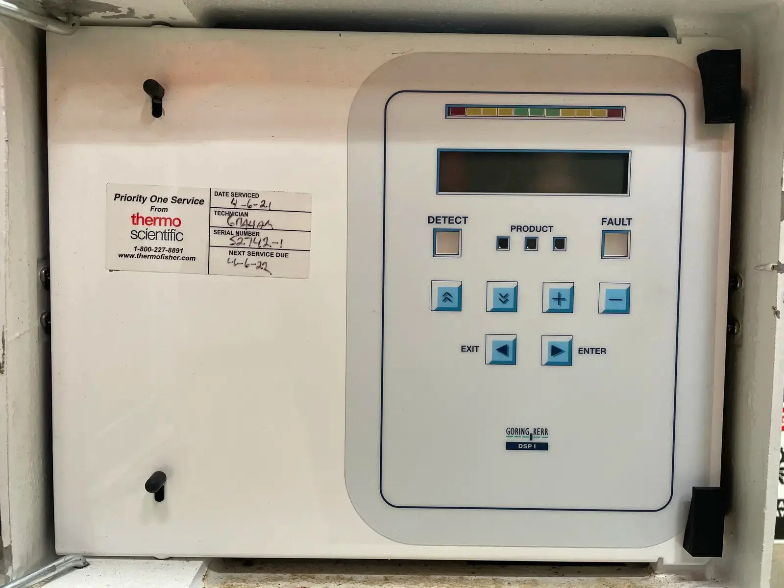 Goring Kerr Metal Detector. Model: DSP1, Serial No: 52742-1. Aperture Size: 8in W x 4in H x 13in L.