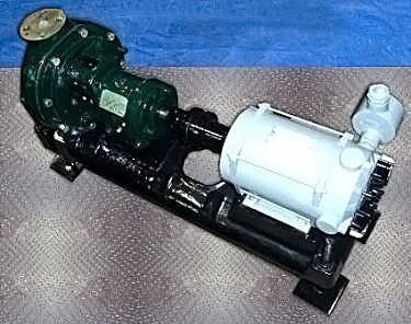 Goulds Centrifugal Pump. Model 3196. S/N 788B861. Size 1 in. x 1-1/2 in. x 8 in. Impeller dia: 6.62 in. Material Construction: Alloy 20. Capacity: 14 gpm @ 51 hd.ft. Double mechanical seals with flushing. Motor specifications: 1.5 hp, 1,730 rpm, 230/460 V, 60 Hz, 5.6/2,8 amps, 3 phase. Overall dimensions: 35 in. L x 12 in. W x 15 in. H. (ACN71)