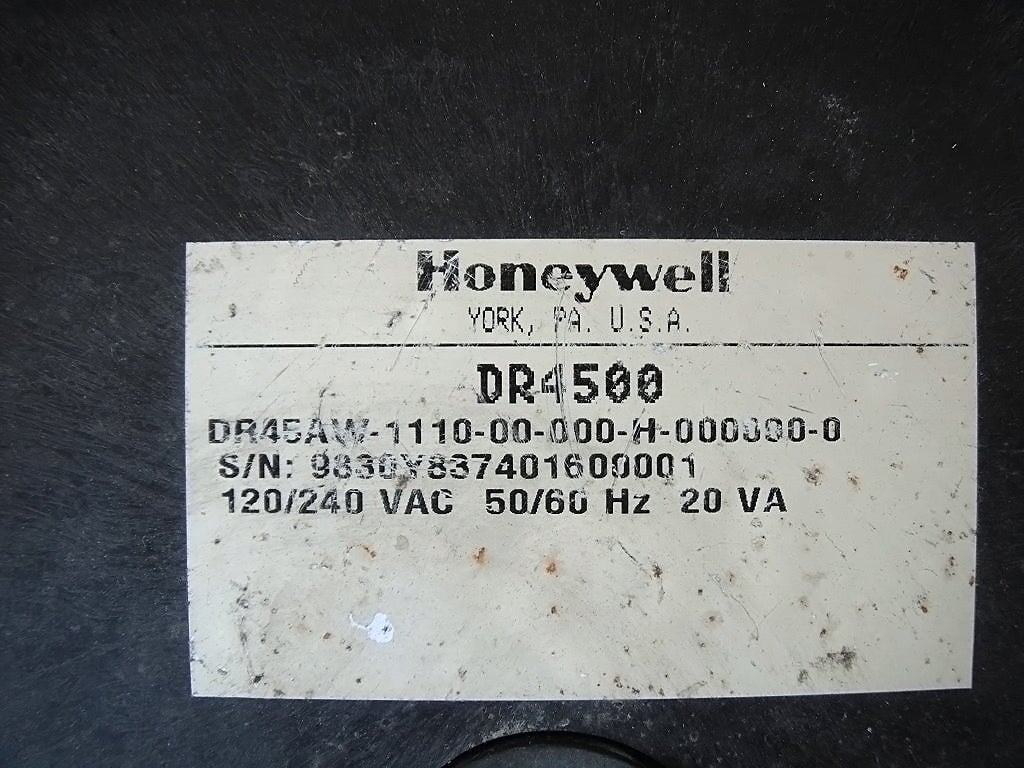 Honeywell Chart Recorder. Model: DR45AW-1110-00-000-H-000000-0. S/N: 9830Y837401600001. Power supply: 120/240 VAC, 50/60 Hz, 20 VA. Overall dimensions: 1 ft. 2 in. L x 6 in. W x 1 ft. 5 in. H.