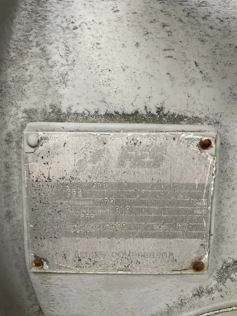WAS REMOVED FROM A 2010 FES 155S Screw Compressor Package- Serial No: MK1J-1950, Model: 155S, Hydraulic Test Pressure: 470 PSIG, Max Design Working Pressure: 313 PSIG, Refrigerant: 1270, Max RPM: 3600, Year of Manufactured: 2010. Bare Screw Compressor spins by hand.
