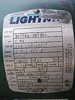 Lightnin Flange Mount Mixer. P/N: 15927. Flange Diameter: 12 in. Seal type: O-Ring. Baldor Industrial Motor, 1.74 hp, 1725 rpm, 230/460 V, 9/4.5 amps, 60 Hz, 3 phase. Overall dimensions: 12 in. L x 11 in. W x 3 ft.