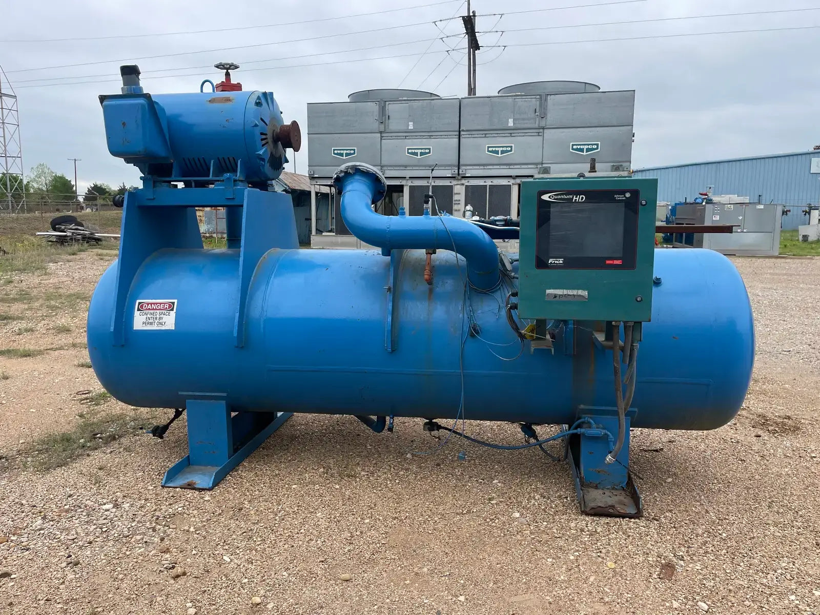 M&M Screw Compressor Package. M&M Model: 268 121594. MFG No: 103-0100A. Max Working Pressure: 300 PSIG. Frick Quantum HD Control Panel. 350 HP Motor.