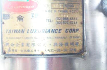 Taiwan Luxuriance Candy Cooker- 10 Gallon. Model HL-0-19. Batch team observation vessels. Syrup feed pump: 1/2 hp. Steam chamber and supply, cooking coil, vapor space and extraction, vacuum chamber with pan-swindling device, discharge pan to 5 hp. Vacuum pump: 220/440V 1720 rpm. Capacity: 1,500 Kgs (8 hr). Overall dimensions: 55 in. L x 34 in. W x 65 in. H.