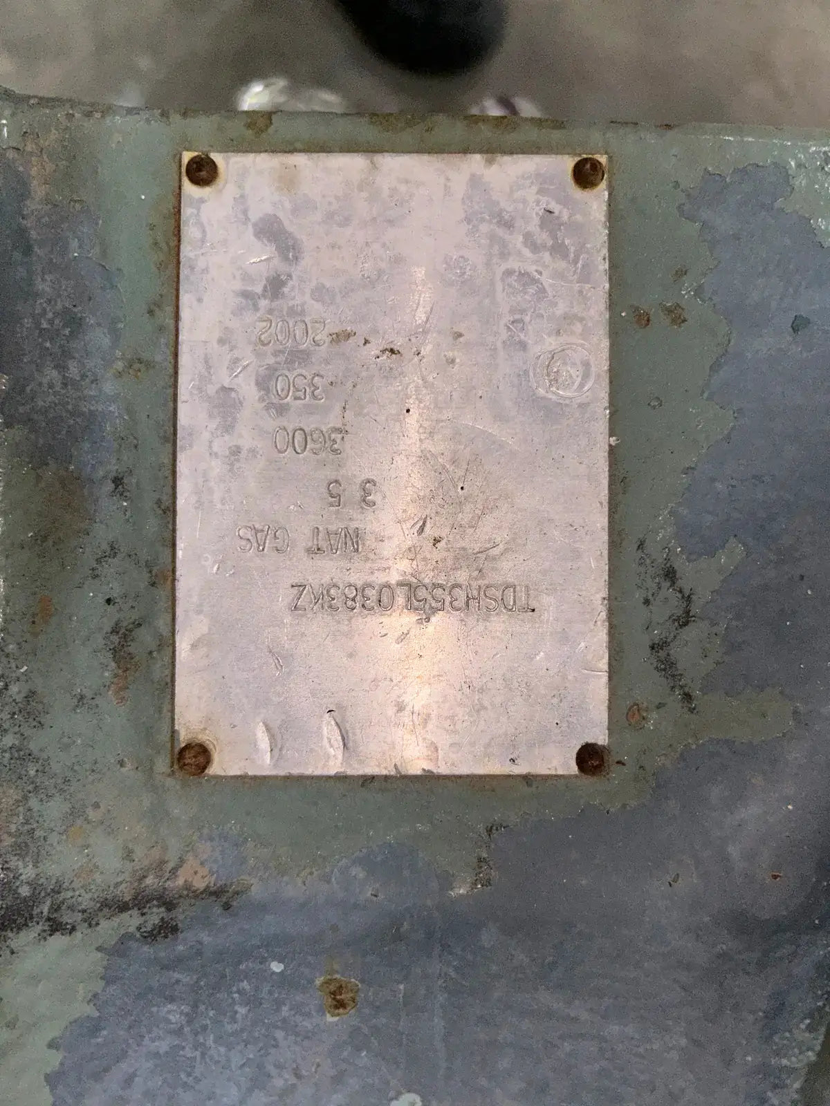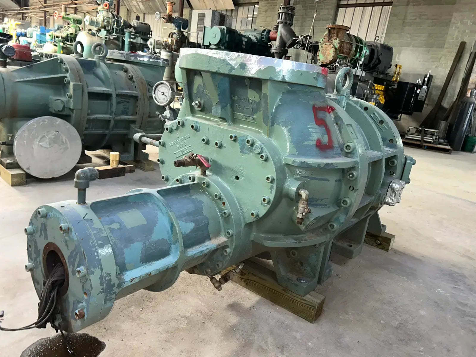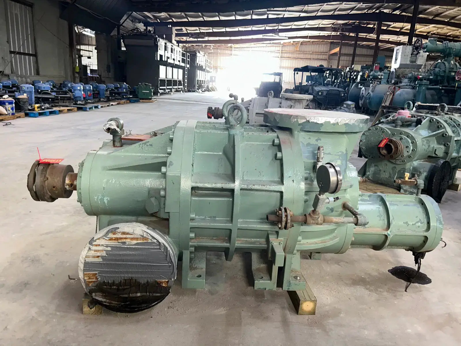 Frick TDSH Series Rotary Bare Screw Compressor. Model: TDSH355L. Serial No: 0383KZ. Refrigerant: Natural Gas. Volume Ratio: 3.5. Max RPM: 3600. Max Allowable Pressure: 350 PSI. Year Built: 2002.