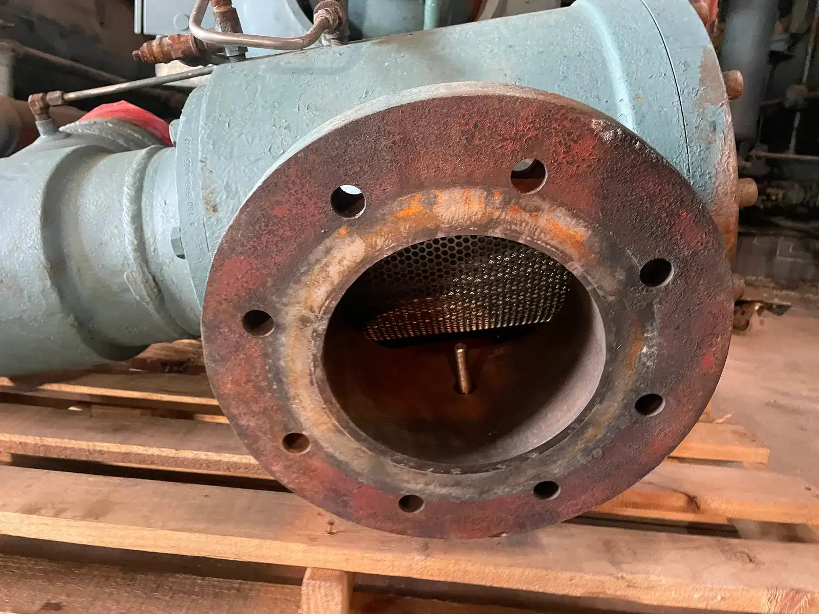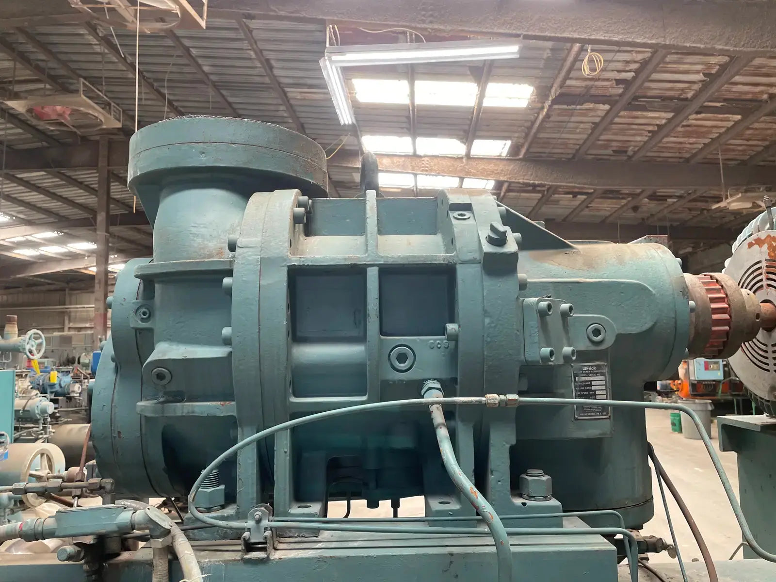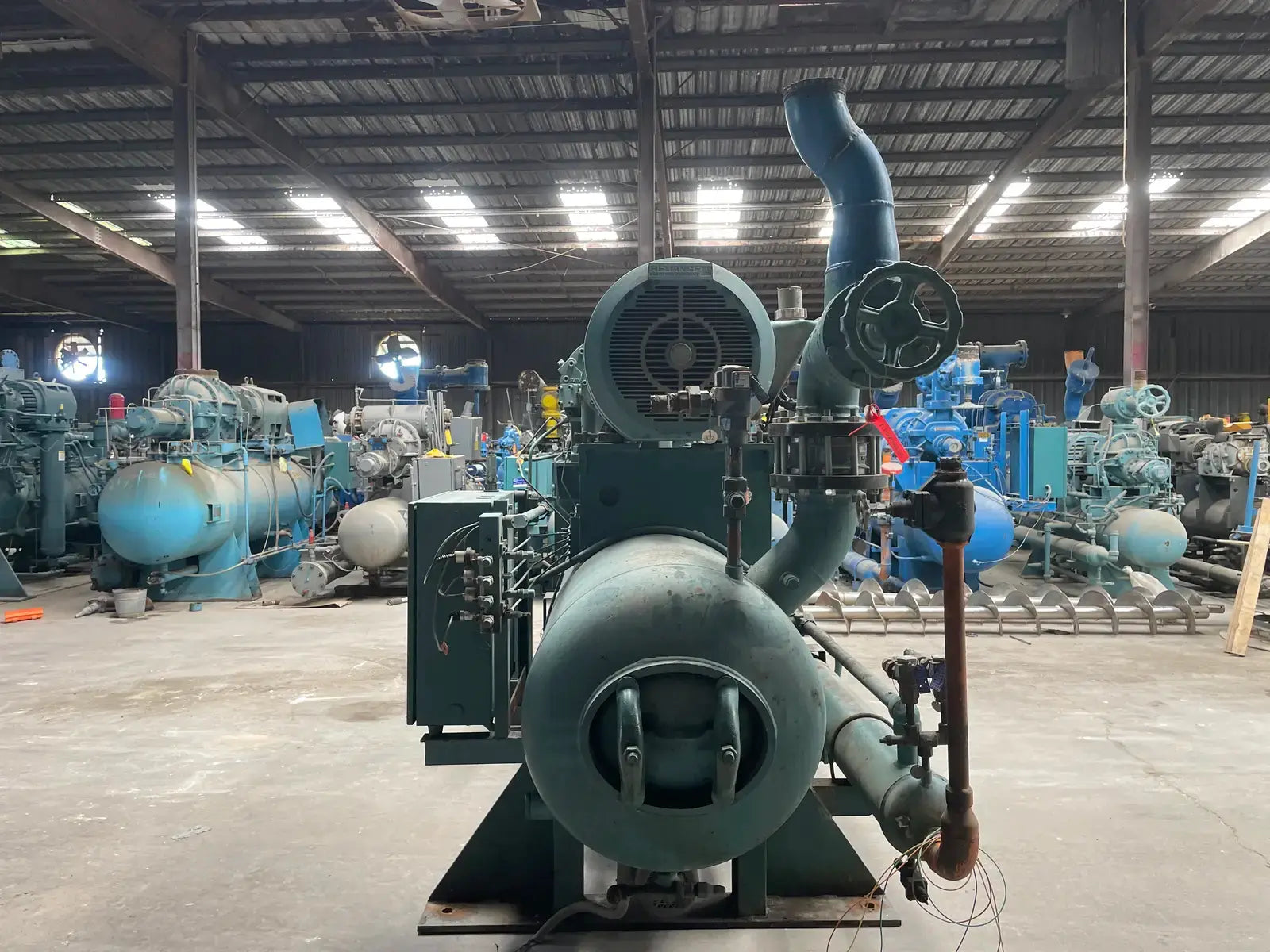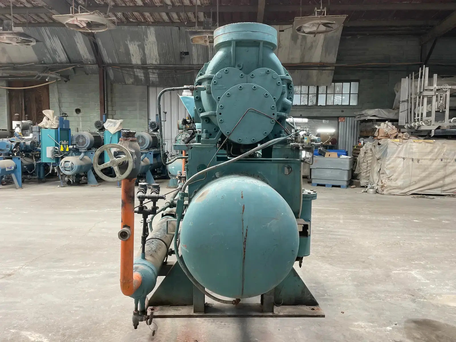 Frick RDB Rotary Screw Compressor Package. Model: RDB-316. Serial No: S0082LFMFTHBA3. Frick Sales Order: 264240-01. Refrigerant: R717. Max Speed: 3600 RPM. Max Design Pressure: 150 PSIG. Frick Bare Screw Compressor: Model: TDSL283S, Serial No: 0245GGR, Refrigerant: R717, Volume Ratio: 2.2-5.0, Max Speed: 3600 RPM, Design Pressure: 350 PSIG, Year of Mfr: 2004. Certified by Frick Oil Separator: National Board: 107878, MAWP: 150 PSI @ 200 F. MDMT: -20 F @ 10.2 PSI. Frick RDB Plus Control Panel.