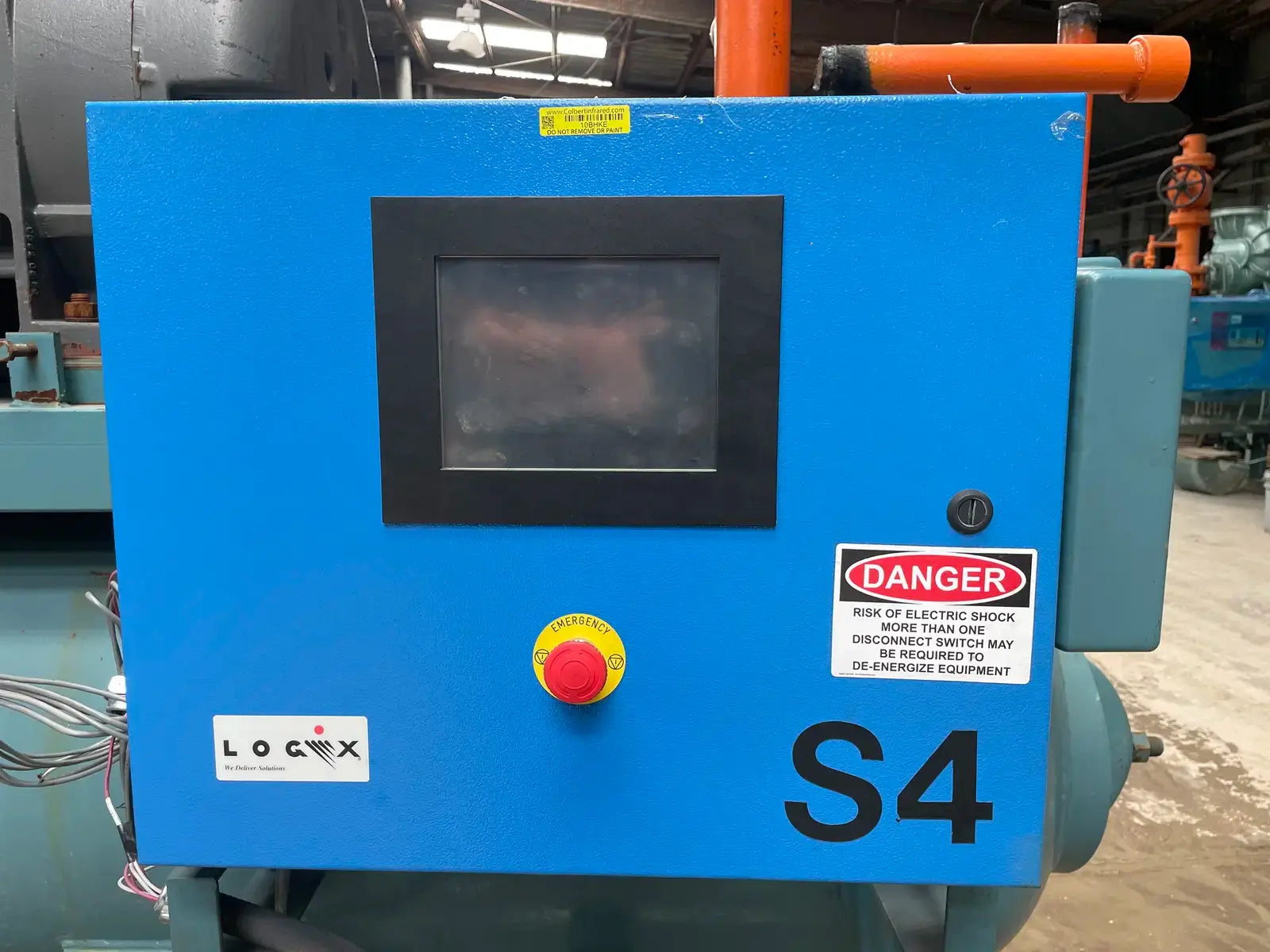 Frick Rotary Screw Compressor Package: Model: RWB-II-100, Serial No: S0515LFMCTHAA3, Frick Sales Order: 280634-07, Refrigerant: R717, Max Speed RPM: 3600, Max Design Pressure: 300 PSIG. Frick Bare Rotary Screw Compressor: Model: TDSH193S, Serial No: 2952C, Refrigerant: R717, Volume Ratio: 2.2-5.0, Max Driver Speed RPM: 4500, Year of MFR: 2006. Certified by Frick Oil Separator: National Board:103111, MAWP: 300 PSI @ 200 F, MDMT: -20 F @ 10.2 PSI. Logix U.L. Listed Industrial Control Panel.