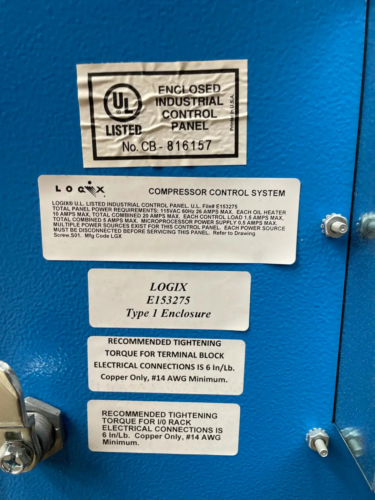 • Micro Control Panel Description: Logix U.L. Listed Industrial Control Panel