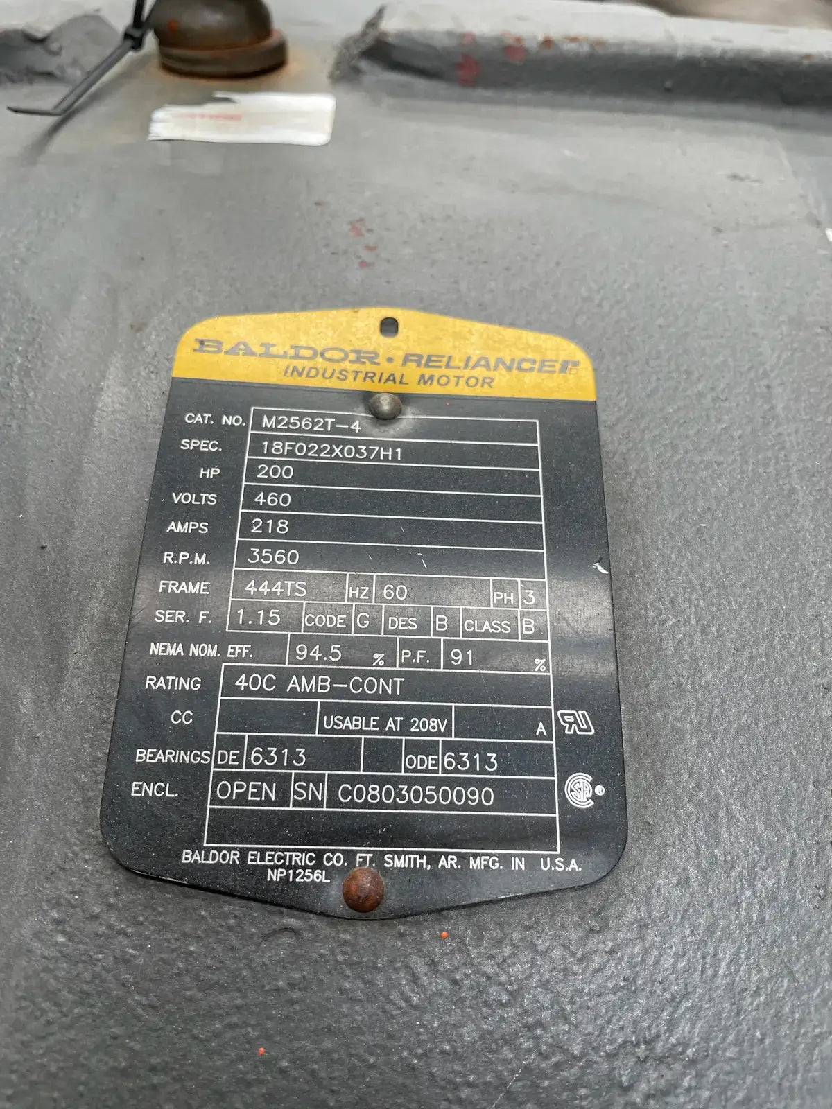 • Motor Manufacturer: Baldor Reliance