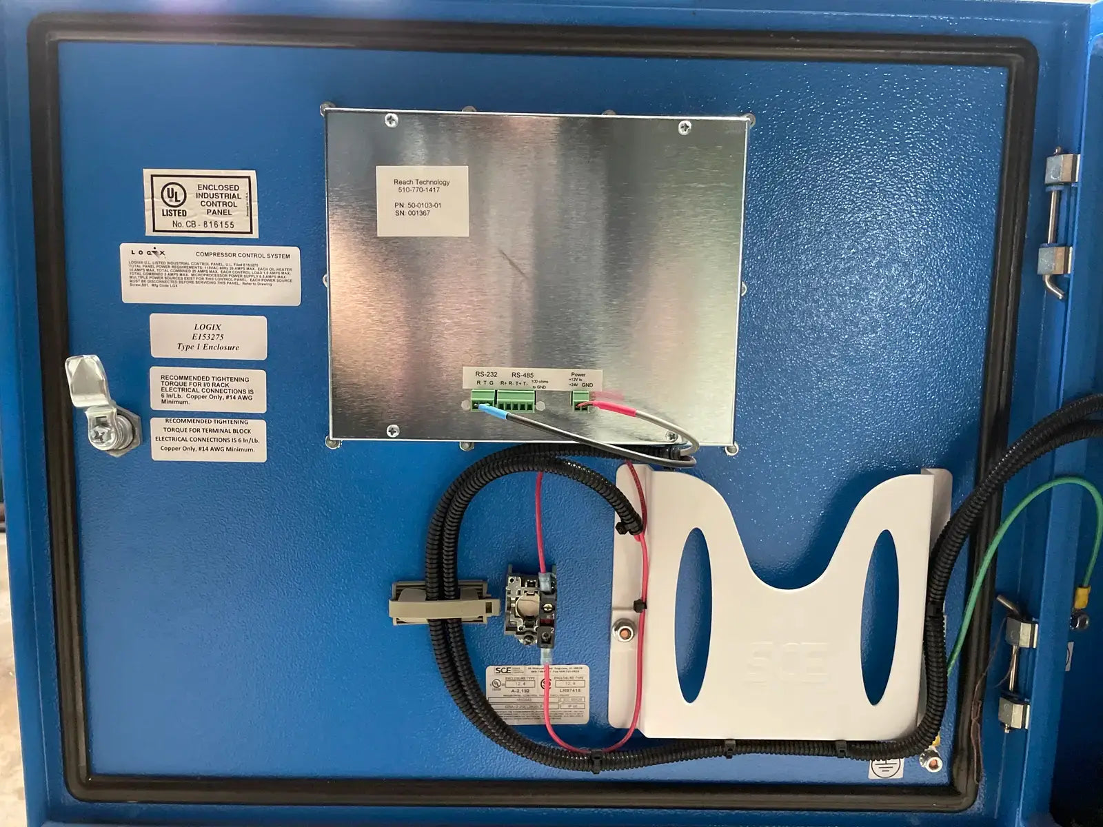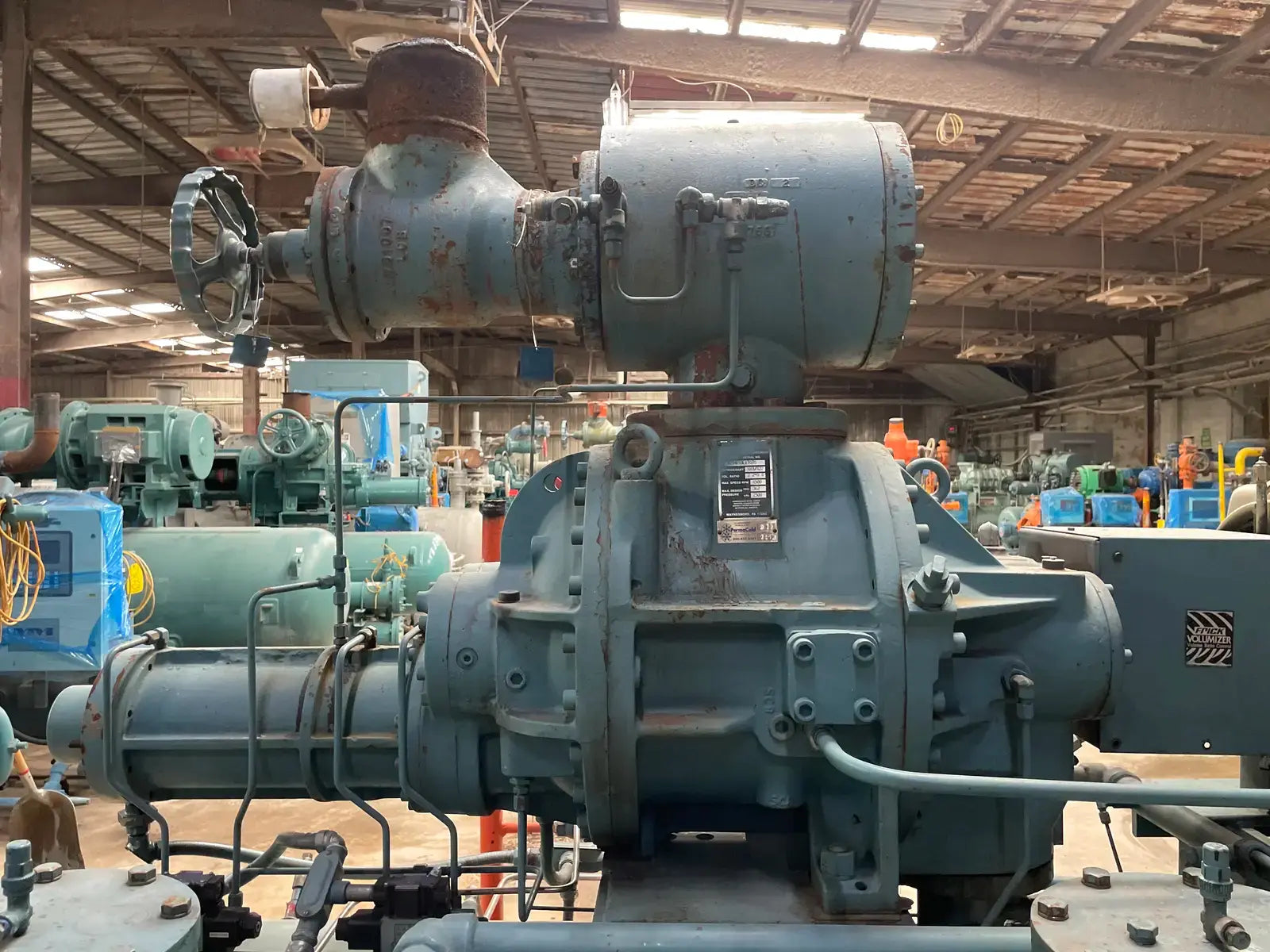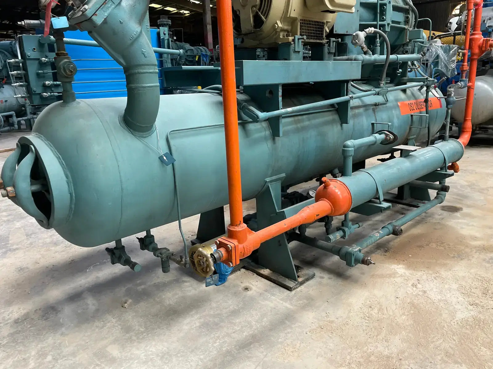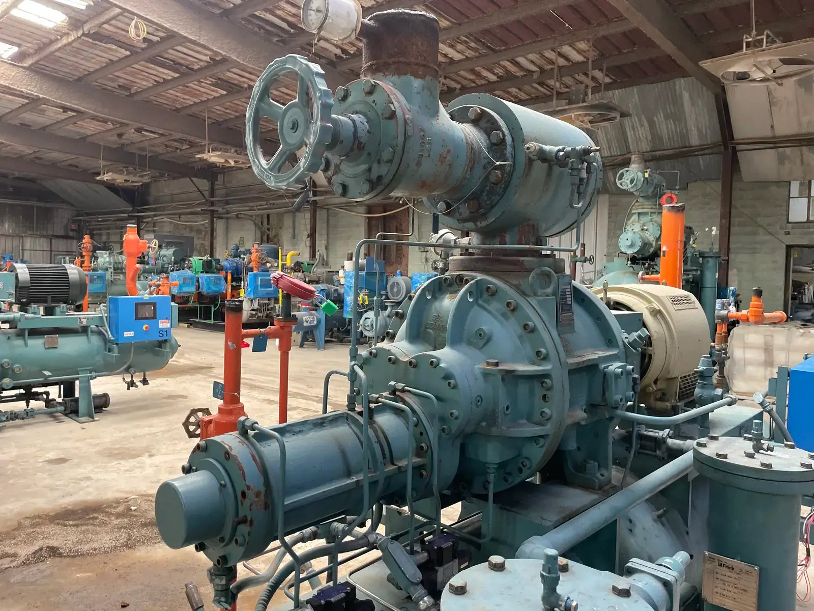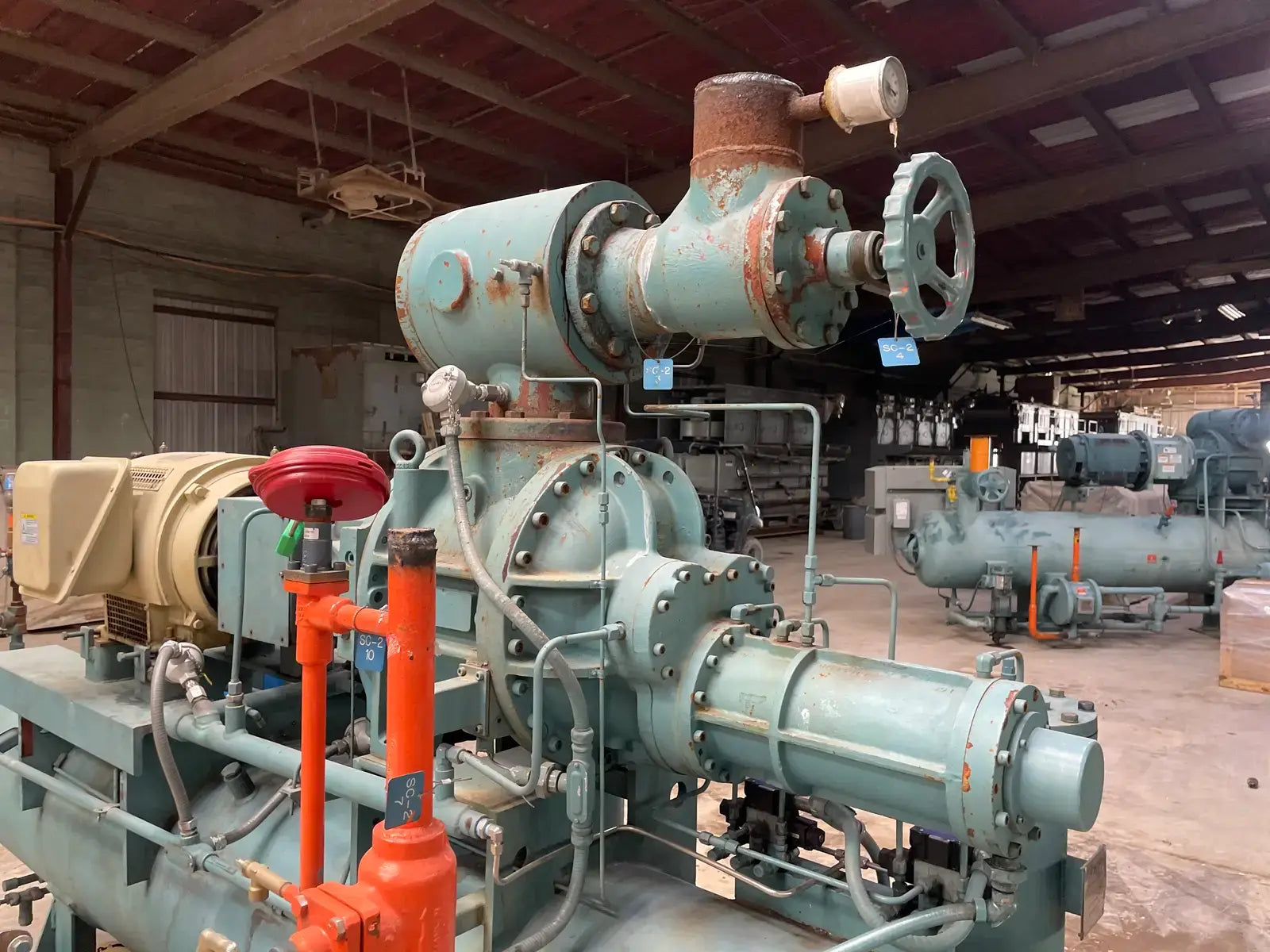 Frick Rotary Screw Compressor Package: Model: RWB-II-134, Serial No: S0492LFMFTHAA3, Max Design Pressure: 300 PSIG. Frick Sales Order: 280634-04, Refrigerant: R717, Max Speed: 3600. Frick Bare Screw Compressor: Model: TDSH193L, Serial No: 1707D, Refrigerant: NH3/R22, Volume Ratio: 2.2-5.0, Max Speed RPM: 4500, Max Design Pressure: 363 PSIG. Certified by Frick Oil Separator: National Board: 102819, MAWP: 300 PSI @ 200 F, MDMT: -20 F @ 10.2 PSI. Logix U.L. Industrial Control Panel: 115 VAC, 60 HZ, 26 Amps Max.