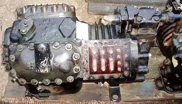 Copeland 4-Cylinder Semi-Hermetic Compressor. Model: 4R83-2000-TSK. S/N: 84B75495. Refrigerant: freon. Power supply: 208-230/460 V, 71.4/35.7 amps, 60 Hz, 3 phase. Inlets: (1) 1/4 in. dia. port. Outlets: (1) 1-1/2 in. dia. port. Overall dimensions: 29 in. L x 16 in. W x 16-1/2 in. H.