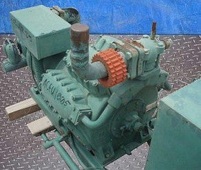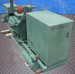 York 8-Cylinder Semi-Hermetic Compressor. Model: JS73D3A-S46-50S, S/N: NM116985, date code: RT46, power supply: 460 V, 835 LRA, 168 RLA, 60 Hz, 2 phase. Unit control power: 115 V, 60 Hz, single phase. Inlets: (1) 3 in. dia. copper suction tube. Outlets: (1) 2 in. dia. copper discharge tube. Overall dimensions: 97 in. L x 33-1/2 in. W x 44-1/2 in. H.(H12).