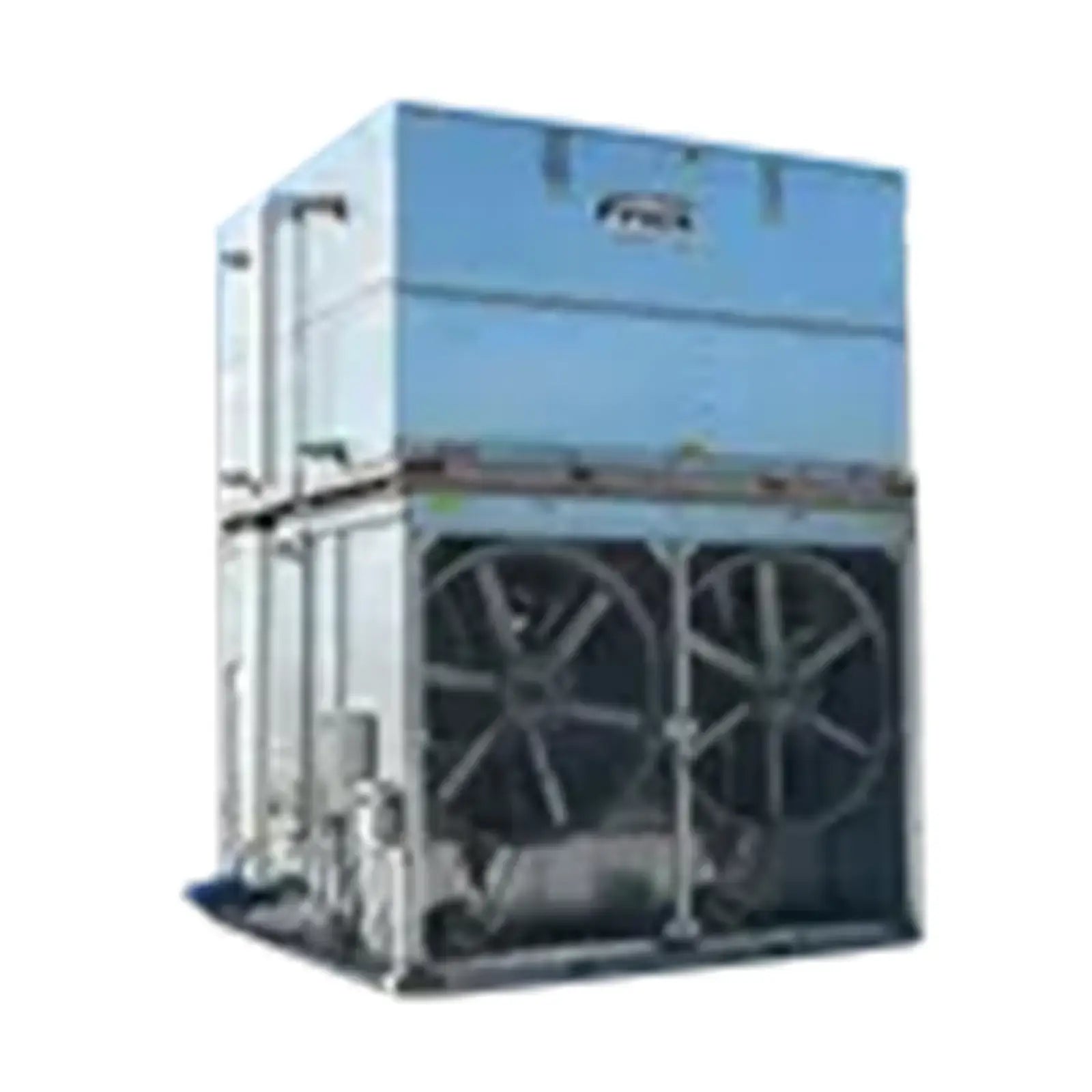 (1/2) Condensador evaporativo de contraflujo de tiro forzado Frick sin usar: 476,5 toneladas nominales. Modelo: XLP2-1224-1114. Número de serie: U110077002. Modelo cruzado BAC: VCA-1075A. Esta es una lista de sólo la mitad del sistema de torre. Estas torres constan de dos secciones de serpentín y dos de ventilador que se pueden utilizar de forma independiente a la mitad de su capacidad. La mitad de esta torre (una sección de serpentín y una sección de ventilador) ya se ha vendido. Esta oferta incluye una pasarela y una escalera. Divida las siguientes clasificaciones por 2 al dimensionar esta unidad: Capacidad nominal: 11,440 MBH (953 toneladas con refrigerante R-22) basado en una temperatura de condensación de 95º F con un bulbo húmedo entrante de 76.90º F. Clasificación de tonelaje usando refrigerante de amoníaco: 762 TR. HP del ventilador: 40. Tasa de flujo de aire: 134,600 CFM. Motor de bomba: (2) 5 HP. Peso de envío: 42,590 lbs (17,340 lbs en la sección más pesada). Dimensiones totales: (2) secciones de ventilador: 13 pies 2 pulgadas de largo x 11 pies 10 pulgadas de ancho x 10 pies de alto (cada una), (2) secciones de serpentín: 14 pies de largo x 11 pies 11 pulgadas. Ancho x 8 pies de alto (cada uno), (1) sección de estructura: 14 pies 4 pulgadas de largo x 8 pies 4 pulgadas de ancho x 8 pies 4 pulgadas de alto (cada uno). (ACN1203a)