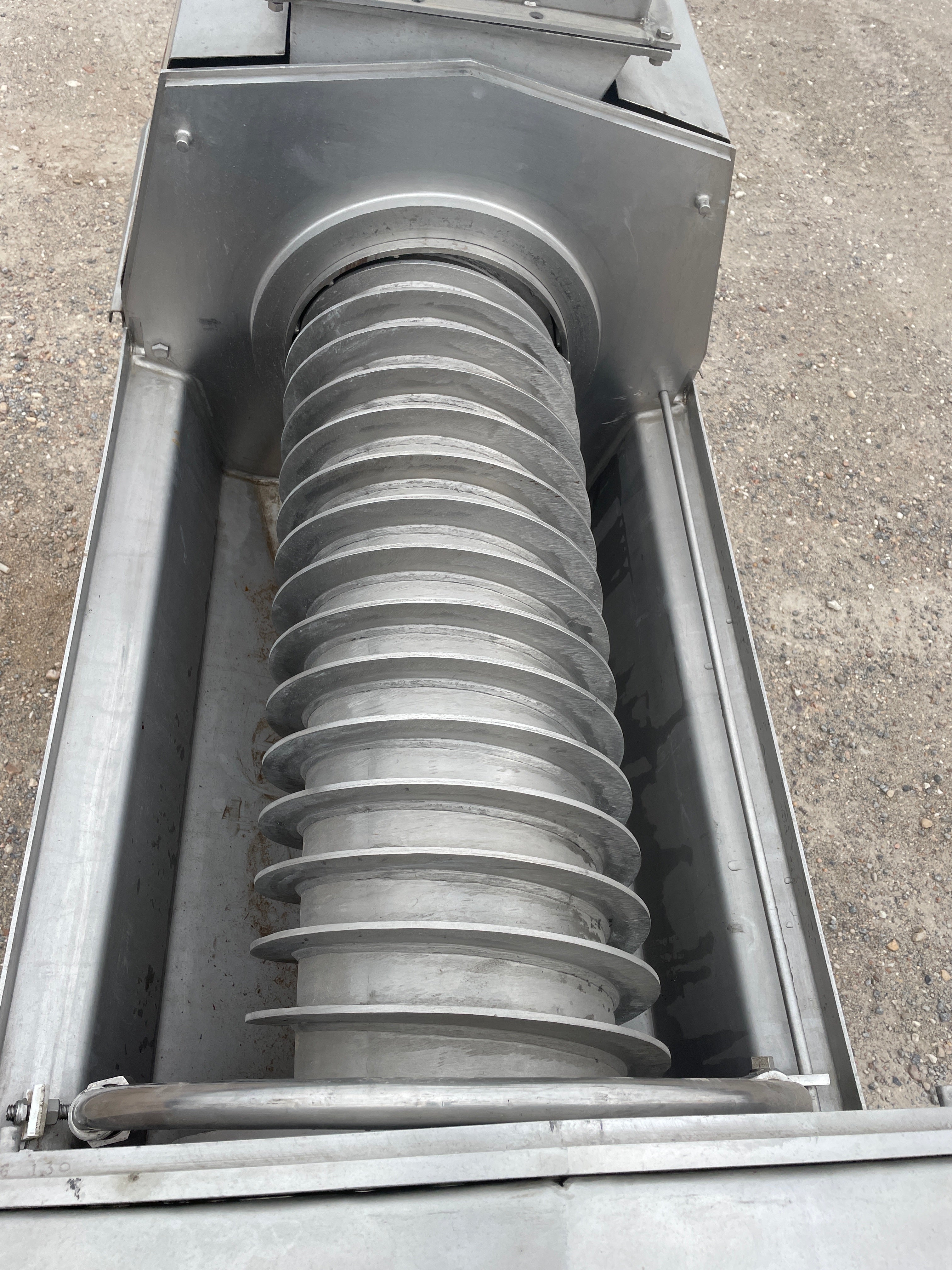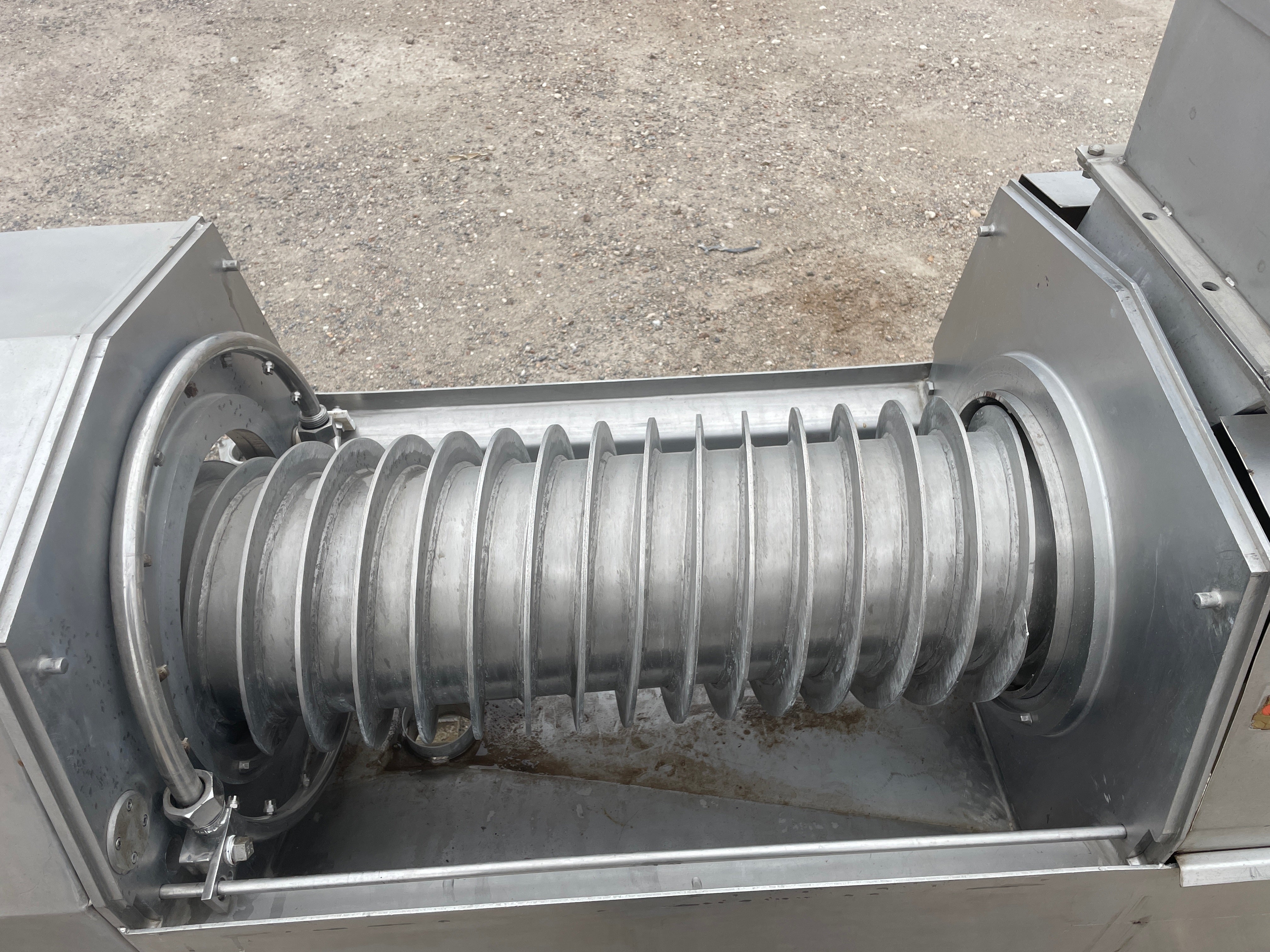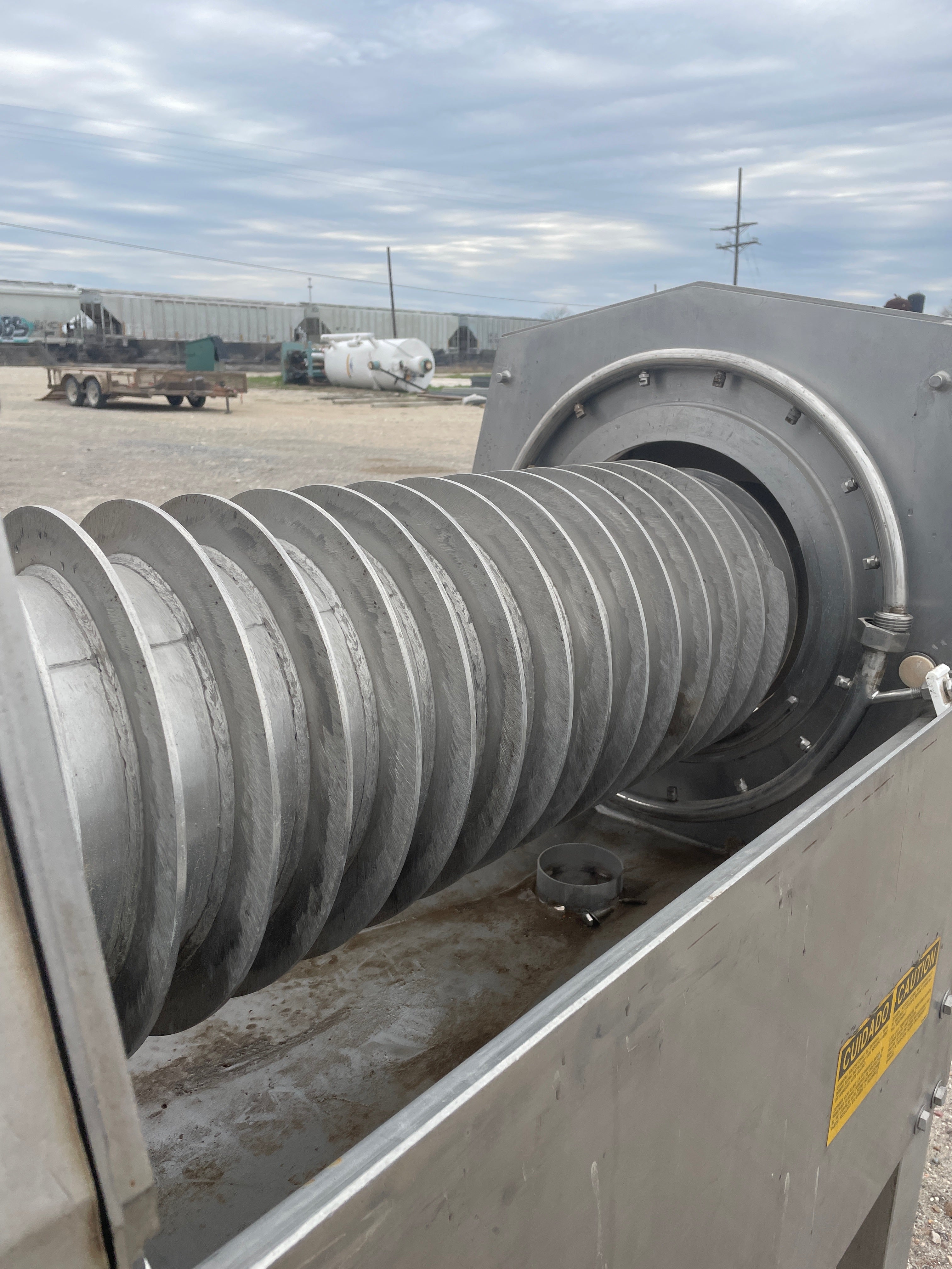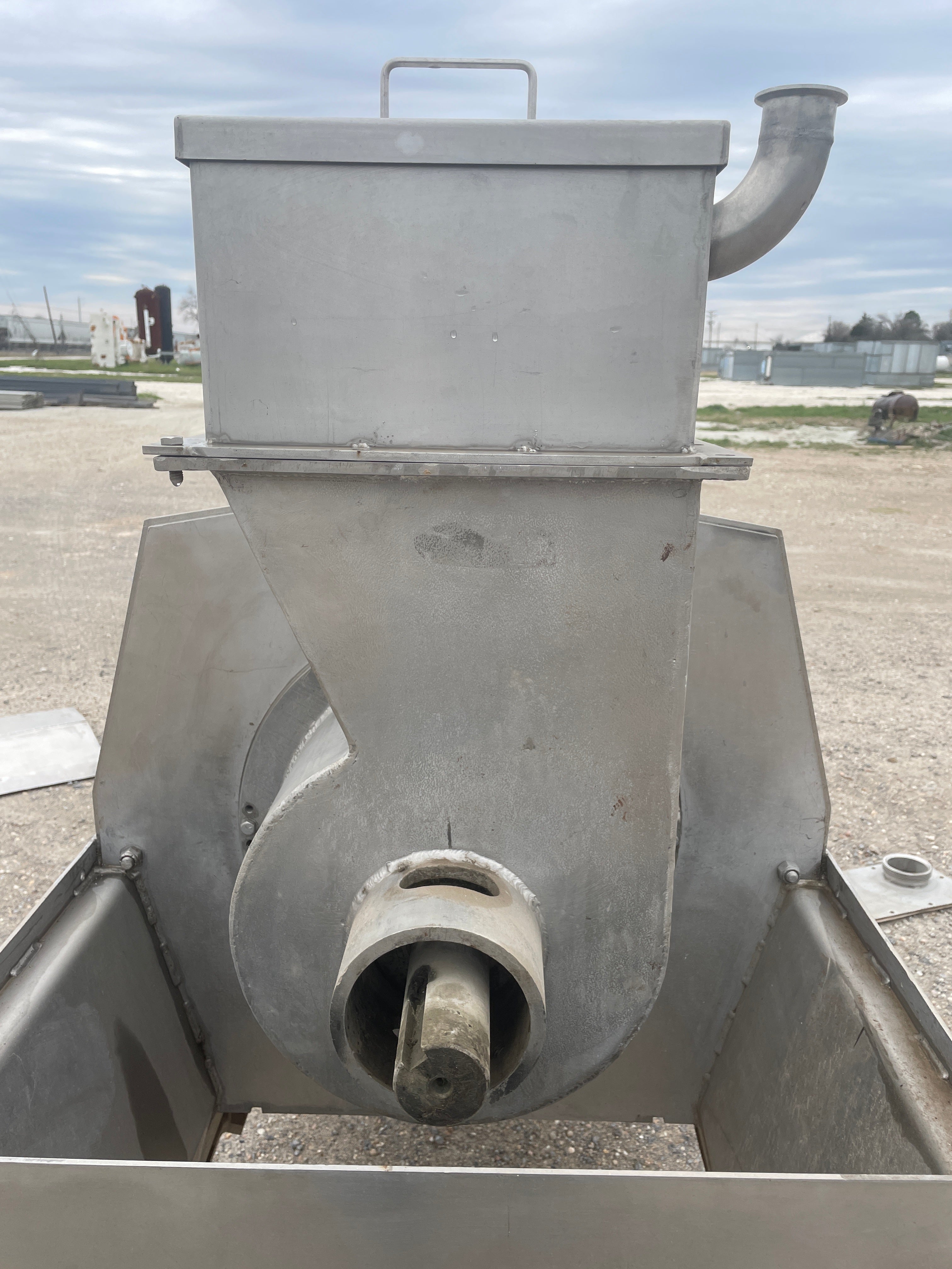 Acabadora de tornillos de acero inoxidable de FMC Technologies (JBT FoodTech). Modelo: UCF200A. Diámetro de la polea: impulsor de 7-3/8 pulgadas, impulsado de 25-1/2 pulgadas. Esta unidad tiene capacidades para una gama completa de reducción de frutas y verduras que incluye: recuperación de sólidos solubles (lavado de pulpa), lavado de núcleos, eliminación de huesos. de pulpa de fruta deshuesada, separación de semillas y separación de material particulado extraño de pulpa en puré. Entrada: (1) 4 pulgadas Salida: (1) 4 pulgadas Dimensiones totales: L. 6 pies 4-1/2 pulgadas X W. 2 pies 5-5/8 pulgadas X H. 5 pies 7-1/2 pulgadas (ACN967a-85).