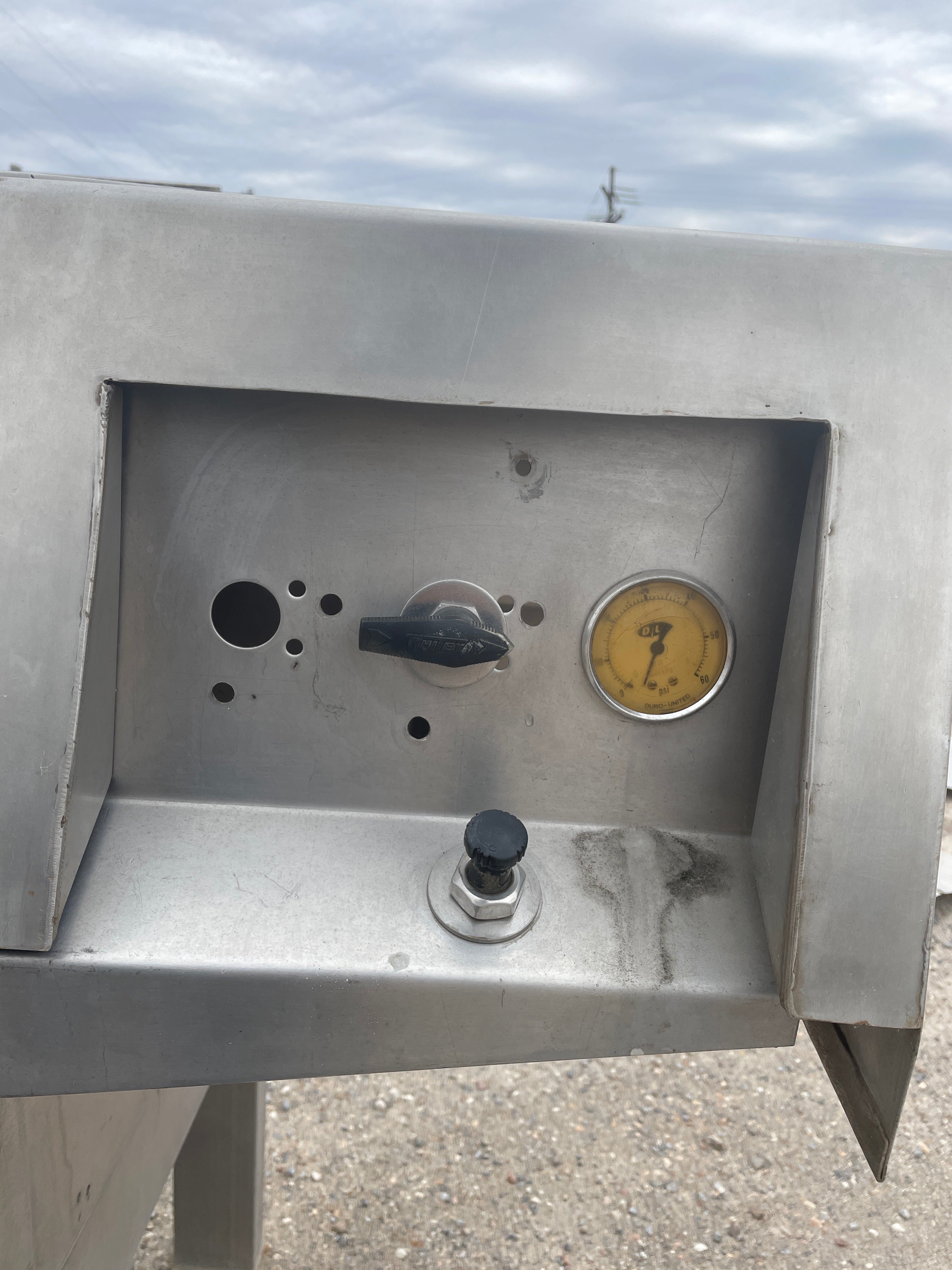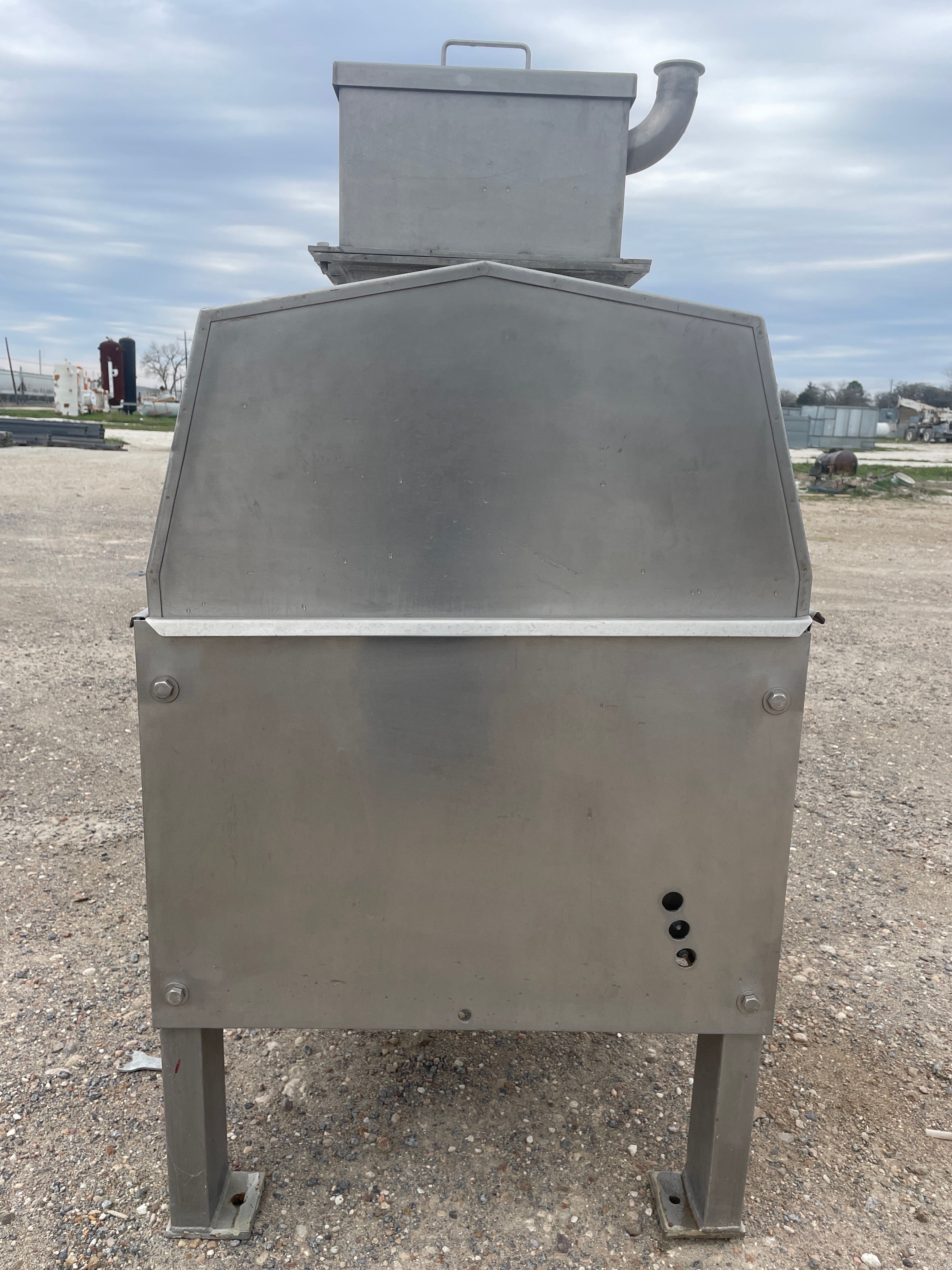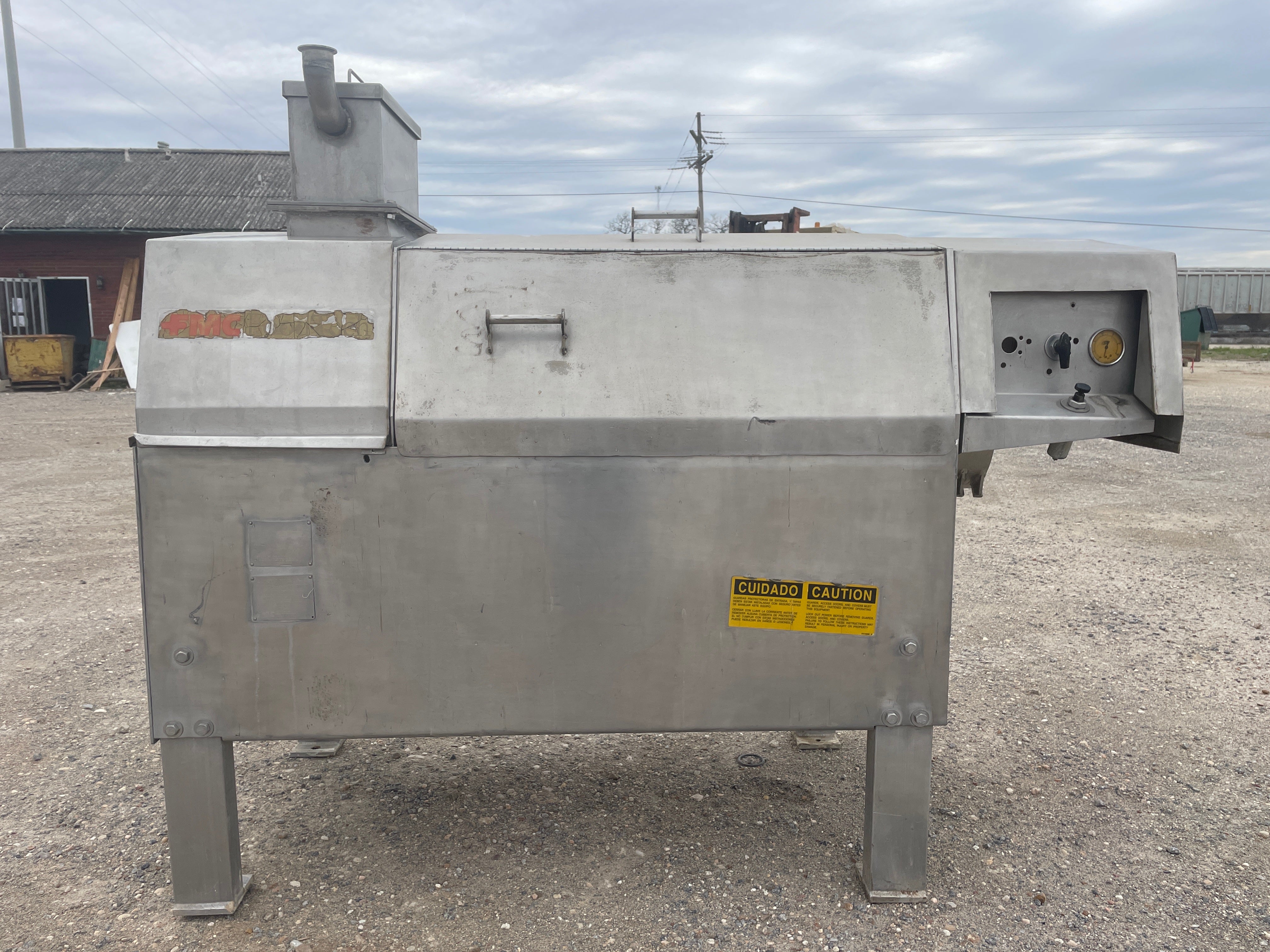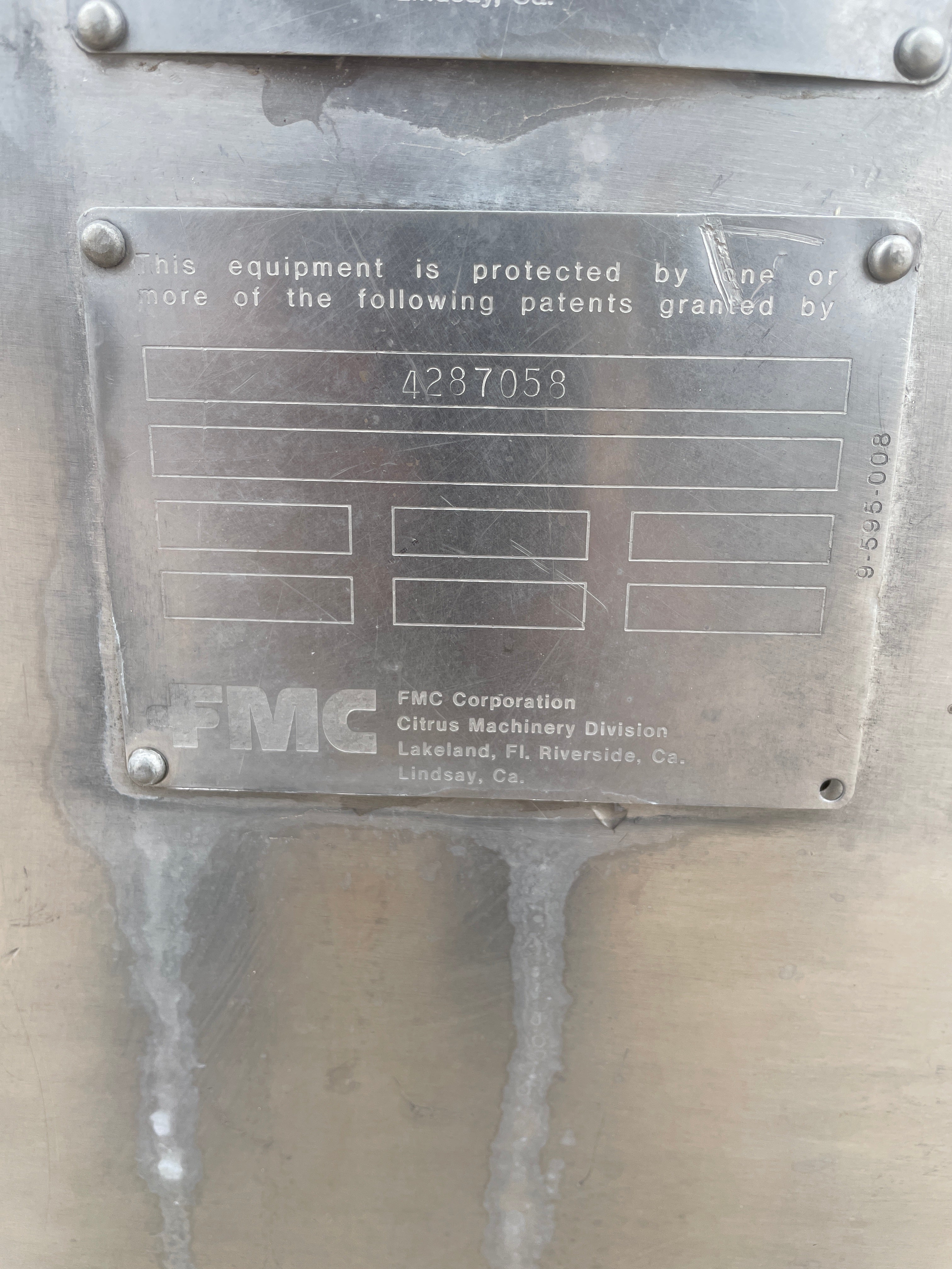 Acabadora de tornillos de acero inoxidable de FMC Technologies (JBT FoodTech). Modelo: UCF200A. Diámetro de la polea: impulsor de 7-3/8 pulgadas, impulsado de 25-1/2 pulgadas. Esta unidad tiene capacidades para una gama completa de reducción de frutas y verduras que incluye: recuperación de sólidos solubles (lavado de pulpa), lavado de núcleos, eliminación de huesos. de pulpa de fruta deshuesada, separación de semillas y separación de material particulado extraño de pulpa en puré. Entrada: (1) 4 pulgadas Salida: (1) 4 pulgadas Dimensiones totales: L. 6 pies 4-1/2 pulgadas X W. 2 pies 5-5/8 pulgadas X H. 5 pies 7-1/2 pulgadas (ACN967a-85).