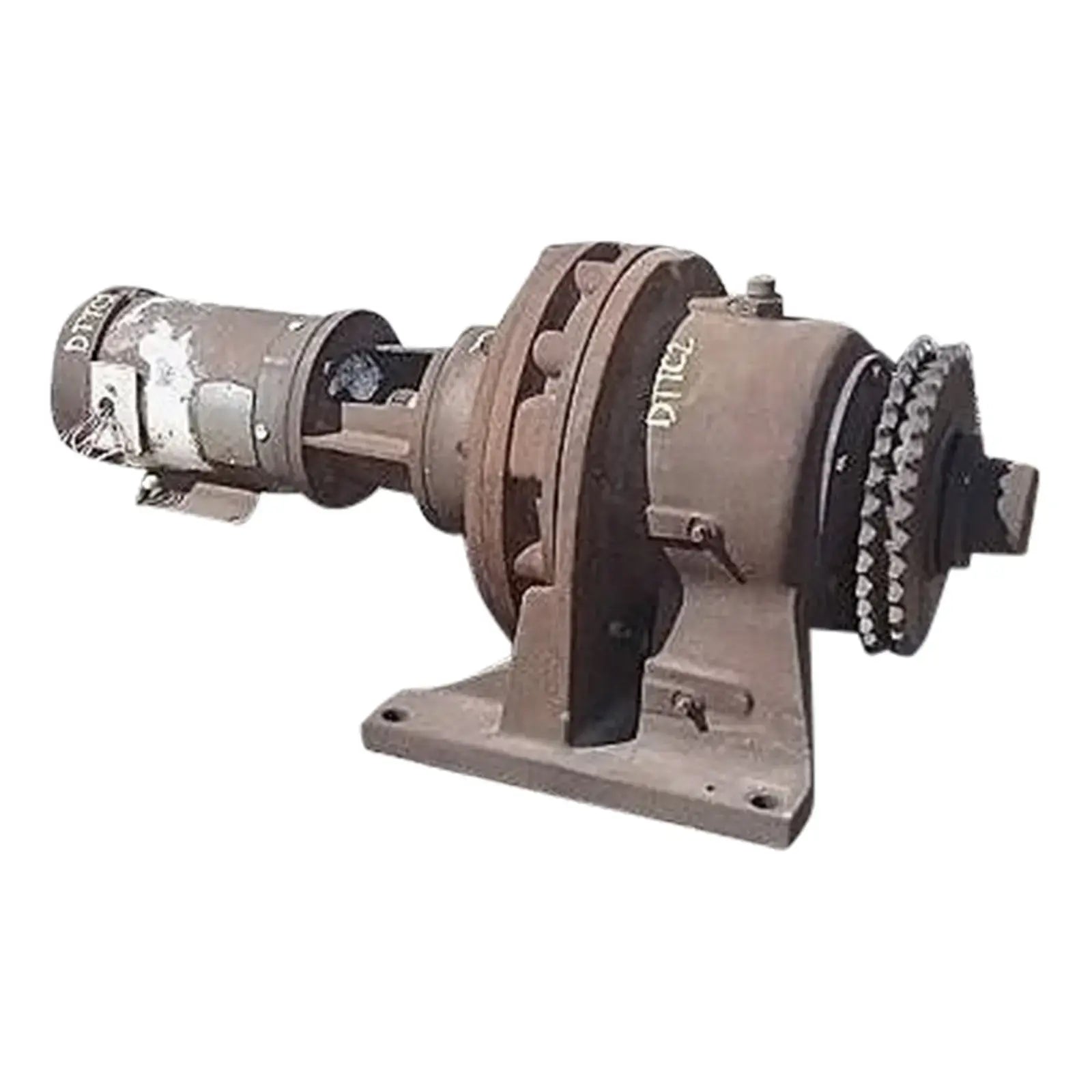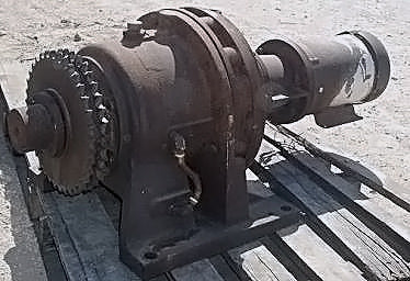 Accionamiento en línea Sumitomo SM-Cyclo. Diámetro del eje: 3-9/16 pulg. Número de piñones: 2. Diámetro de piñón: 1 pie. Número de dientes: 36. Paso: 1 pulg. Motor eléctrico Baldor, 5 hp, 1750 rpm, 230/460 V, 13,4/ 6,7 amperios, 60 Hz, trifásico. Dimensiones totales: 3 pies 8 pulgadas de largo x 1 pie 8-1/2 pulgadas de ancho x 1 pie 5-1/2 pulgadas de alto.