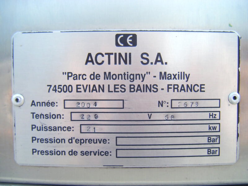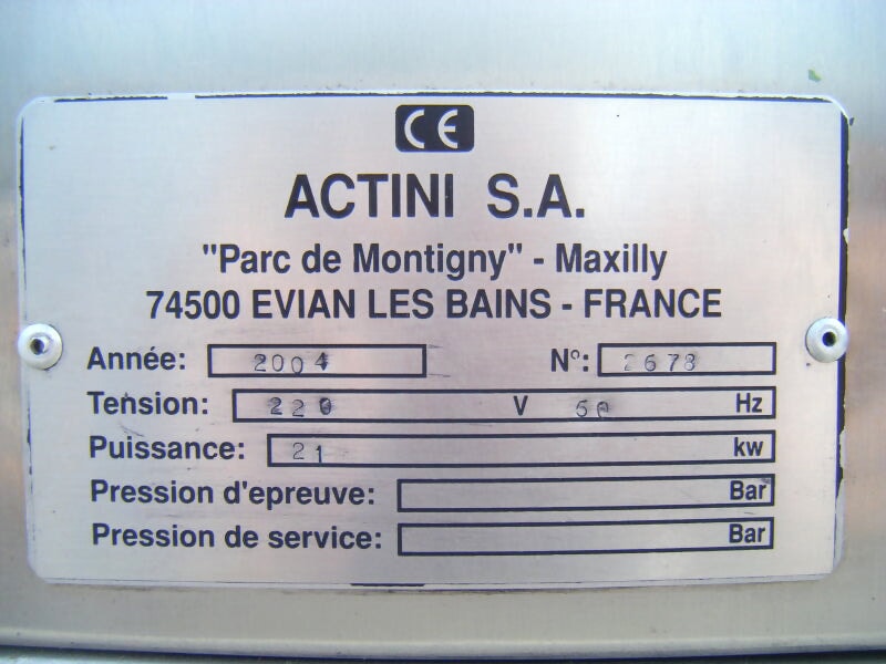 Actini Agrolactor. Modelo 250. Capacidad: 250 litros/hr. (66 galones/hr.) usando aproximadamente 35 kg de frijoles secos. Materiales de construcción: acero inoxidable. El Agrolactor 250 es una planta de producción completa que permite la extracción continua de leche directamente de la soja seca con la capacidad de producir un producto refrigerado y pasteurizado con consistencias en sabor, olor, cualidades bacteriológicas y dietéticas. Los subproductos de la producción incluyen Okara (pulpa de soja), que puede reciclarse para convertirla en harina para pan o usarse directamente como alimento para animales, y las opciones incluyen la incorporación de sabor antes de enfriar. Dimensiones totales: 7 pies 1 pulg. de largo x 4 pies ½ pulg. de ancho x 5 pies 6 pulg. de alto (ACN700).
