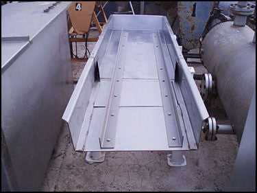 Alimentador de accionamiento magnético FMC Syntron. Modelo: FH-22ADT. Dimensiones de la bandeja: 5 pies 9 pulgadas de largo x 1 pie 6 pulgadas de ancho x 5 pulgadas de alto. (2) guías de hierro en ángulo de 5 pies 4 pulgadas de largo x 2 pulgadas de ancho. Requisitos eléctricos: 460 V, 5 amperios, 60 Hz. Dimensiones totales: 6 pies 10 pulgadas de largo x 2 pies 5 pulgadas de ancho x 3 pies 3 pulgadas. H.(H17)(ANC120).