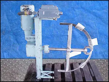 Agitador de caldera de raspado lateral y fondo hemisférico. Tamaño para una tetera de 50 galones. Cuenta con un agitador construido en acero inoxidable con 1-1/2 pulg. de diámetro. Eje y raspadores de plástico para mezclar simultáneamente en el fondo y los lados del hervidor. Dimensiones del agitador: 29 pulgadas de largo x 3 pulgadas de ancho x 21 pulgadas de alto. Dimensiones del eje: 1-1/2 pulgadas de diámetro x 20 pulgadas de alto. Dimensiones del puente: 3 pies 8 pulgadas de largo x 10 pulgadas de ancho Dimensiones de la hoja: 12 pulgadas de largo x 3 pulgadas de alto. Dimensión del raspador: 4 pulgadas x 4 pulgadas. Motor eléctrico electrónico, 1 hp. Sterling Electric Drive, relación: 60, rpm fuera: 29 (final). Dimensiones totales: 3 pies 6 pulgadas de largo x 11 pulgadas de ancho x 3 pies 5 pulgadas.