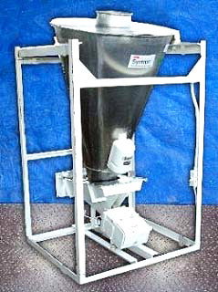 1992 Agitador vibratorio de cono Syntron FMC. Shaker cuenta con un diámetro de 31 pulgadas. x 45 pulg. H. Tolva cónica con tapa adjunta. El producto sale a través de un conducto de 28 pulgadas de largo x 10 pulgadas de ancho x 4 pulgadas de alto. Entradas/salidas: (1) 8 pulg. de diámetro. entrada central y (1) 6-1/2 pulg. de diámetro. salida central. Motor vibrador magnético Syntron, modelo: V-20. N/S EE11822115 V, 2,0 amperios, 60 Hz. Alimentador magnético Syntron, Modelo: F-152 A. S/N: L69952115 V, 2,5 amperios, 60 Hz. El equipo está montado en el marco. Dimensiones totales: 36 pulgadas de largo x 31 pulgadas de ancho x 61 pulgadas de alto.