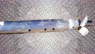 Aireador de estanque. Motor WEG: Modelo: 10018EP3405TC, 100 hp, 1.775 rpm, 208-230/460 V, 60 Hz, trifásico. Hélice de 12 pulgadas de diámetro con 4 palas. Dimensiones totales: 95 pulgadas de largo x 27 pulgadas de ancho x 24 pulgadas de alto.