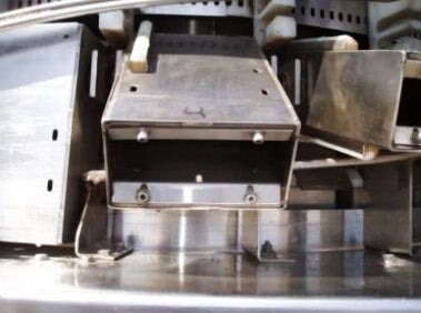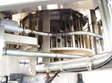 1995 Alimentador centrífugo Hoppmann FRS-60 SS. Modelo: FRS 60 SS. S/N: 25517. El FRS-60 de Hoppmann está diseñado específicamente para alimentar una amplia gama de botellas y piezas grandes. La velocidad de entrega varía de moderada a alta según las características de la pieza. El FRS-60 está diseñado para interactuar con prealimentadores Hoppmann, transportadores de acumulación, sistemas de ensamblaje y otros equipos posteriores. Los clasificadores de botellas de acumulación levantan y disponen en vieiras. Un calificador de cinturón elimina las botellas que no se encuentran entre las vieiras. El alimentador de biberones alimenta 24 oz y 36 oz. botellas hasta (30) bolsillos de 5-1/2 pulgadas de largo x 3 pulgadas de ancho x 9 pulgadas de alto. Motor eléctrico Reliance, 1 hp, 1725 rpm, 208-230/460 V, 2,8-2,8/1,4 amperios, 60 Hz, trifásico. Motor Boston serie 100, relación 60, 28,75 rpm (final), 1300 lb-in. Entradas: (1) entrada de 23 pulgadas de largo x 23 pulgadas de ancho. Salidas: (1) descarga de 2 pulgadas de ancho x 9 pulgadas de alto. Dimensiones totales: 108 pulgadas de largo x 96 pulgadas de ancho x 96 pulgadas de alto (H17).