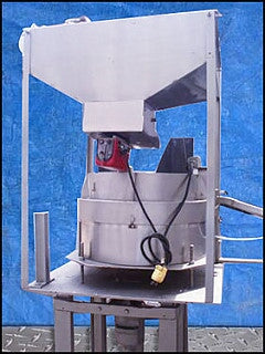 Alimentador vibratorio de tapas de cuenco. Ancho máximo del producto: 1-1/2 pulg. (38 mm). Requisitos de alimentación: 120 V, 60 Hz, monofásico. La posición final del conducto de cierre está a 41 pulgadas de altura desde el suelo. La unidad tiene un ajustador de altura del actuador. Dimensiones del recipiente: 1 pie 5-1/4 pulg. de diámetro. x 4-5/8 pulgadas de alto. Dimensiones de la tolva del embudo con parte superior abierta: 2 pies 2 pulgadas de largo x 2 pies 2 pulgadas de ancho x 1 pie 3 pulgadas de alto. Salida: 11-1/2 pulgadas de largo x 8-1/8 pulg. de ancho x 3 pulg. de alto (conducto al recipiente de alimentación). Dimensiones totales: 4 pies 4 pulgadas de largo x 2 pies 3 pulgadas de ancho x 6 pies 10 pulgadas de alto.