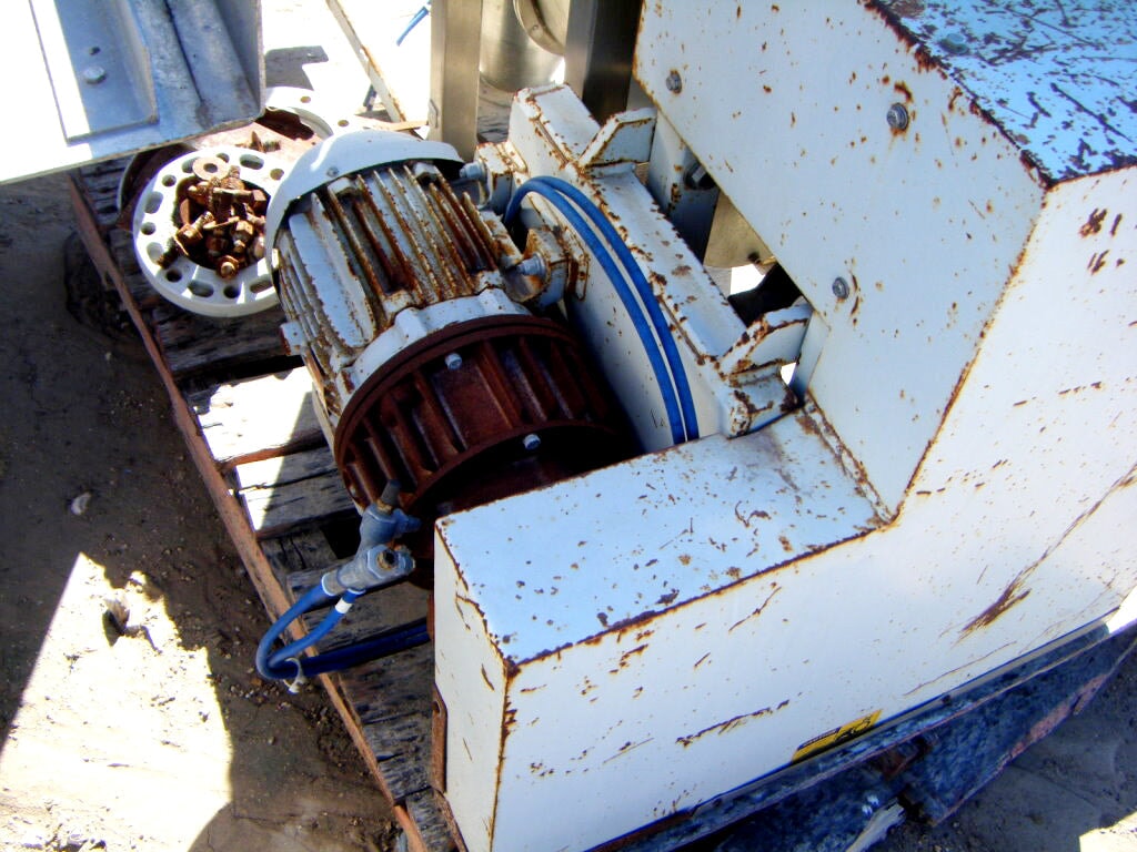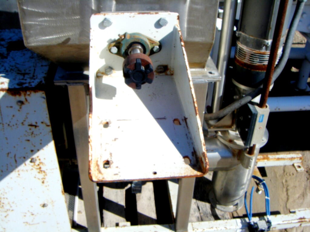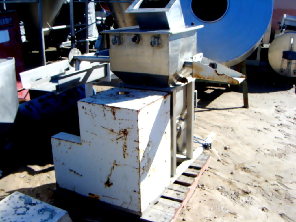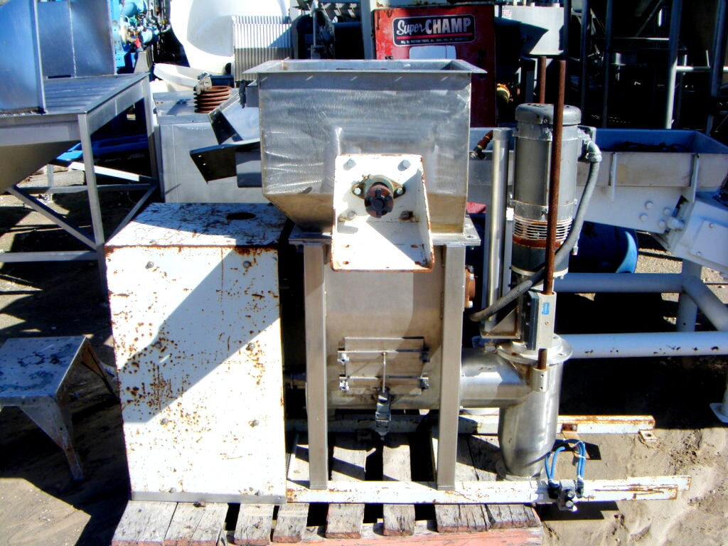 Alimentador de tornillo volumétrico. (2) Tornillos sin fin. (1) Batidora de cinta. Sinfín de tornillo inferior: 2 pulg. de diámetro. x 18-1/2 pulg. L. Motor Underwriter Laboratories, 1-1/2 hp, 1725 rpm, 575 V, 2 amperios. Sinfín de tornillo superior: 7 pulg. de diámetro. x 16 pulg. L. Motor WEG, 5 hp, 1740 rpm, 575 V, 5.6 amperios, 60 Hz. Dodge Gear Drive, relación 15,55, 112 rpm (final). Licuadora de cinta: 14 pulg. de diámetro. x 16 pulg. L. Entradas: (1) alimentación de 10 pulg. x 10 pulg. con (12) orificios para pernos de 1/4 pulg. Salidas: (1) Conexión NPT de 2 pulg. Dimensiones totales: 67 pulgadas de largo x 65 pulgadas de ancho x 61 pulgadas de alto (H14).