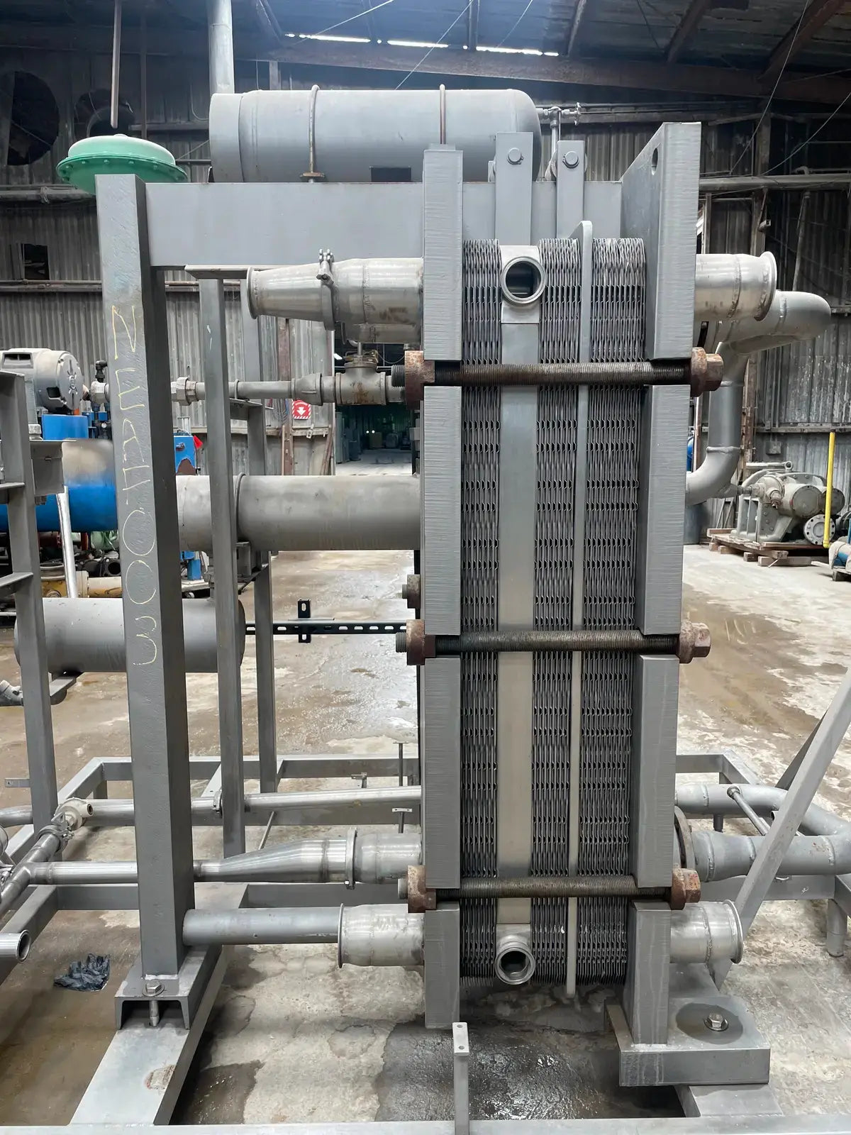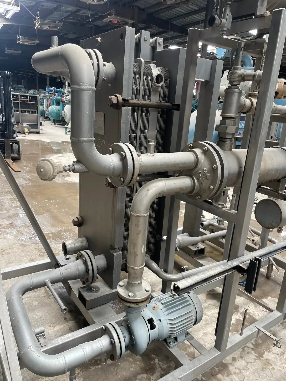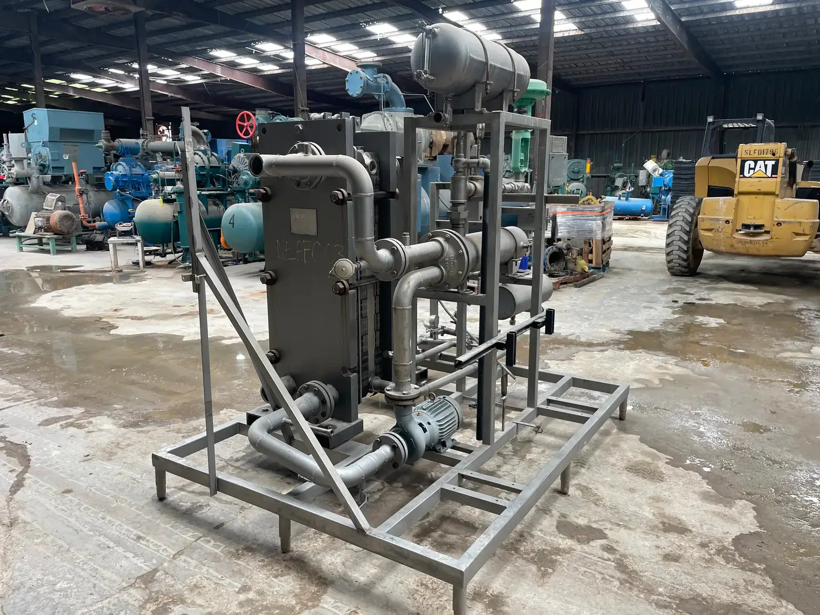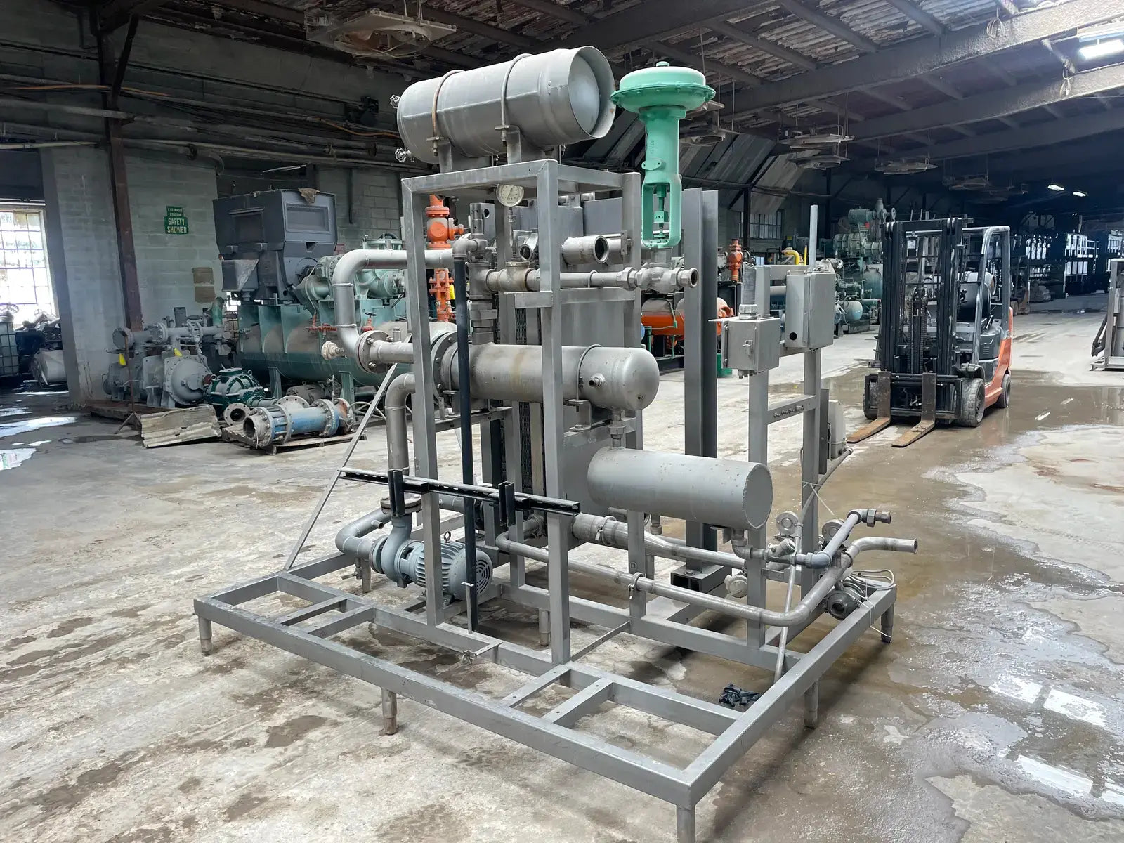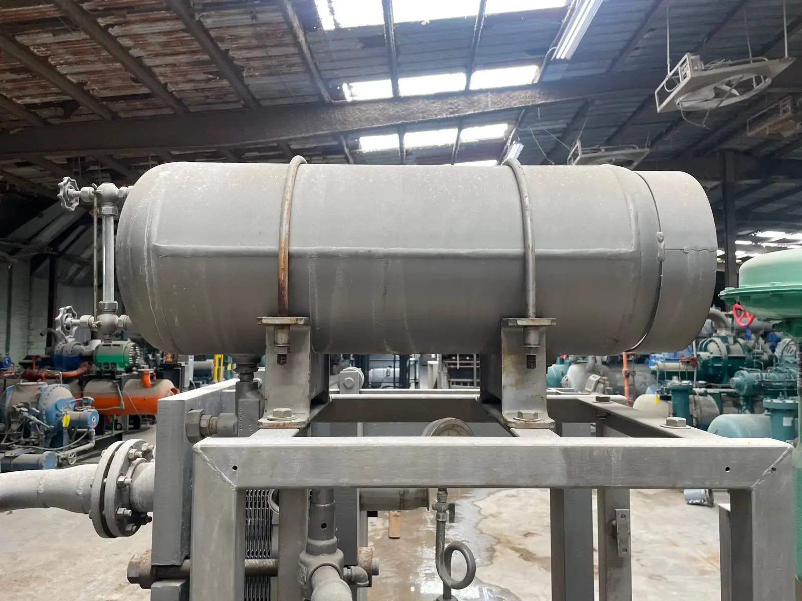 APV SR6 HTST. Modelo: SR6GLM. S/N: 25059. Número de placas: 51. Superficie de transferencia de calor: aprox. 325.125 pies cuadrados. Bomba centrífuga de agua caliente con motor. Sistema de caudalímetro Danfoss Magflo, Modelo: MAG1100 Food, S/N: 141702T280, tamaño DN: 50, temperatura del fluido: -20 a 150 °C, revestimiento: ceRam Industriesic, fuente de alimentación: 115/230 Vac, 50-60 Hz. Actuador de válvula Fisher, tipo: 667, S/N: CN 841808, tamaño: 34, recorrido: 3/4 pulg., rango de operación: 3-15 psi, clasificación: 250/100 °F, tapón: 316SS, vástago: 316SS , asiento: 316SS, carrocería: bronce. 1990 Tanque de presión Wessels Co.: 10 galones, MAWP: 150 psi a 450 °F, MDMT: -20 °F a 150 psi. Entradas: (1) 1-1/2 pulg. de diámetro. NPT, (2) 2-1/2 pulg. de diámetro. Línea S, (1) 4 pulg. de diámetro. Línea S. Salidas: (1) 1-1/4 pulg. de diámetro. bisel con hexágono, (3) 2-1/2 pulg. de diámetro. Línea S, (1) 3 pulg. de diámetro. Línea S, (1) 4 pulg. de diámetro. Línea S. Dimensiones totales: 98 pulgadas de largo x 72 pulgadas de ancho x 95 pulgadas de alto.