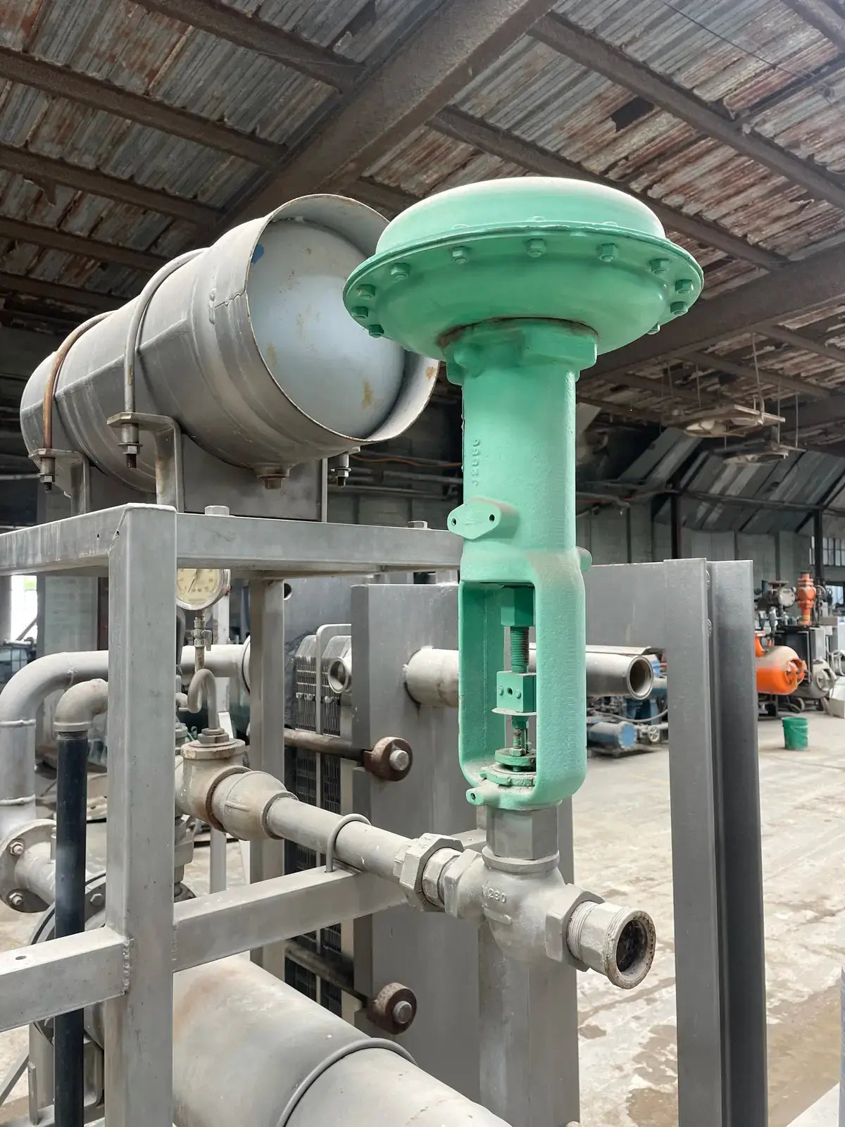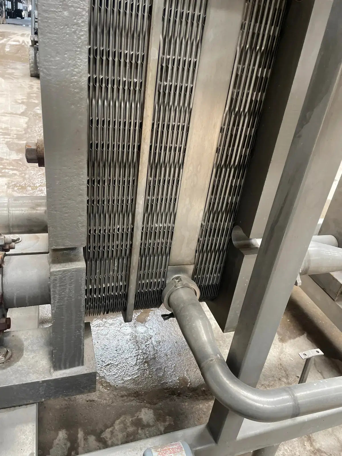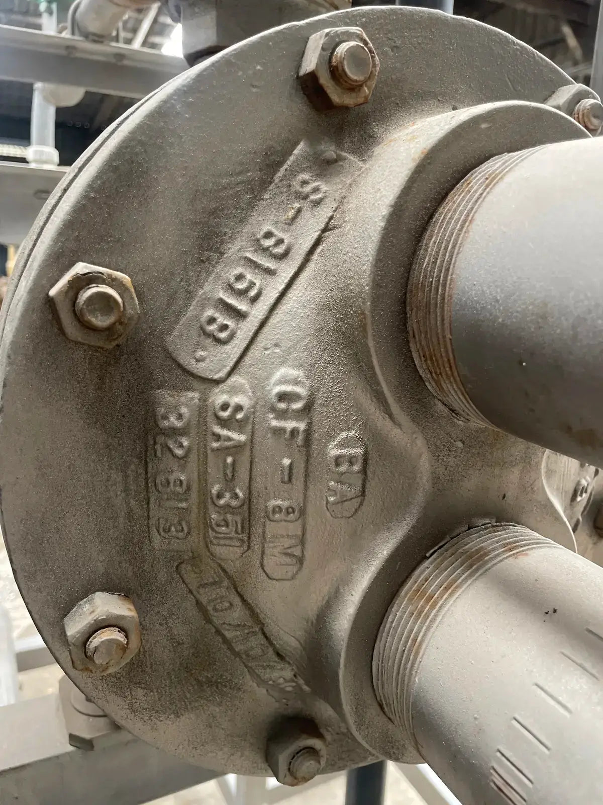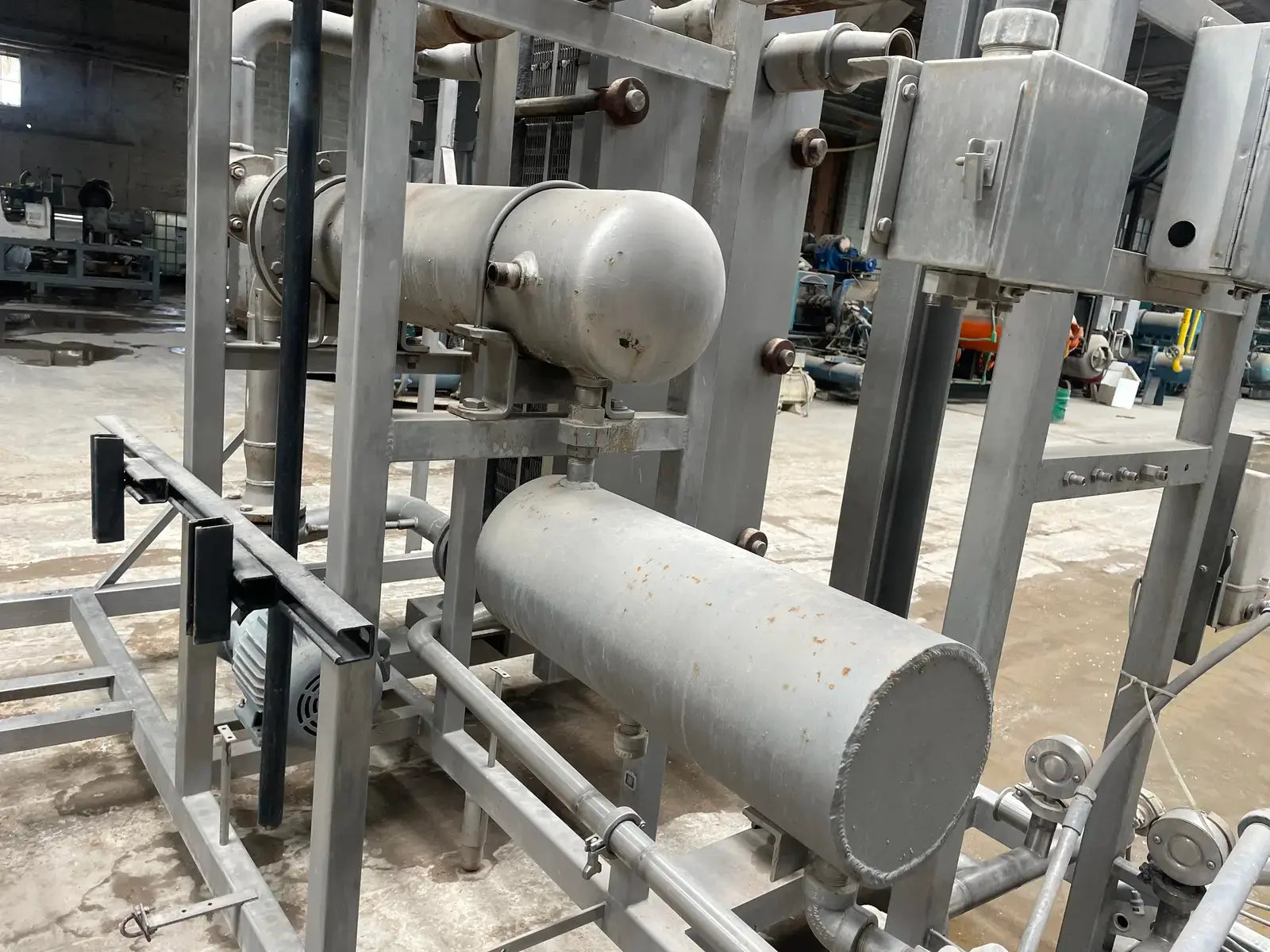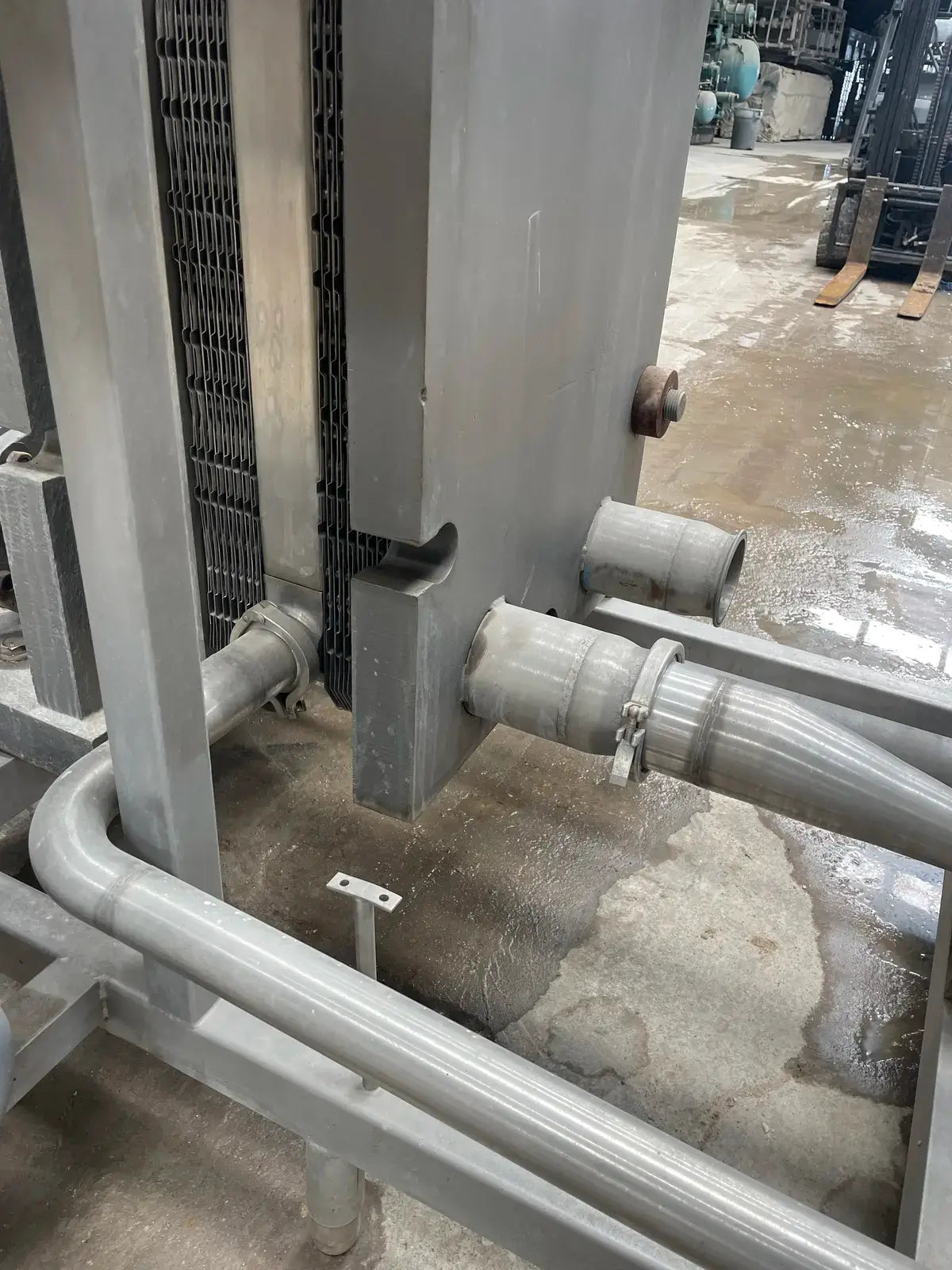 APV SR6 HTST. Modelo: SR6GLM. S/N: 25059. Número de placas: 51. Superficie de transferencia de calor: aprox. 325.125 pies cuadrados. Bomba centrífuga de agua caliente con motor. Sistema de caudalímetro Danfoss Magflo, Modelo: MAG1100 Food, S/N: 141702T280, tamaño DN: 50, temperatura del fluido: -20 a 150 °C, revestimiento: ceRam Industriesic, fuente de alimentación: 115/230 Vac, 50-60 Hz. Actuador de válvula Fisher, tipo: 667, S/N: CN 841808, tamaño: 34, recorrido: 3/4 pulg., rango de operación: 3-15 psi, clasificación: 250/100 °F, tapón: 316SS, vástago: 316SS , asiento: 316SS, carrocería: bronce. 1990 Tanque de presión Wessels Co.: 10 galones, MAWP: 150 psi a 450 °F, MDMT: -20 °F a 150 psi. Entradas: (1) 1-1/2 pulg. de diámetro. NPT, (2) 2-1/2 pulg. de diámetro. Línea S, (1) 4 pulg. de diámetro. Línea S. Salidas: (1) 1-1/4 pulg. de diámetro. bisel con hexágono, (3) 2-1/2 pulg. de diámetro. Línea S, (1) 3 pulg. de diámetro. Línea S, (1) 4 pulg. de diámetro. Línea S. Dimensiones totales: 98 pulgadas de largo x 72 pulgadas de ancho x 95 pulgadas de alto.