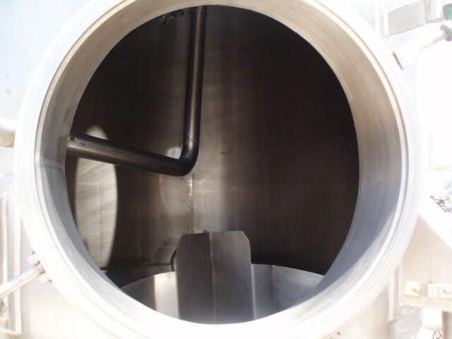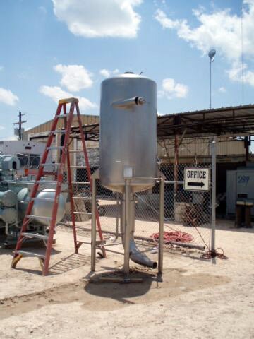 Saborizante Cherry Burrell Aro-Vac - 285 galones. Modelo: AVC-SH. S/N: 824. Dimensiones interiores de pared recta: 3 pies de diámetro. x 5 pies 5 pulgadas de alto. Diámetro de la entrada: 1 pie 4 pulgadas. Dimensiones del tubo encamisado: 9 pulgadas de diámetro. x 1 pie 8 pulg. H. Entradas: (1) 1-1/2 pulg. de diámetro. puerto de bola de pulverización, (1) 3/8 pulg. de diámetro. Puerto de medios NPT. Salidas: (1) 3/8 pulg. de diámetro. descarga de medios, (1) 2 pulgadas de diámetro. Puerto de succión S-line, (1) 4 pulg. de diámetro. Puerto de drenaje S-line. Dimensiones totales: 3 pies 11 pulgadas de largo x 3 pies 10 pulgadas de ancho x 10 pies 4 pulgadas de alto (HB1).