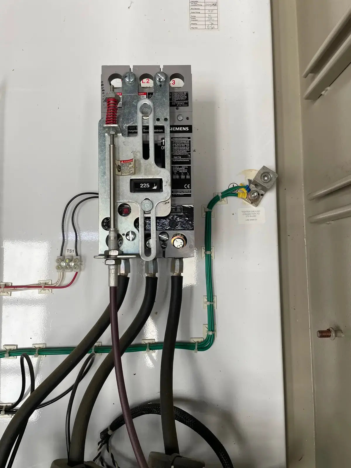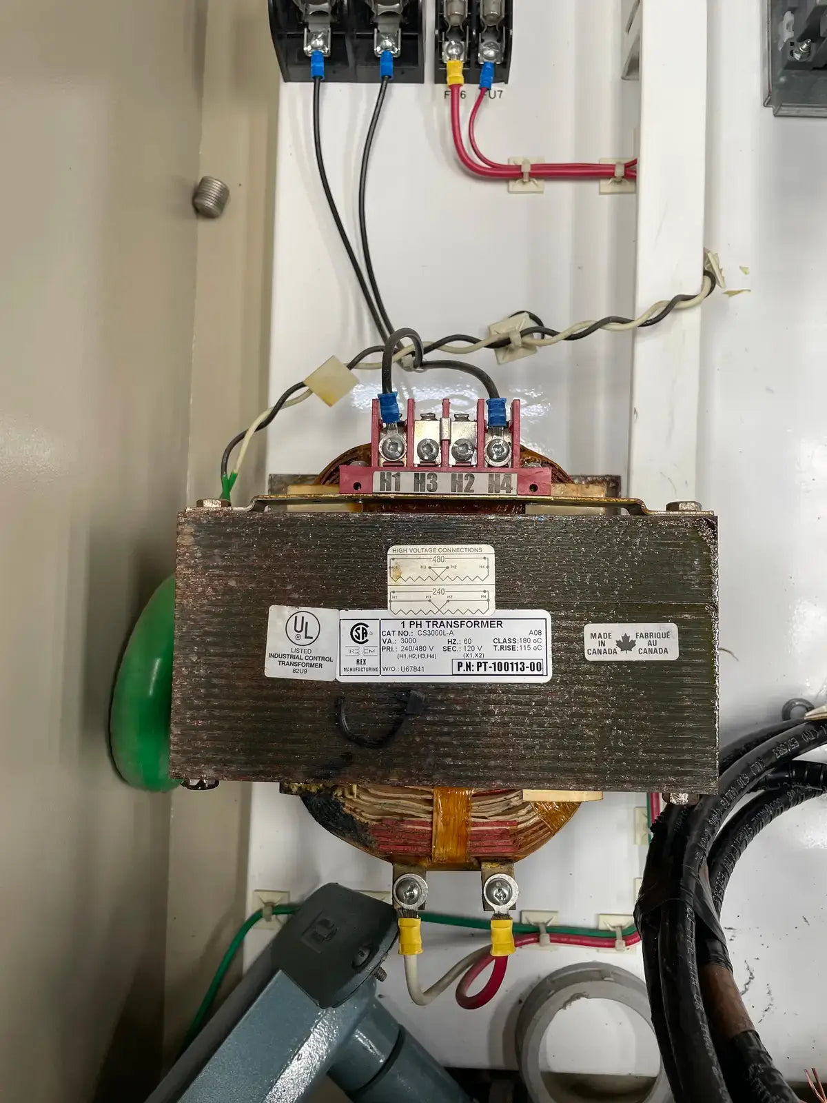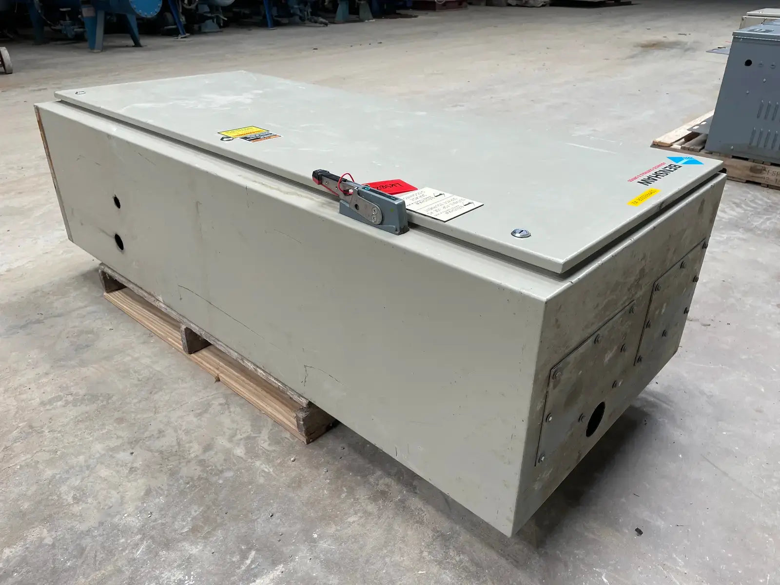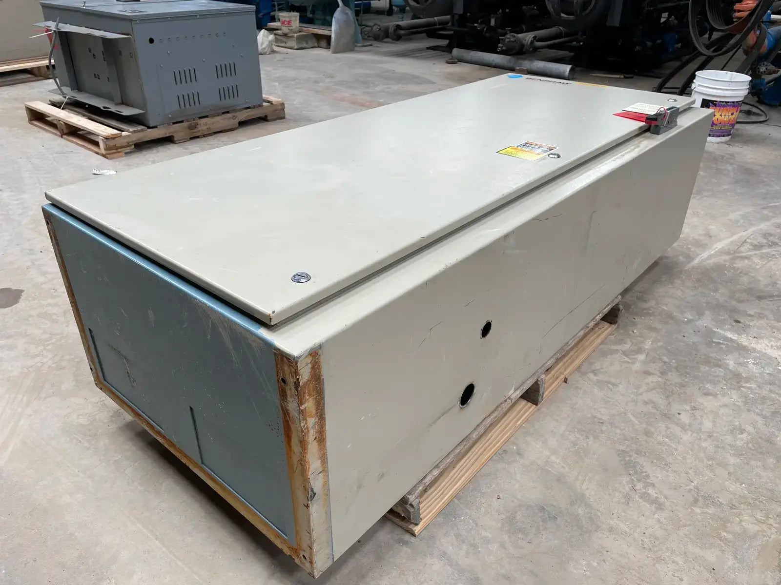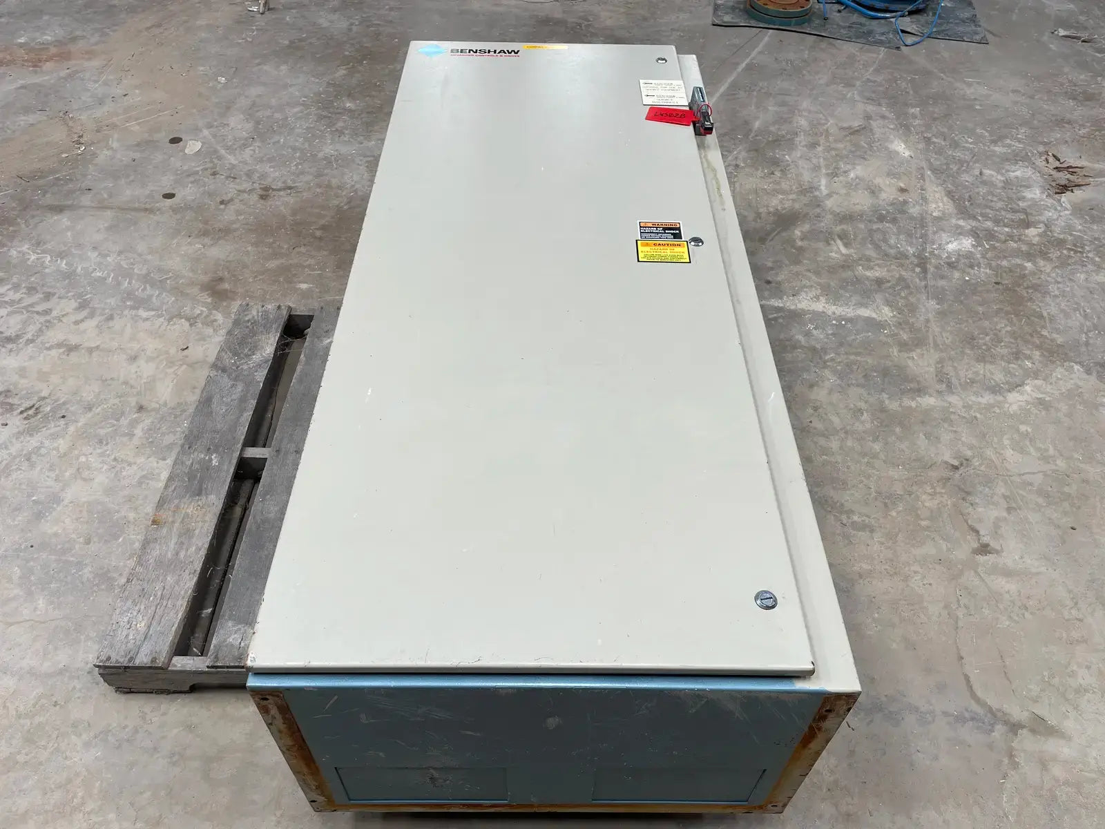 Arrancador de motor de compresor de tornillo con controles y accionamientos avanzados de Benshaw. Número de serie: S200800448-1-1. Número de pieza: RB21H100460H01CBMMS. Voltaje de control: 100 V. Fuente de alimentación - Motor más grande: HP: 100, AMPS: 124, Voltios: 480, Hz: 60, Ph: 3. Amperios totales del sistema: 136,4