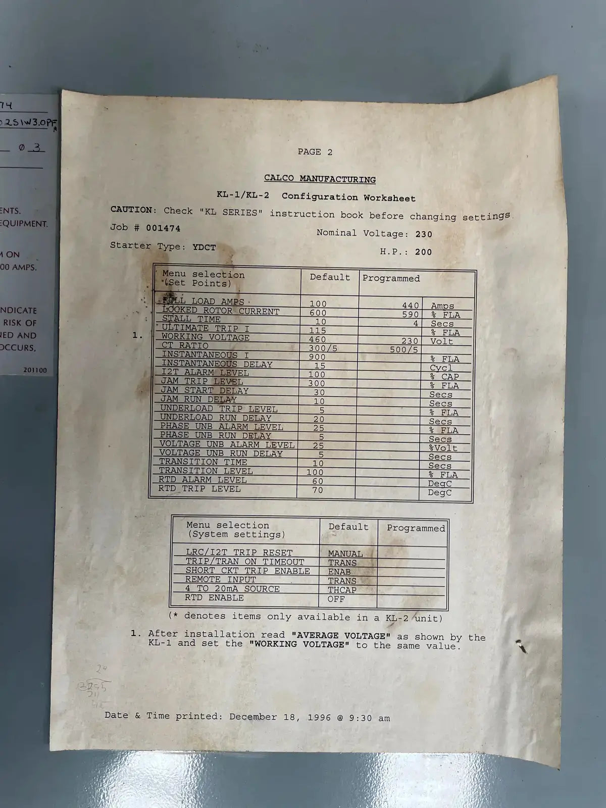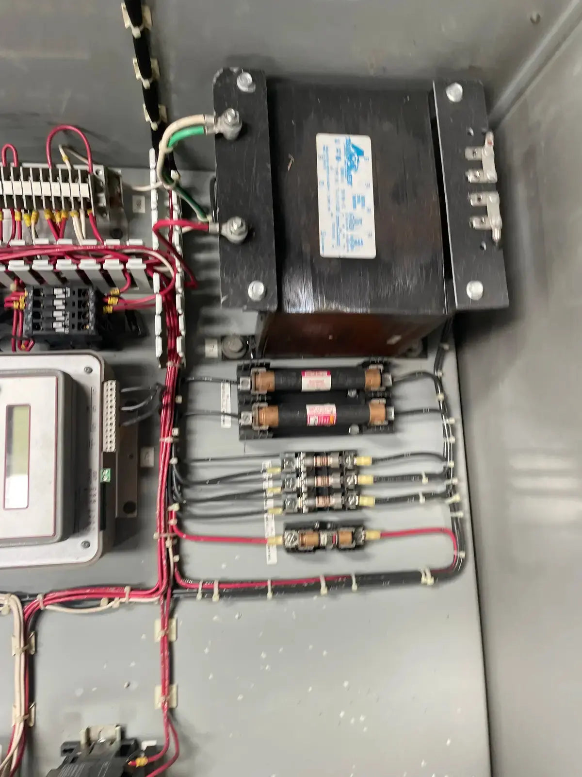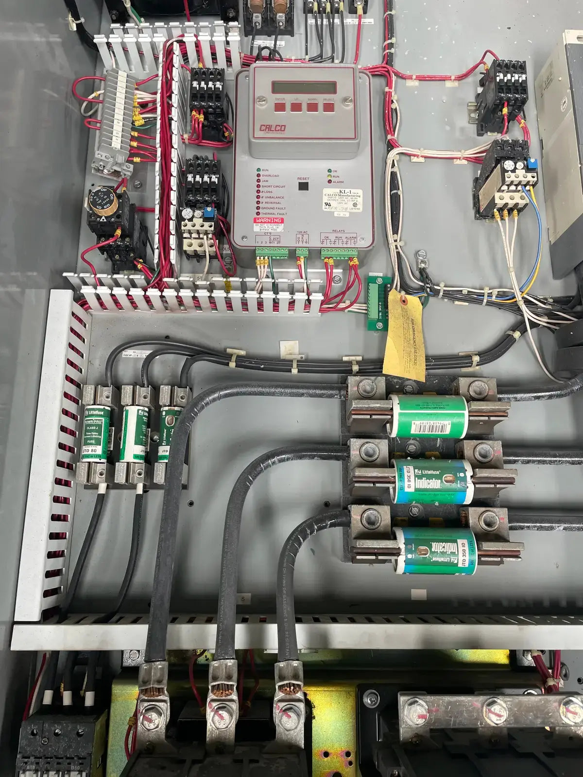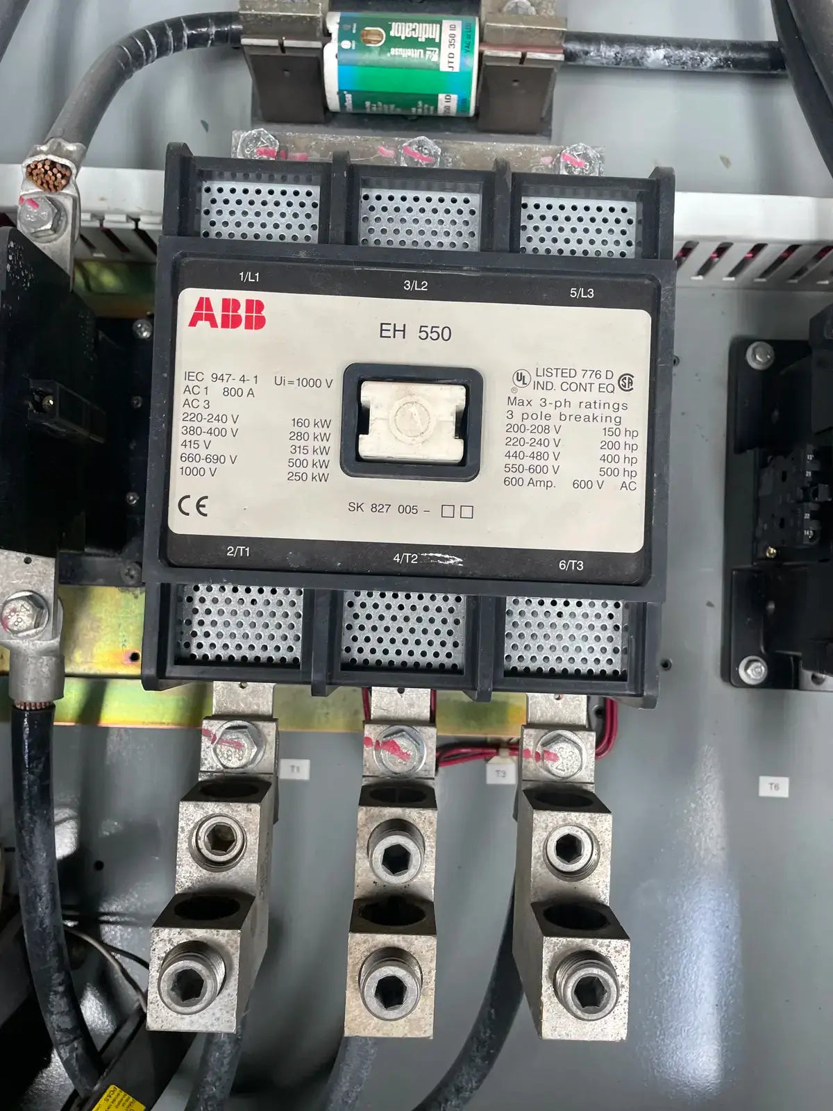 Arrancador de motor de compresor de tornillo Ram Industries. Número de trabajo/pieza: SOP001474. Número de dibujo/serie: FZ2200251W3.OPF. Tipo: 23P. Yo viento. Arrancador con tapa. Voltios: 230, Hz: 60, Ph: 3. Fuente de alimentación máxima del motor - HP: 200, FLA: 440,0. Total - HP: 203, FLA: 409,8.