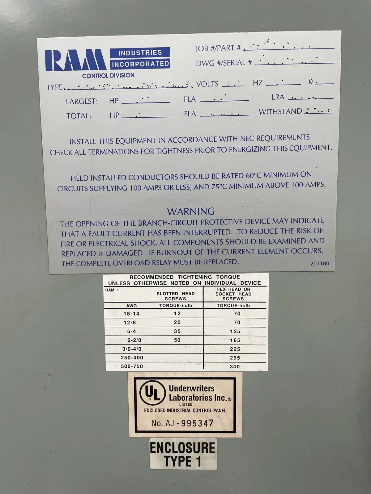 Arrancador de motor de compresor de tornillo Ram Industries (200 HP, 460 voltios, 60 Hz)