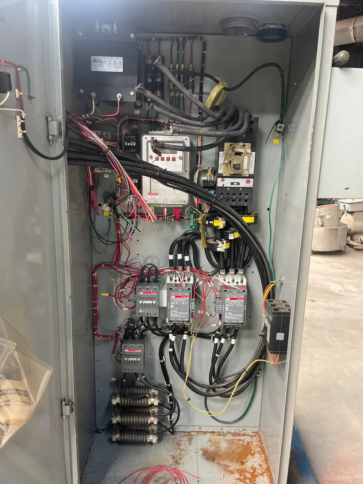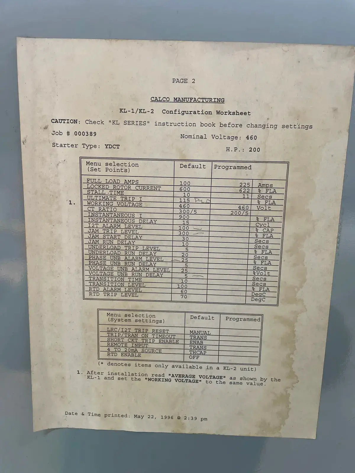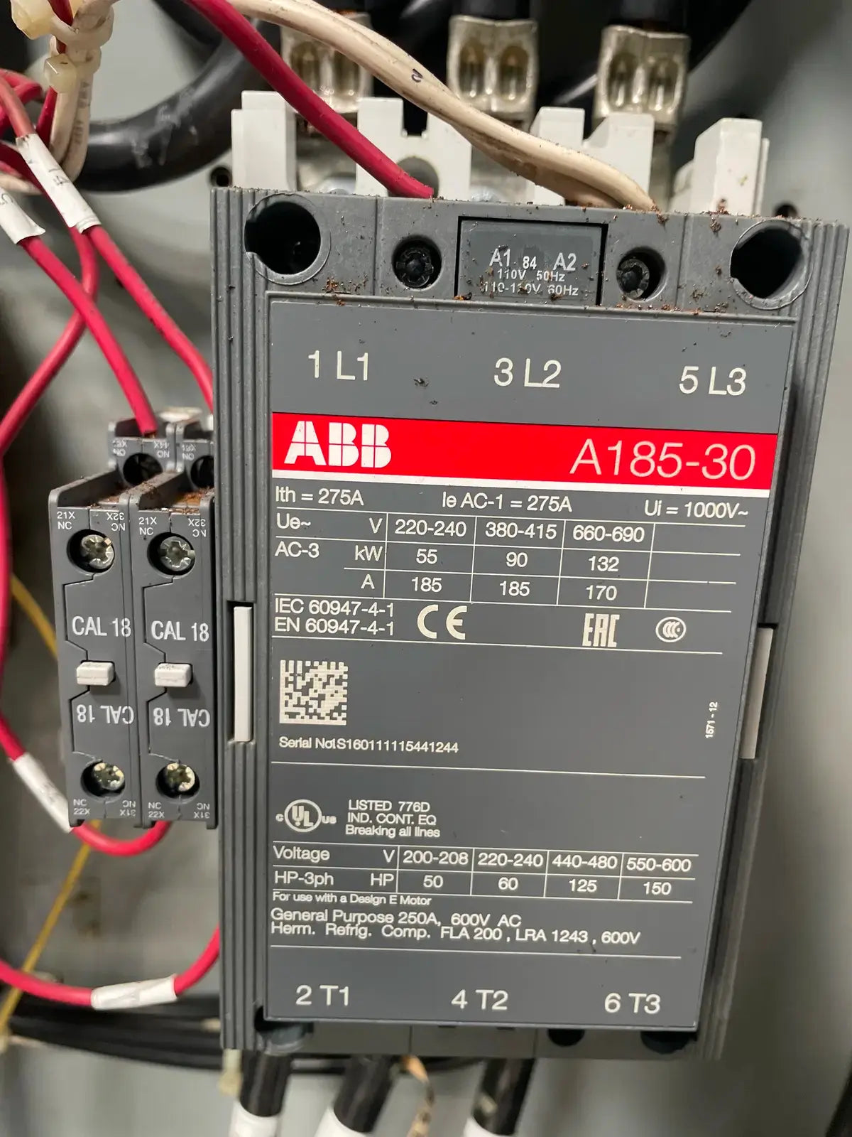 Arrancador de motor de compresor de tornillo Ram Industries. Número de trabajo: SOP000389. Número de dibujo: FZ420043.0. Fuente de alimentación: Voltios: 460, Ph: 3, Hz: 60, Hp: 200, FLA: 236.02, LRA: 1400. HP máximo del motor: 200 HP.