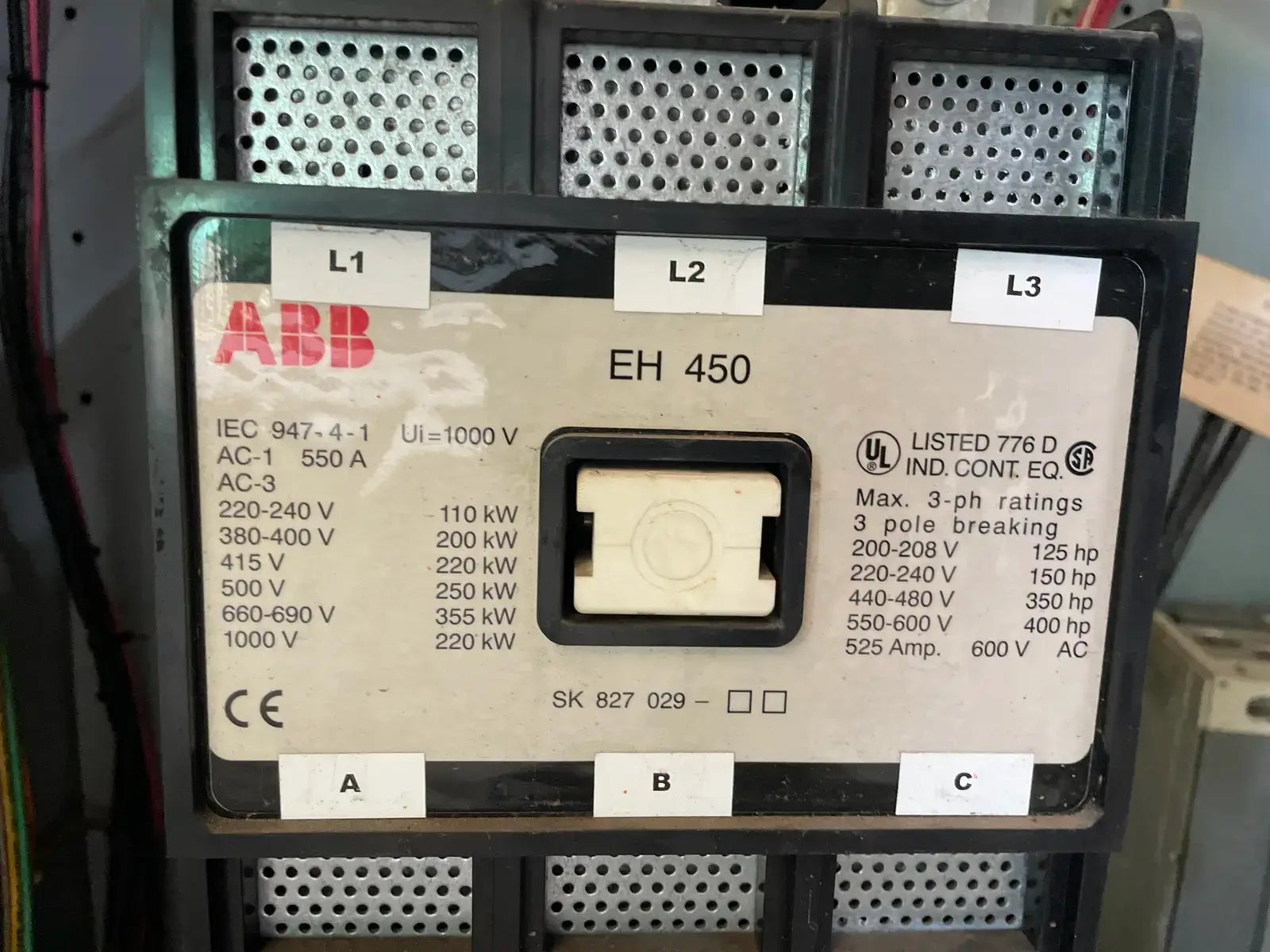 - Problemas o problemas conocidos: Arrived with a Lock-Out Tag. ABB Circuit Breaker is not mounted on the unit.