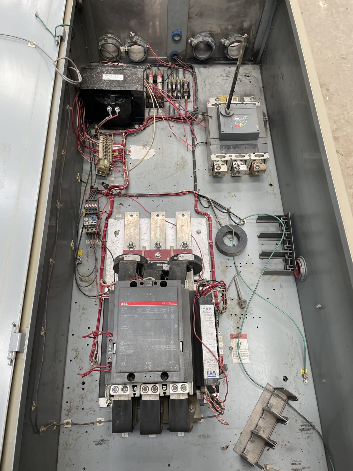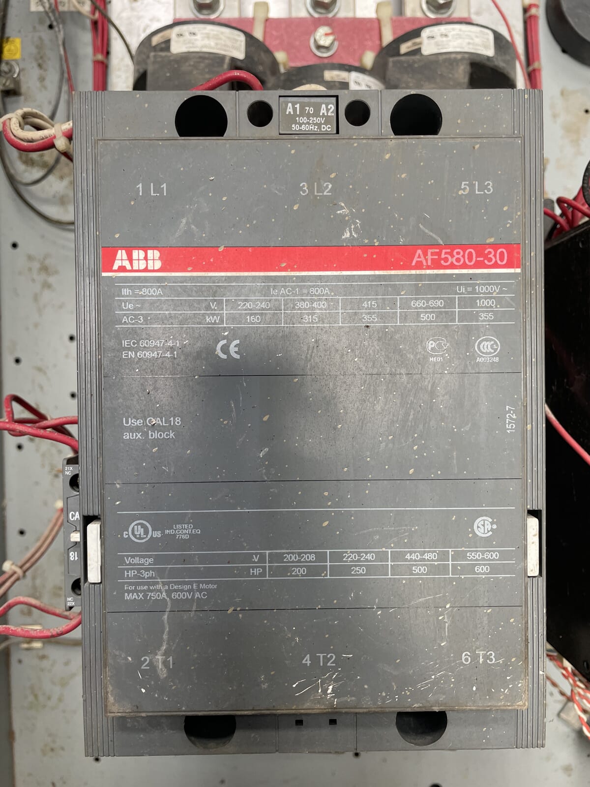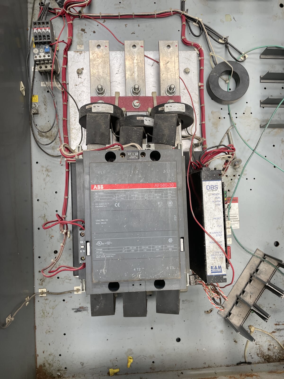 Arrancador de motor de compresor de tornillo Ram Industries. SO #: 081612, WO#: 190146, Dibujo #: 206577REVA, Parte No: FZ44BL7.5. Tipo: DBSLINE, Voltios: 460, Hz: 60, Ph: 3. Motor máximo: 450 HP, FLA: 512, LRA: 2925.