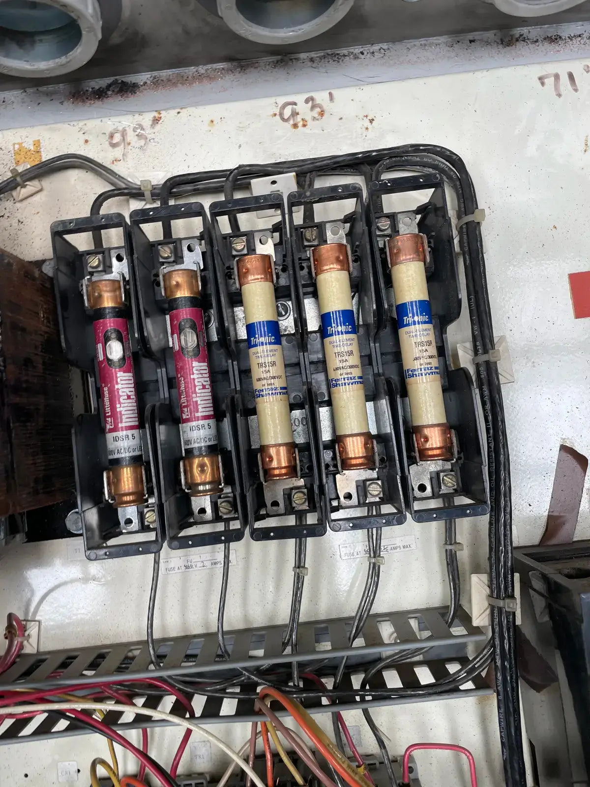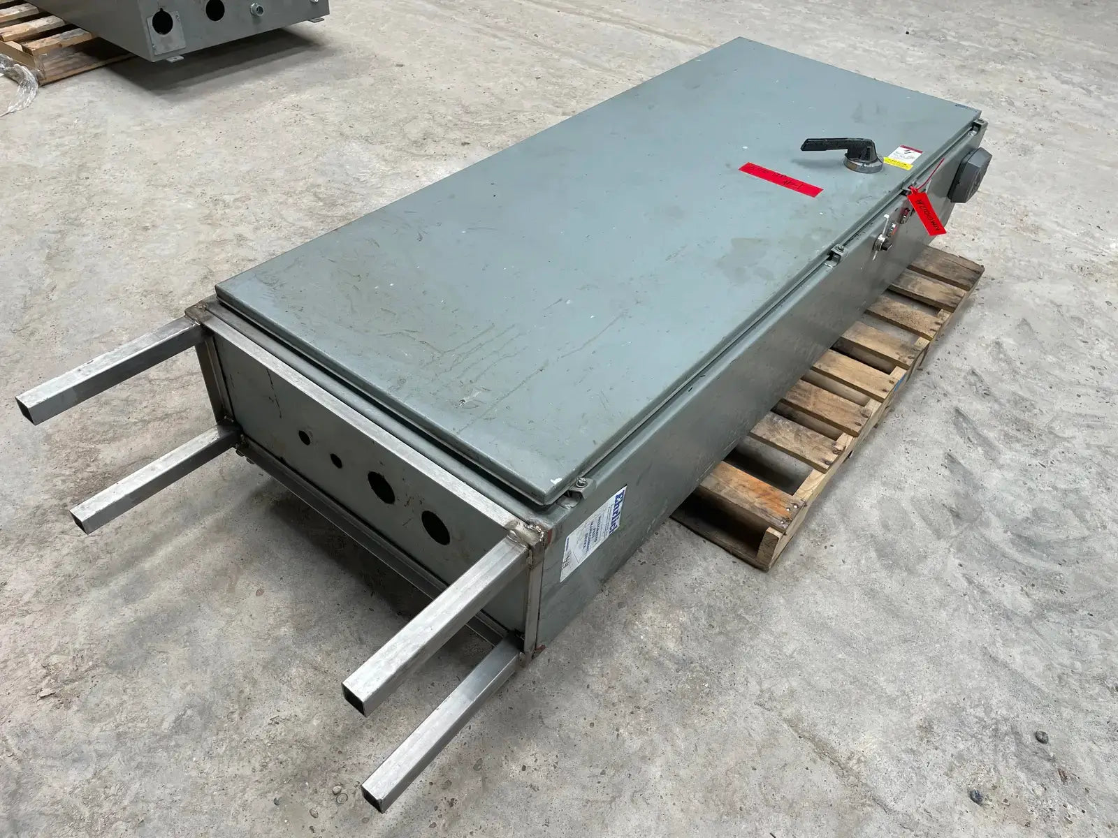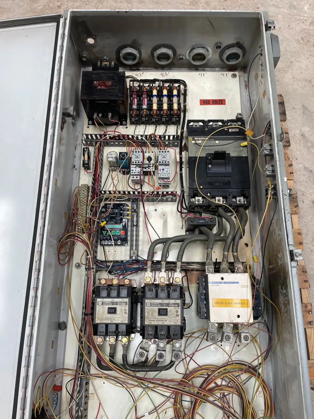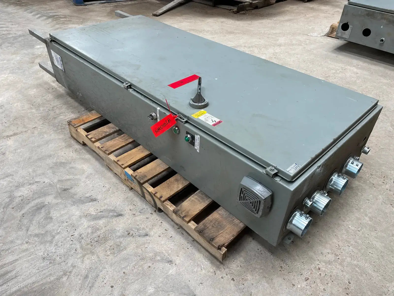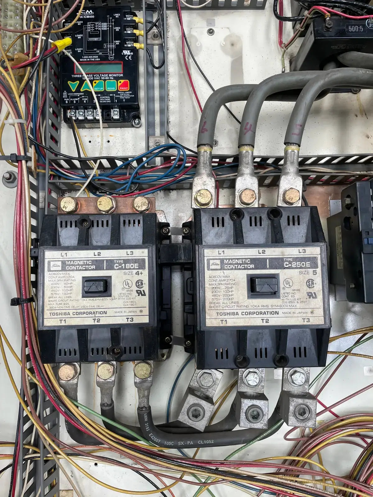 Arrancador de motor de tipo rígido de Ram Industries. Número de trabajo: P6757. Número de plano: FK-4200Y103.75. Fuente de alimentación: 460 voltios, fase: 3, Hz: 60, amperios a plena carga: 240,4. Potencia máxima: 350 HP.