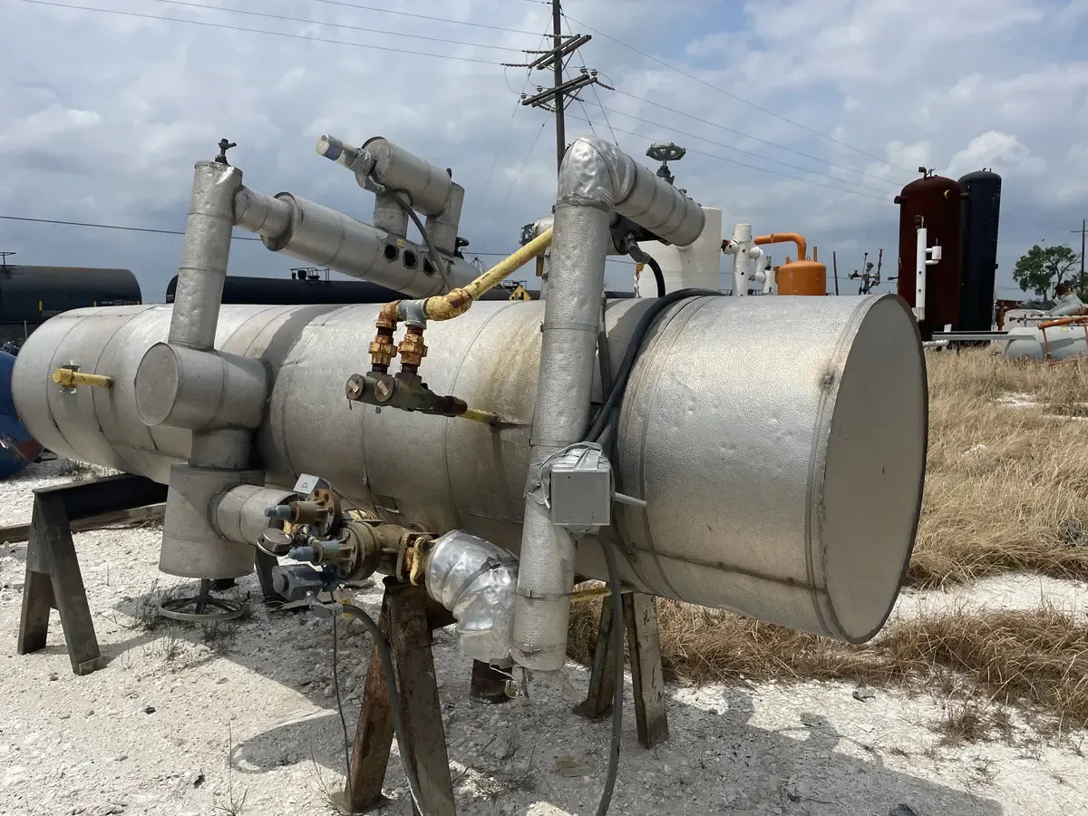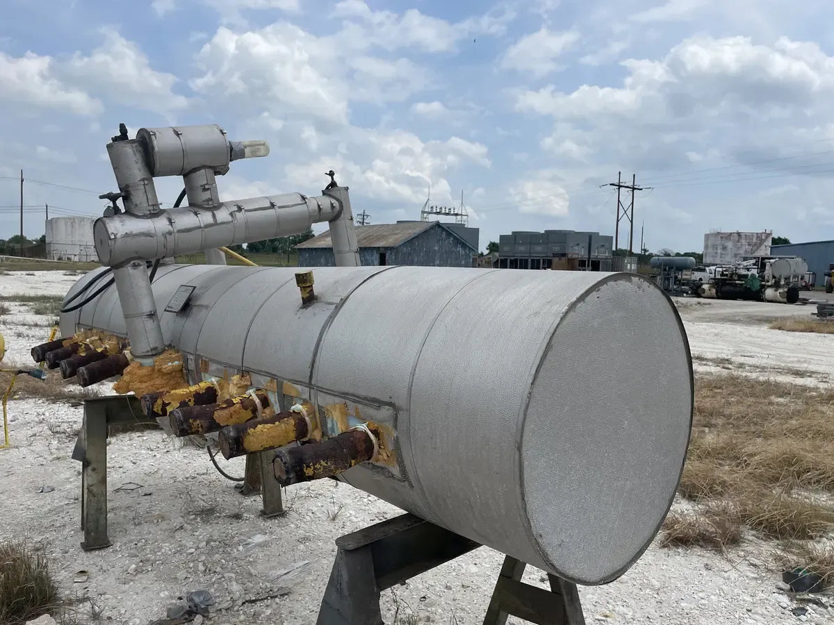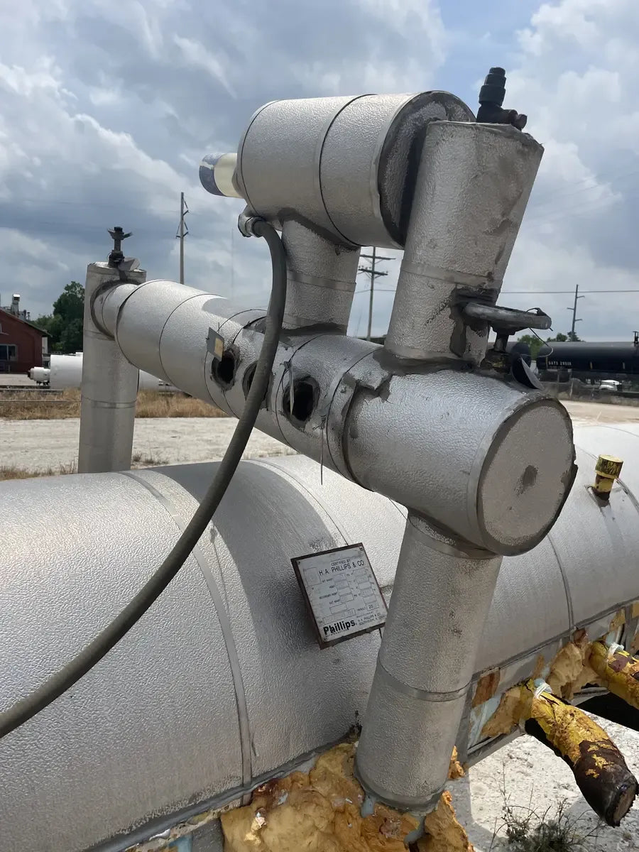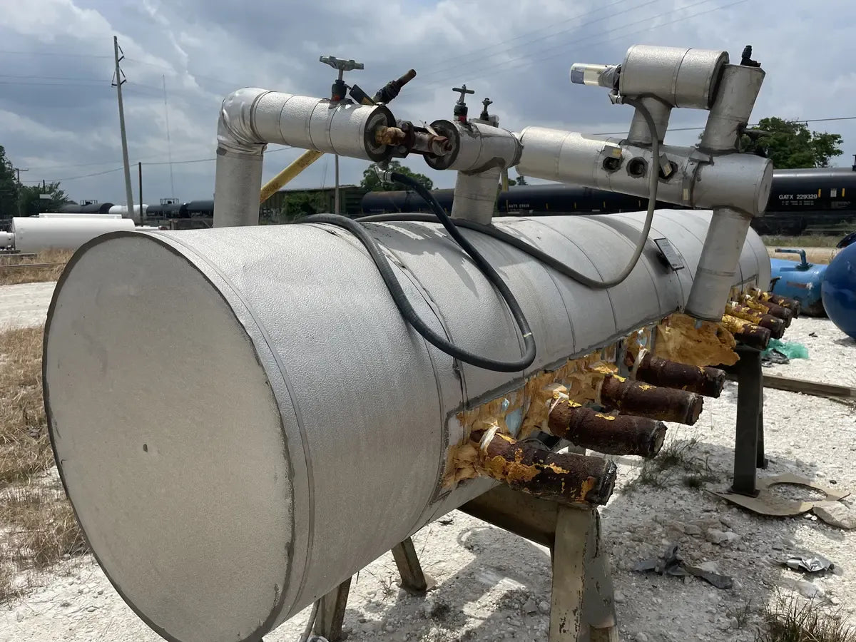 Almacenamiento Térmico Serie BAC G. Modelo: TSU-940G, Serie: U084557701. LBS de hielo: Inundado por gravedad: 70890 LBS. Bomba recirculada: 75,970 LBS. Aprox. Peso operativo (LBS): 147700, Bomba de aire (HP): 5 HP, Volumen de agua (Gal): 280, Volumen del serpentín: 1655, Conexión de agua (entrada/salida): 8 pulgadas. La carga de refrigerante indicada es la carga operativa para inundación por gravedad. sistema a 15 F. Dimensiones totales (pulg.): 312 L x 142 W x 96 H. Unidad de almacenamiento del enfriador de hielo BAC Mantiene una temperatura del agua constantemente baja. Ideal para enfriamiento por lotes en aplicaciones industriales y de enfriamiento de procesos, como lecherías, cervecerías, fabricantes de productos químicos, enfriamiento de productos alimenticios, procesos de embotellado, enfriamiento de productos agrícolas y más. En el modo de funcionamiento de producción de hielo, el hielo se forma haciendo circular glicol o refrigerante a través de los serpentines de la unidad. En el modo de funcionamiento Enfriamiento solo con hielo, la unidad del compresor está apagada y el agua circula a través de los tubos helados. Buque inundado de refrigeración Phillips: Junta Nacional: 11934, Número de serie: 0827250-01. Año de construcción: 2008. MAWP 250 PSI a 450 F. MDMT: -20 °F a 250 PSI. ext. MAWP: 15 PSI a 450 F. Dimensiones (pulg.): 151 largo x 64 ancho x 64 alto.